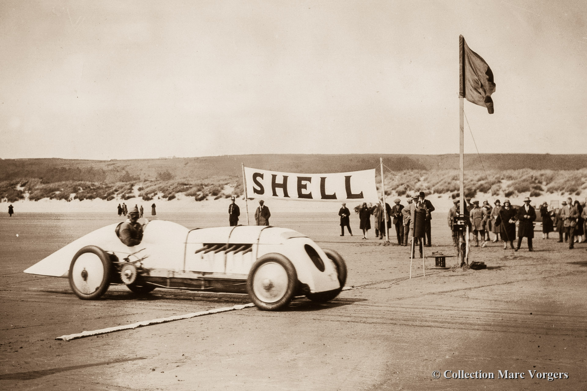 • 20 Sunbeam 350 HP at Fanoe Island (Denmark) 1923. Now in the hands of speed ace Malcolm Campbell. Shortly after the car was painted blue and christened 'Blue Bird', the fourth in succession
