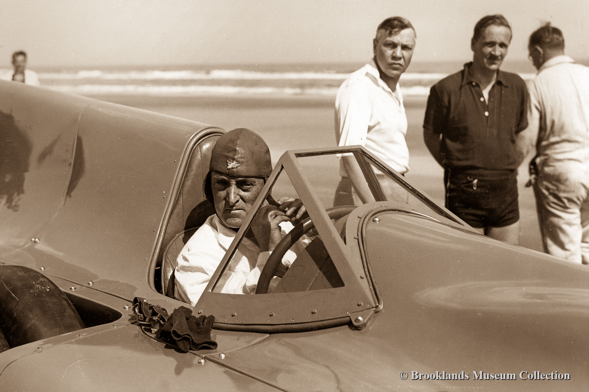 • 71 Malcolm Campbell in blue Bird after his successful record bid of over 301 mph. (481,8 km/h.) 3 September 1935 at Daytona Beach, Florida, USA