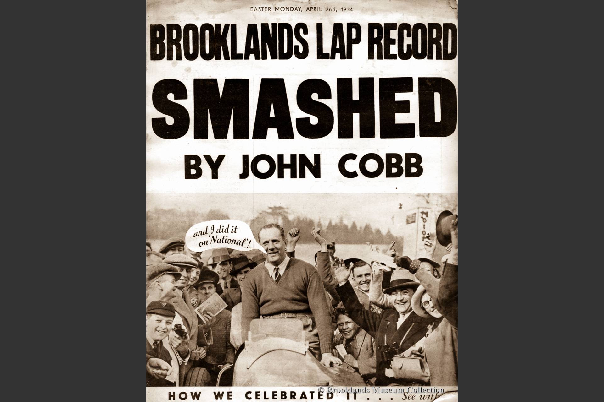 • 72 John Cobb broke the Brooklands lap record twice, in 1934 and in 1935. The lap record of 143,4 mph (229,44 km/h.) still stood as the circuit closed in 1939. John Cobb and the Napier Railton are therefore the perpetual lap speed holders of the Brooklands track