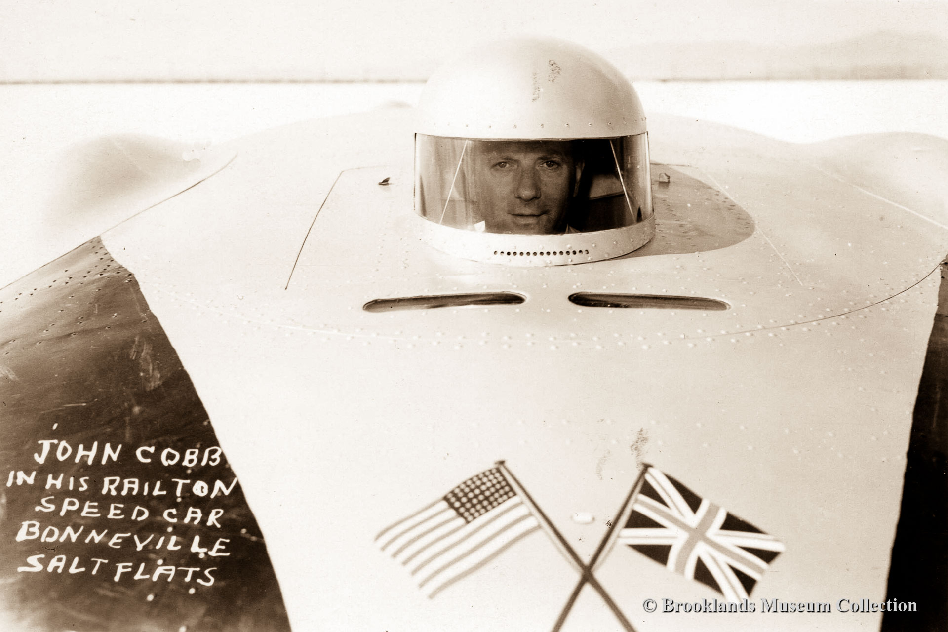 • 80-81 Railton-Special in August 1938 at the 'Bonneville' salt flats in Utah. Cobb and his friend George Eyston were both competing for the absolute land speed record. The Railton-Special and Eyston's Thunderbolt both won the record... Eyston made another bid within 24 hours and set the LSR as high as 345.50 mph (556.03 km/h) on 27 August 1938. Cobb returned to the salt flats a year later and improved the LSR, on 23 August 1939, to a mark of 367.91 mph. (588,6 km/h.). John Cobb and Reid Railton pose with the car after the successful record bid.