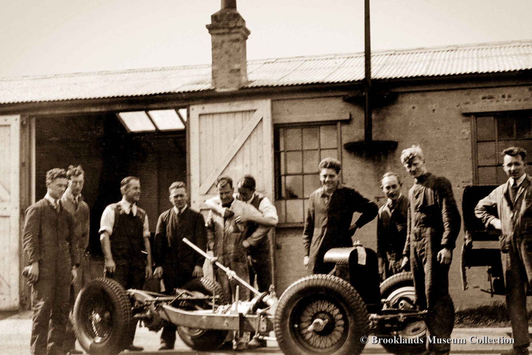 • 54 Jackson Bentley Special in front of the Jackson shed at Brooklands