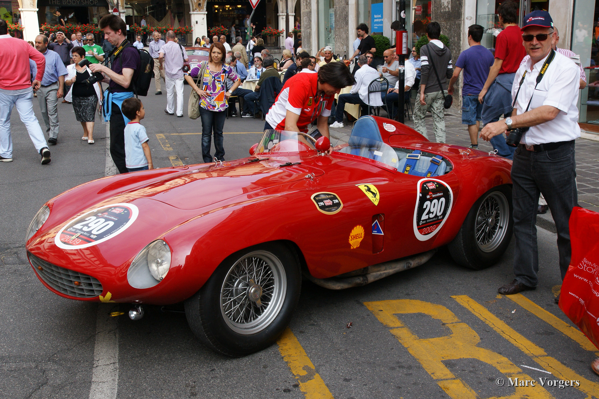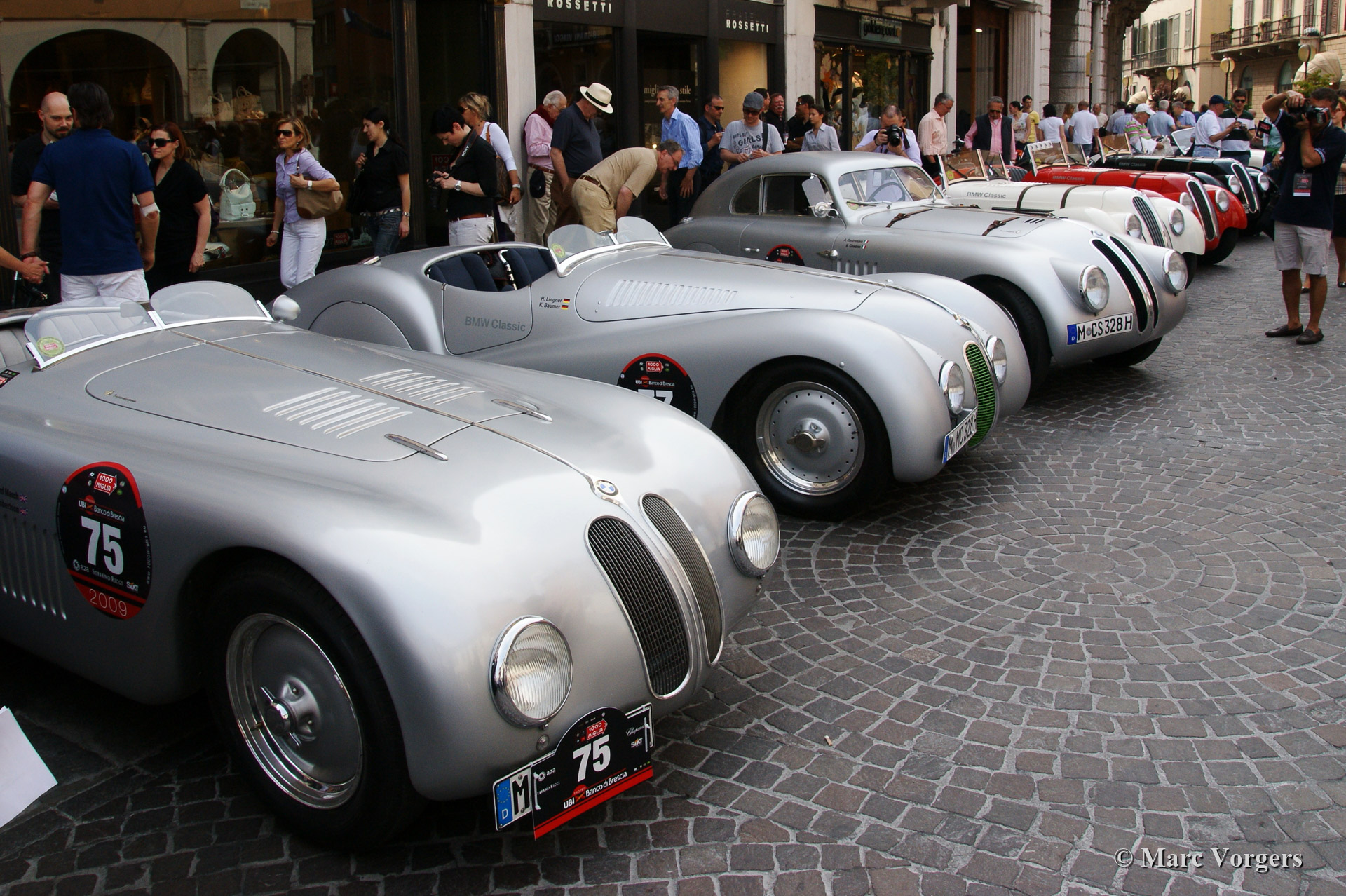 On May 14 and 15 2009 we visited the legendary Mille Miglia in Brescia and Ferrara in Italy. Hereby we present a chronological photo reportage. It all starts with the assembly of all the participating cars in Brescia and the start in the early evening.