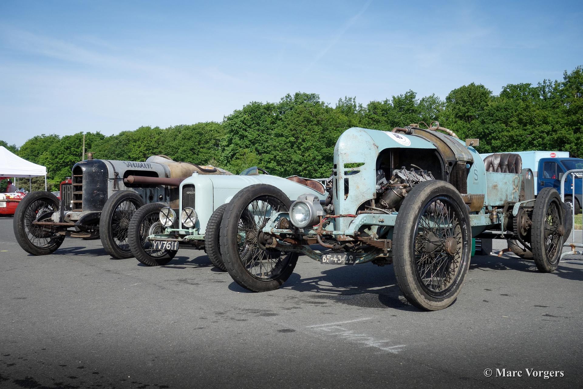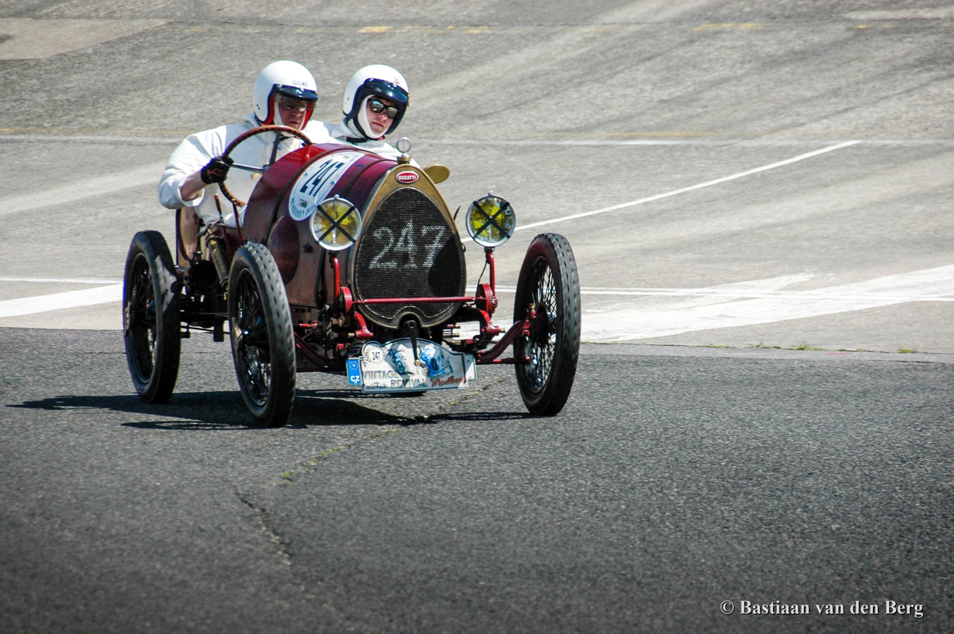 On day three we took the magnificent scenery tour from Mulhouse to Montlhery along Belfort and the N19/E54 from Vesoul to Langres where we found a little piece of England in the village of Cintrey. Here we took photos of our party and the Rover in front of an old garage with great Castrol and Champion advertisements on the wall! The distance of just under 600 kilometres was covered quickly so we arrived at the Montlhery banked circuit in the early afternoon. On the Vintage Revival the clock was turned back several decades… For two days we found ourselves visiting the 1920ies and 1930ies with some added imagination. You only have to suppress out of style details like the modern racing helmets and people clad in too modern overalls and clothes… During this delightful event we witnessed many old Bugatti’s still being driven, raced and cherished by their owners. The other cars and marques where as impressive. Yours truly drooled over the original 1908 Grand Prix Mercedes for a long time… And finally sat down in the seat of the car in which Christian Lautenschlager won the 1908 French Grand Prix in Dieppe.