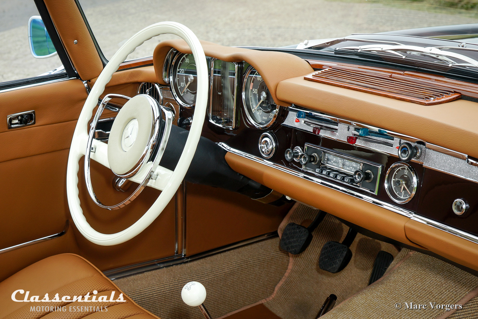 Now what? you must be thinking reading the title of this blog post. Vintage dashboard jewelry is how I prefer to think of vintage auto-radios from the late 1950s, 1960s and early 1970s. Superbly engineered old-school electronic technology fronted with beautifully shaped chrome ‘facings’ and finely detailed knobs and radio scales. My classic motor-cars do not feel complete without a vintage radio looking at me from the dashboard. Now I have to admit that I scarcely listen to radio programmes driving my cars, usually one does not travel alone in a classic car, petrol talk galore with friends and discussing the scenery when on the road with my better half. When driving alone I prefer to enjoy the sound of the sports engines; four-, six- or eight-cylinder soundtracks cannot be bettered by anything! So every now and then I try to pick up the hourly news broadcast, and driving at night I just turn on some background music… This for one reason only: To have the lights of the dial light-up with the rest of the gauges on the dashboard. Only in classic cars with an indifferent (boring) engine-sound I will crank up the volume to enjoy some good music!