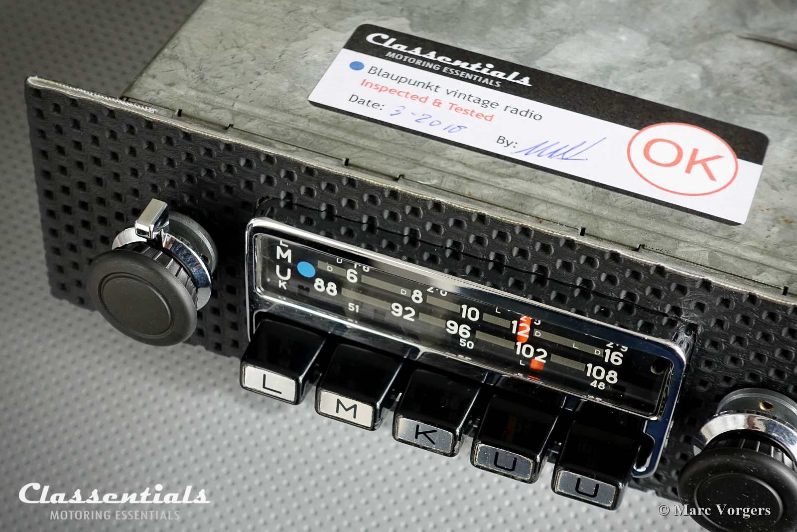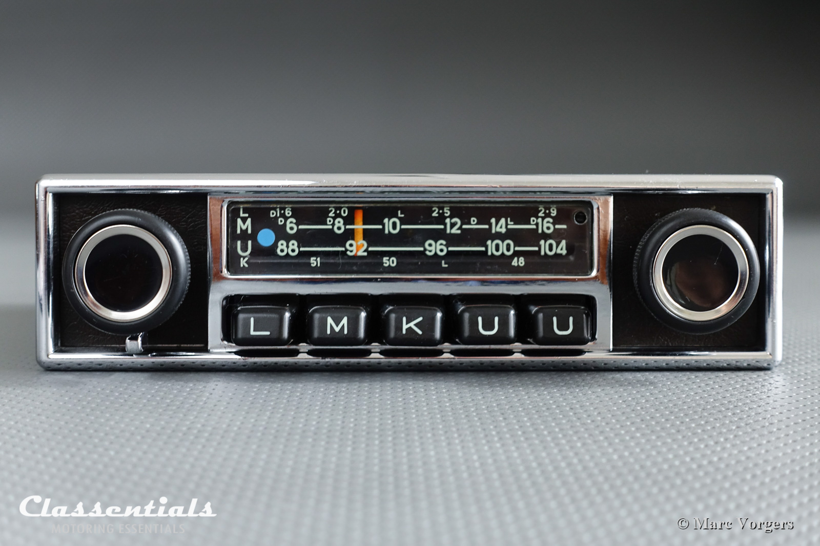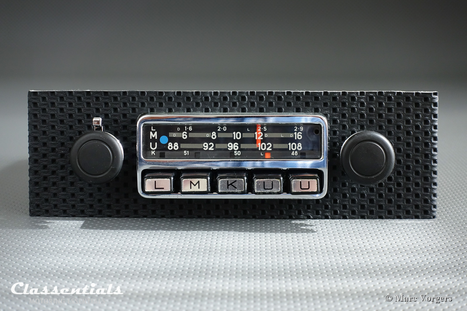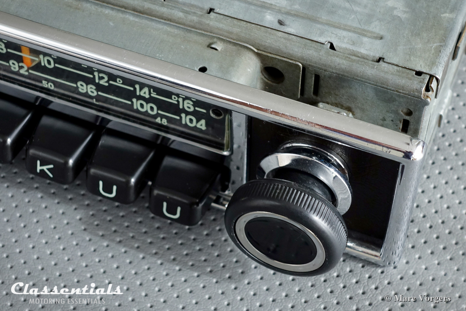 A classic car just needs a fabulous looking radio in the dashboard in my opinion, only race-bred sports-cars must do without for the sake of weight saving and because you will not be able to hear any music at all… Choosing a vintage radio for your car can be a difficult process. First you have to find one in excellent and working condition! Then the radio has to be from the right period to match your classic ride. Usually you can take the year of build from your car, let’s say 1969, then a radio from the period between 1967 and 1973 will look ‘period-correct’ in the dashboard. Then you find that 99% of the 1960s and early 1970s radios are MONO units, STEREO models were just introduced and extremely rare. I do not mind playing the radio via the standard dashboard speaker only, a second speaker can be easily added and placed on or in the parcel shelf.