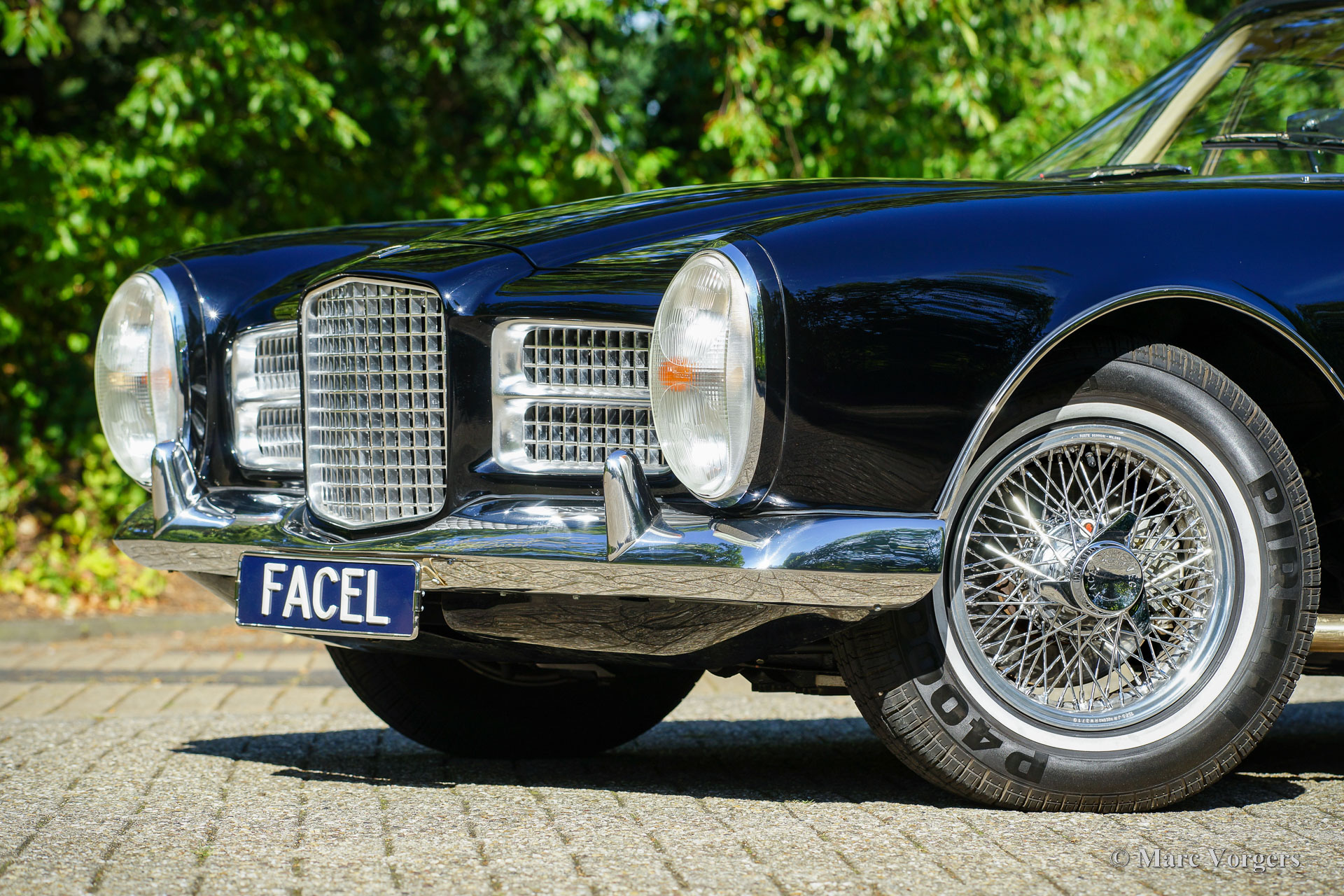 Facel Vega Facel II, année 1964 (HK2 B167). Couleur noir combiné avec un intérieur en cuir beige. Cette superbe Facel Vega Facel II est un modèle haut de gamme dotée du moteur V8 de 6,7 L équipé de deux carburateurs Carter AFB à quatre corps, de la boîte de vitesses manuelle Pont à Mousson à 4 vitesses, de la direction assistée et de la climatisation. Cette Facel II fut construite en mars 1964 sur commande de la sidérurgie française USINOR (un client fidèle de Facel) et est restée en France jusqu'en 1998 et était alors connue comme l'une des meilleures de sa catégorie en France. Malheureusement, la voiture a pris feu pendant une nuit dans le garage du propriétaire en raison d'un court-circuit dans l'électricité et a brûlé gravement avec beaucoup de dommages à la carrosserie et à l'intérieur. Amicale Facel Holland (AFH) a acheté les restes de la voiture en 2005 au nom d'un capitaine d'industrie allemand, qui a ordonné la restauration complète par AFH (effectuée au meilleur niveau possible et quels que soient les coûts) après quoi la voiture fut livrée à lui en décembre 2009. La voiture fut vendue à un deuxième propriétaire (également en Allemagne) depuis la restauration en février 2017, qui a chéri la voiture jusqu'à présent.
