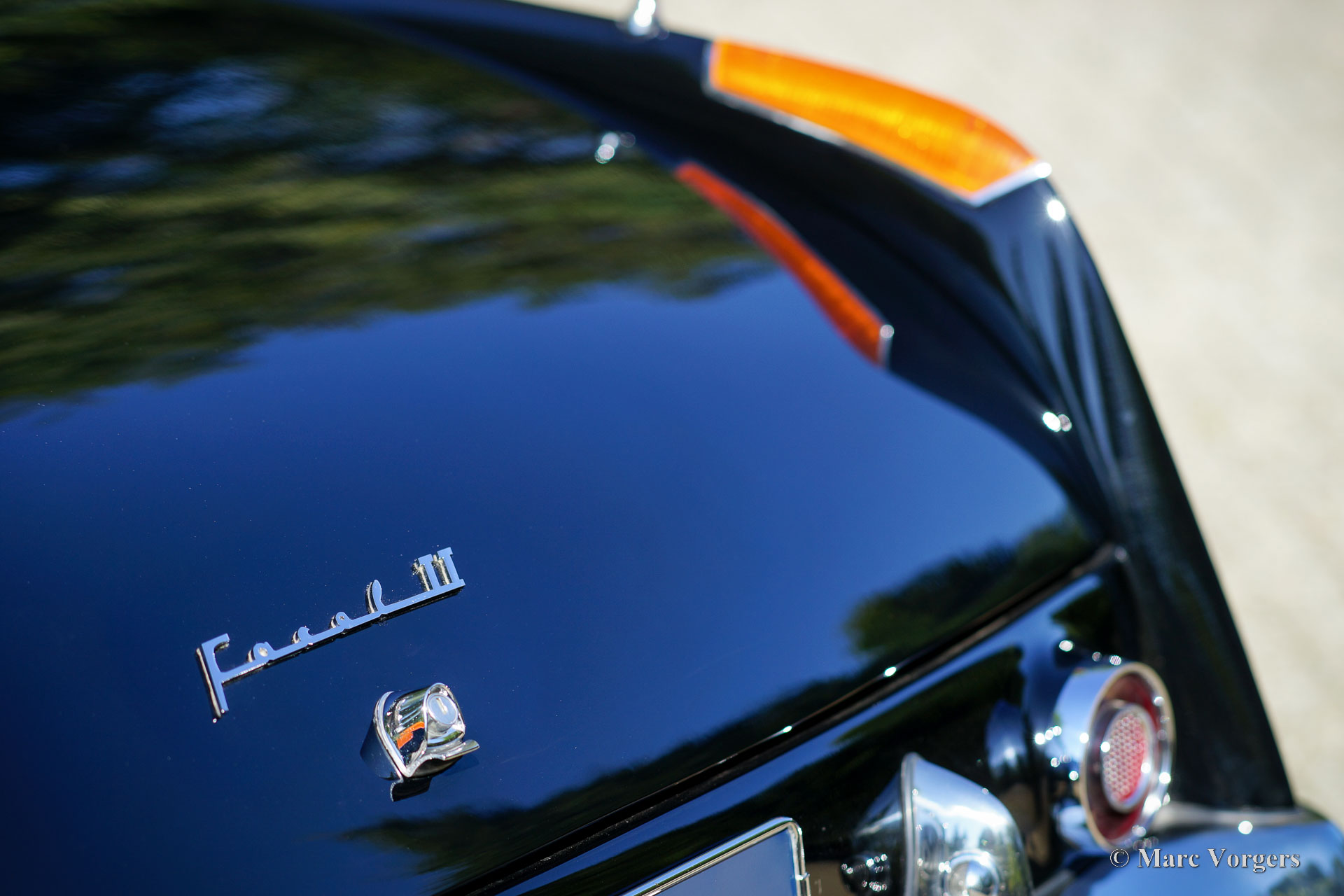 The Facel Vega II is the follow-up to the legendary Facel Vega HK 500. The undercarriage of the Facel II is identical to it’s predecessor i.e. welded steel chassis, independent suspension with coil springs in the front, a live axle leaf spring system at the rear and disc brakes all round. The Facel II, however, is equipped with a more powerful Chrysler V8 motor (either a 6.2 Litre 390 bhp or a 6.7 litre 400 bhp). The 6.7 Litre motor of the Facel 11 has two four-barrel carburettors.