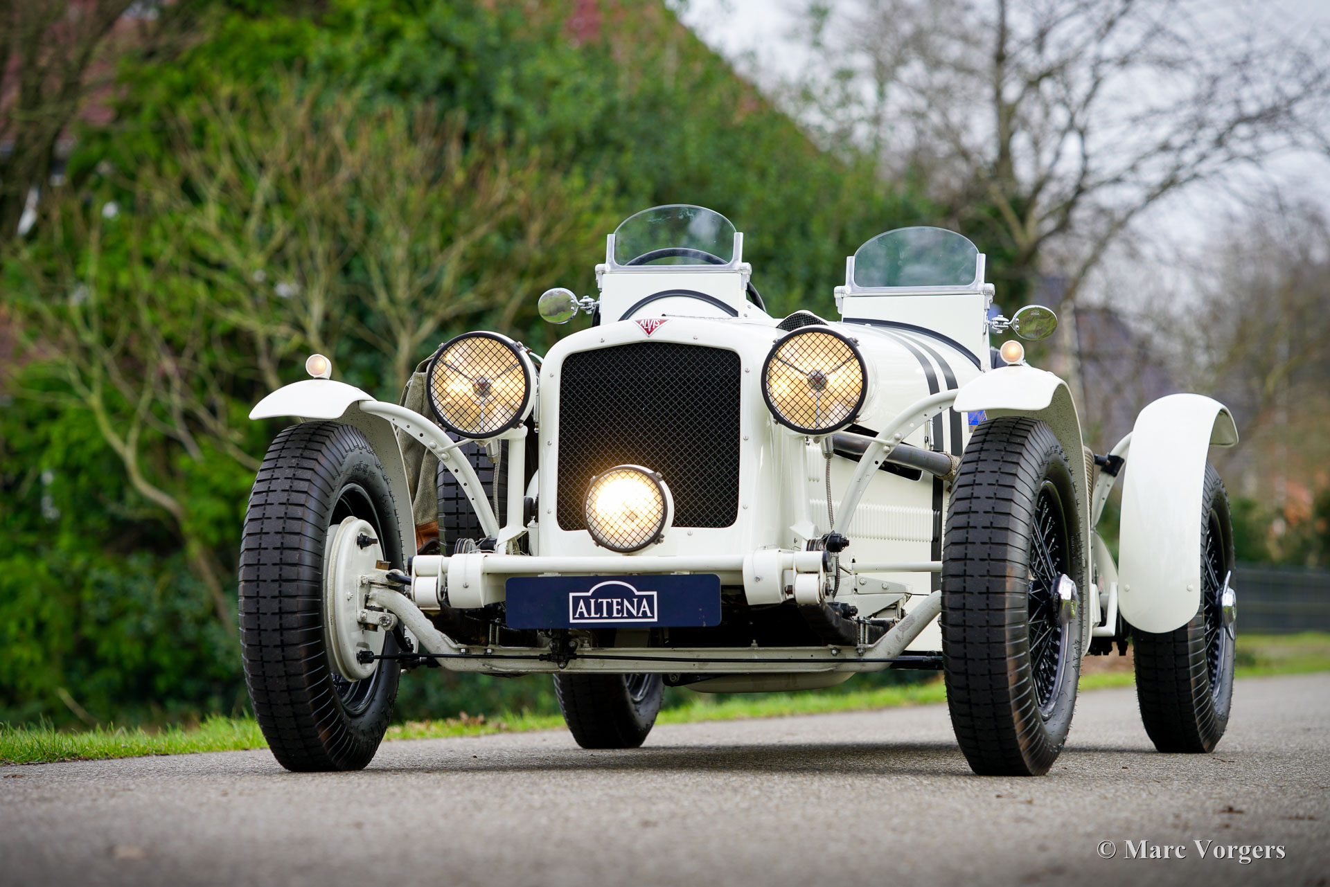 Alvis 3 litres spécial, année châssis 1950. Couleur Blanc cassé (Old English white) avec rayures noires sur le capot et roues noires. Sièges en cuir noir et couvre-caisse noir. Cette magnifique Alvis 3 litres « Special » fut construite par Racing Green Engineering (R.G.E.) du Pays de Galles, l'automobile a été achevée en 2014. Cette Alvis « Special » à l'apparence et à la conduite impressionnantes a été construite sur un châssis Alvis TA14 et est propulsée par un moteur six cylindres en ligne Alvis TC de 3 litres. Dans la bonne tradition d'Alvis, la boîte de vitesses manuelle à quatre vitesses est entièrement synchronisée. Le châssis et les composants d'origine furent entièrement restaurés et révisés à la perfection, et la carrosserie fut fabriquée à la main en tôle d'aluminium par les artisans de R.G.E. selon les normes les plus élevées. Le design de la carrosserie s’inspire du look des voitures de course Alvis des années 1930. Cette Alvis 3 litres spéciale est dans un superbe état et la voiture roule et se comporte de manière impressionnante. Le moteur a beaucoup de puissance et la sonorité de l'échappement est exaltante ! Comme chaque spéciale construite par R.G.E. cet Alvis est un produit de qualité supérieure ; intelligemment conçu et superbement construit. Le châssis et la mécanique sont tous conformes aux spécifications d'usine d'origine, la voiture peut être importée et immatriculée sur route dans n'importe quel pays du monde. L'ancien propriétaire profite de la voiture depuis 10 ans, un moment fort ayant été la participation au Gran Premio Nuvolari (Editione Moderna) en Italie. Un compteur de rallye analogique Halda Twinmaster vintage et coûteux est installé pour que le nouveau propriétaire puisse inscrire la voiture dans des événements de tourisme et de régularité historiques. L'automobile est livrée avec un historique complet. Il s'agit d'un Alvis spécial unique construit par un spécialiste renommé. Une trouvaille fantastique pour l'amateur de voitures de sport « d'avant-guerre » qui aime conduire dans le style « d'avant-guerre », mais avec une grande facilité d'utilisation et un peu plus de confort de conduite !