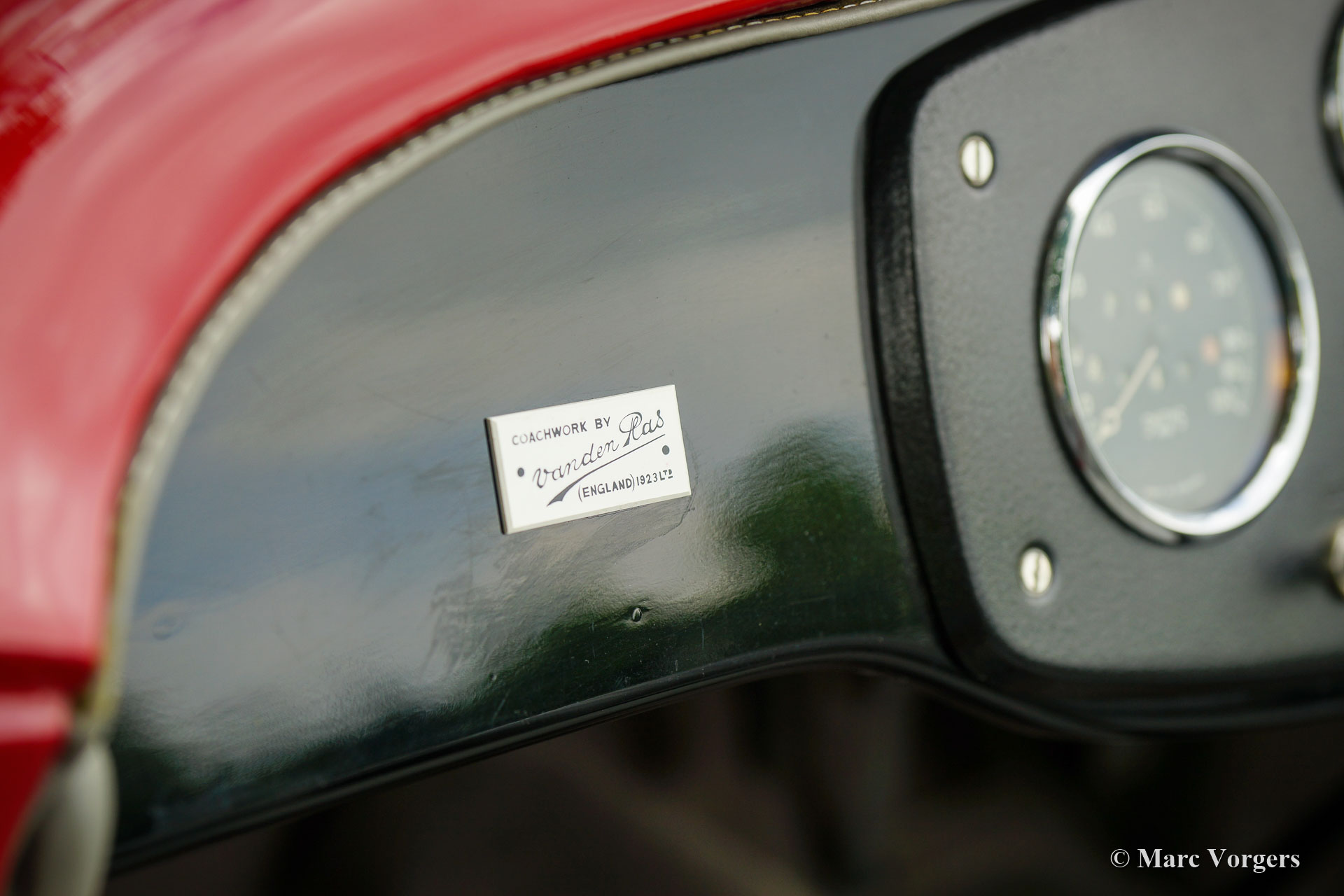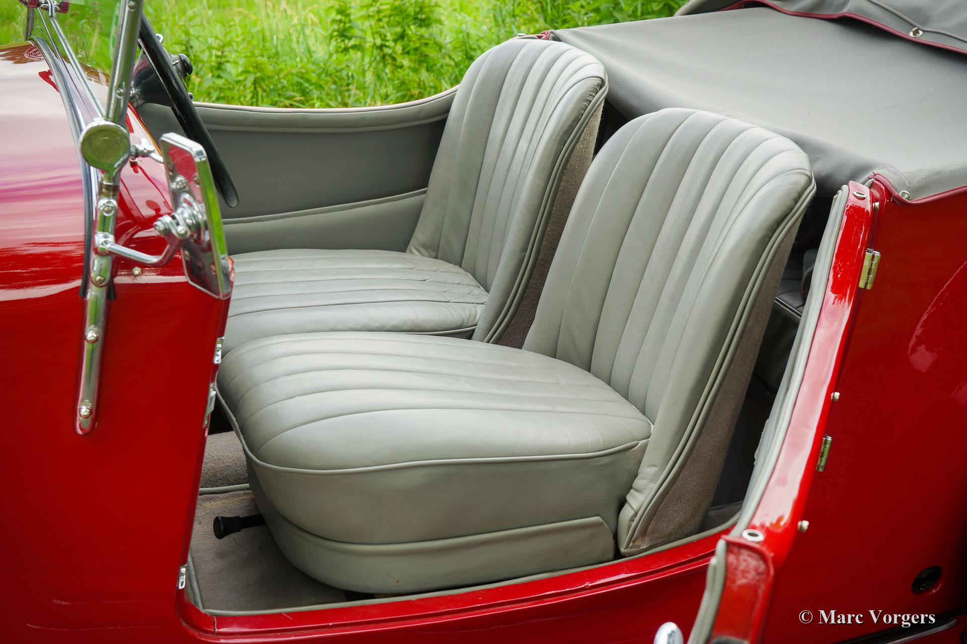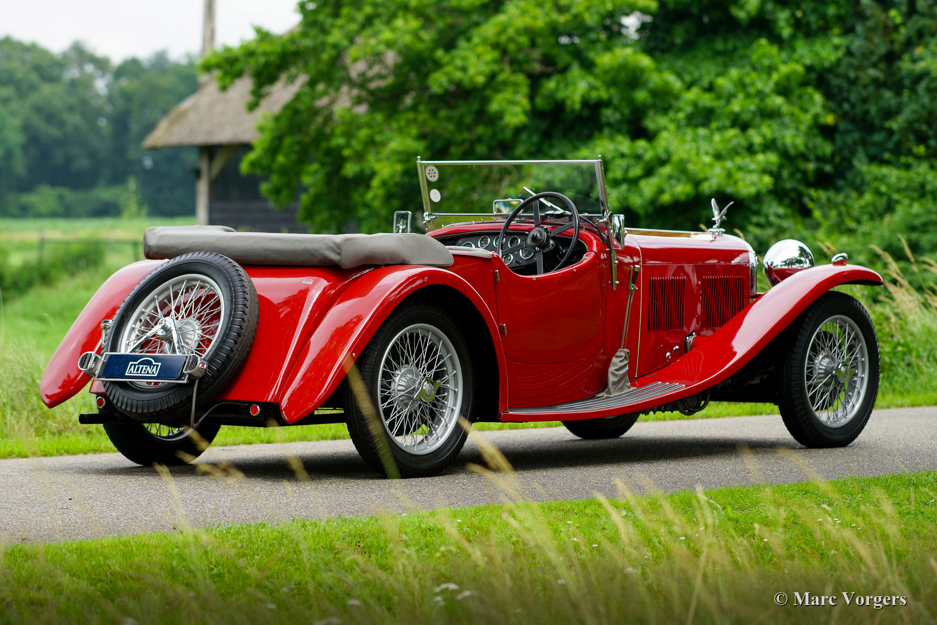 Alvis Speed 20 SA Tourer, année 1932. Couleur rouge combinée avec un intérieur en cuir gris pâle et un tapis gris pâle. Capot, couvre-tonneau et couvre-capot gris pâle, le tout bordé de passepoil rouge. Cette merveilleuse Alvis Speed 20 SA tourer a été vendue neuve à une famille Hebert de Royaume-Uni en 1932. Les bons de commande originaux pour le châssis et la carrosserie vanden Plas Tourer sont présents dans le vaste dossier historique. L'historique est complet dès le premier jour et tous les propriétaires précédents sont connus ! Cette Alvis Speed 20 super originale est une voiture à numéros correspondants (matching numbers), le record de voiture d'origine Alvis, indiquant que les numéros d'origine sont présents. Le dernier propriétaire chérissait l'Alvis depuis 1996. Dans les années 2000-2003, la voiture fut entièrement et parfaitement restaurée par une entreprise spécialisée. Les composants mécaniques furent révisés et restaurés par le spécialiste Alvis Early engineering au Royaume-Uni. La restauration fut réalisée à la perfection. Un reportage photo détaillé de la restauration est présent. L'automobile est toujours dans un état excellent à superbe et la voiture roule, embraye, freine et se comporte à merveille ! Il s'agit d'une occasion rare d'obtenir une Alvis Speed 20 dans un état merveilleusement restauré et toujours super original, avec un historique complet et des numéros correspondants. Cette Alvis Speed 20 SA Tourer est une trouvaille fantastique pour le collectionneur et passionné d'Alvis.