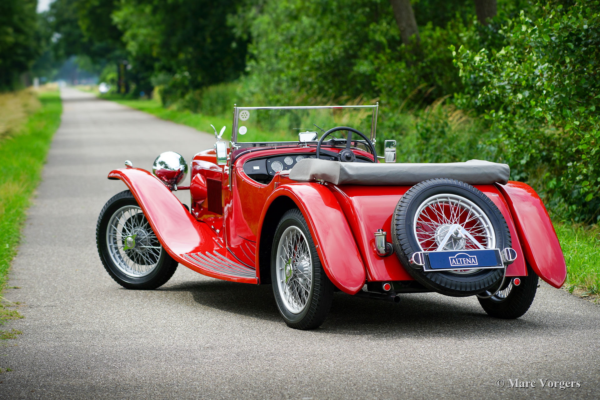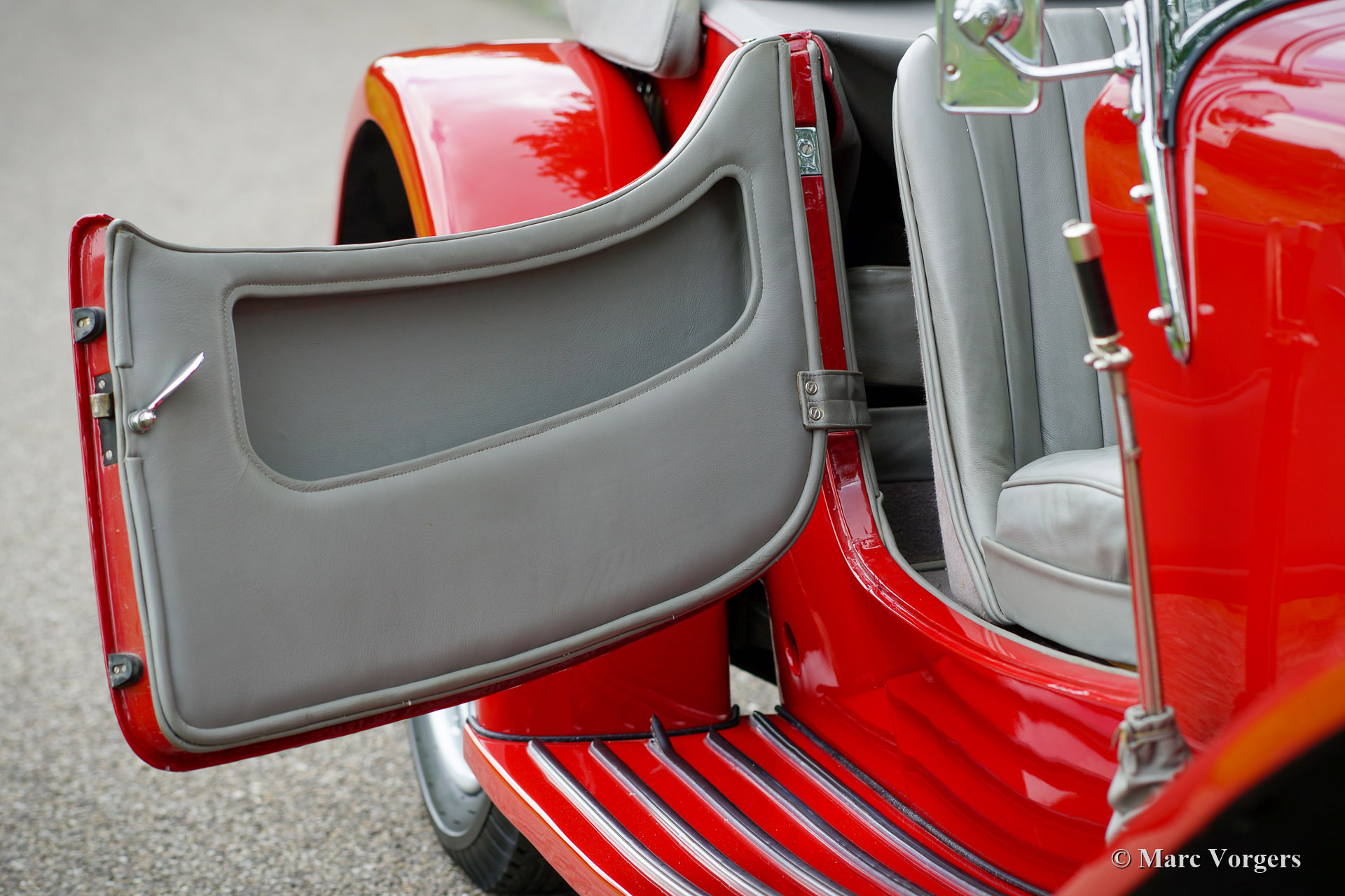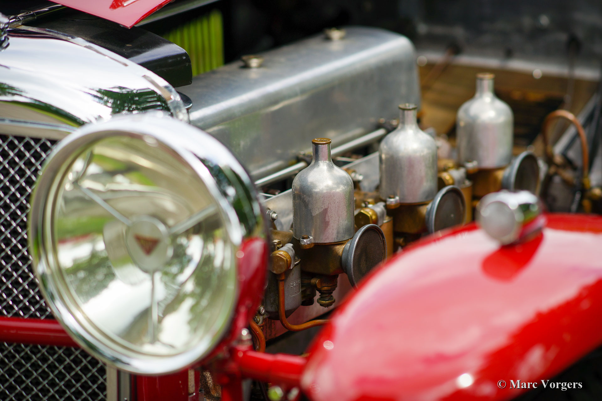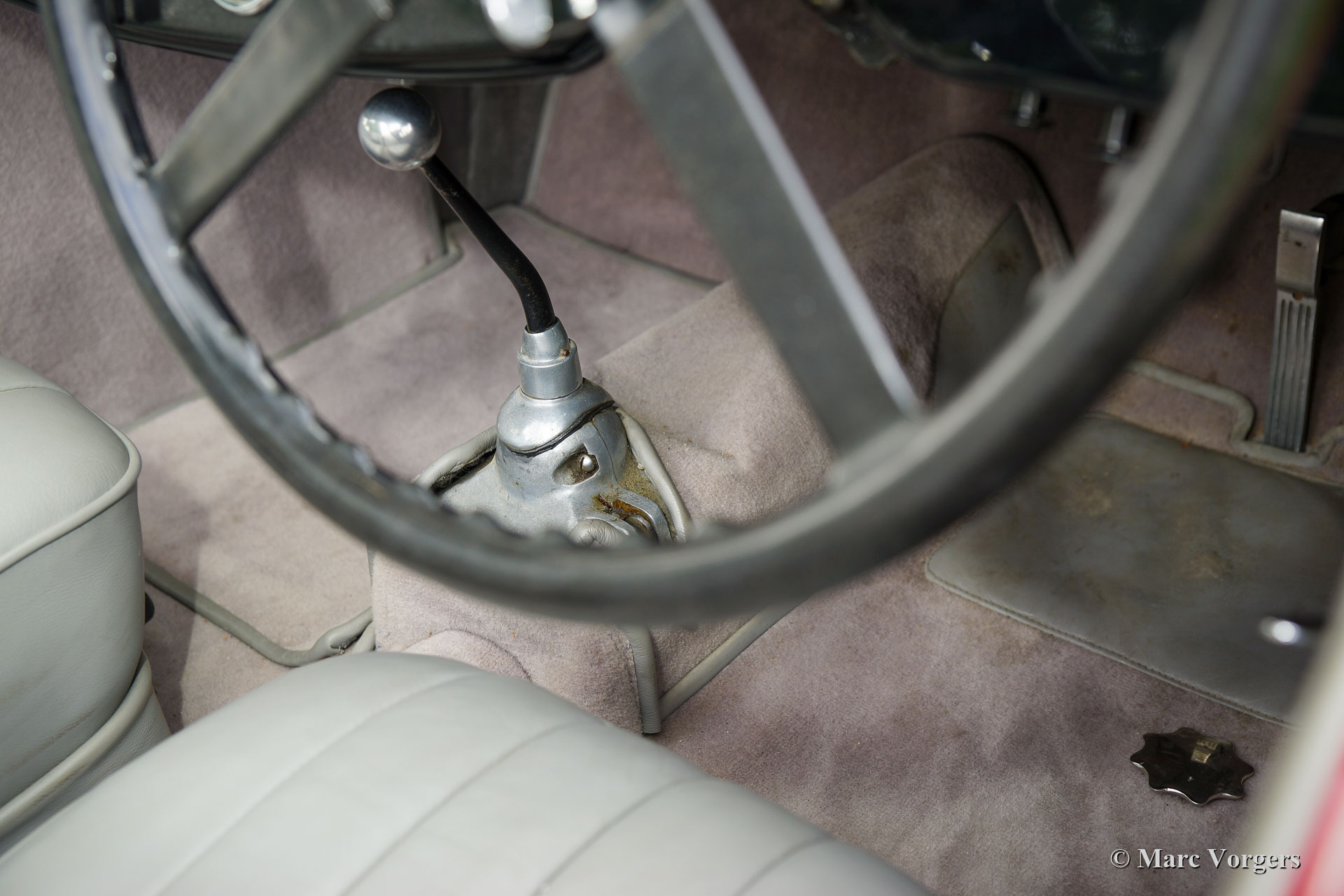 Alvis Speed 20 SA Tourer, année 1932. Couleur rouge combinée avec un intérieur en cuir gris pâle et un tapis gris pâle. Capot, couvre-tonneau et couvre-capot gris pâle, le tout bordé de passepoil rouge. Cette merveilleuse Alvis Speed 20 SA tourer a été vendue neuve à une famille Hebert de Royaume-Uni en 1932. Les bons de commande originaux pour le châssis et la carrosserie vanden Plas Tourer sont présents dans le vaste dossier historique. L'historique est complet dès le premier jour et tous les propriétaires précédents sont connus ! Cette Alvis Speed 20 super originale est une voiture à numéros correspondants (matching numbers), le record de voiture d'origine Alvis, indiquant que les numéros d'origine sont présents. Le dernier propriétaire chérissait l'Alvis depuis 1996. Dans les années 2000-2003, la voiture fut entièrement et parfaitement restaurée par une entreprise spécialisée. Les composants mécaniques furent révisés et restaurés par le spécialiste Alvis Early engineering au Royaume-Uni. La restauration fut réalisée à la perfection. Un reportage photo détaillé de la restauration est présent. L'automobile est toujours dans un état excellent à superbe et la voiture roule, embraye, freine et se comporte à merveille ! Il s'agit d'une occasion rare d'obtenir une Alvis Speed 20 dans un état merveilleusement restauré et toujours super original, avec un historique complet et des numéros correspondants. Cette Alvis Speed 20 SA Tourer est une trouvaille fantastique pour le collectionneur et passionné d'Alvis.