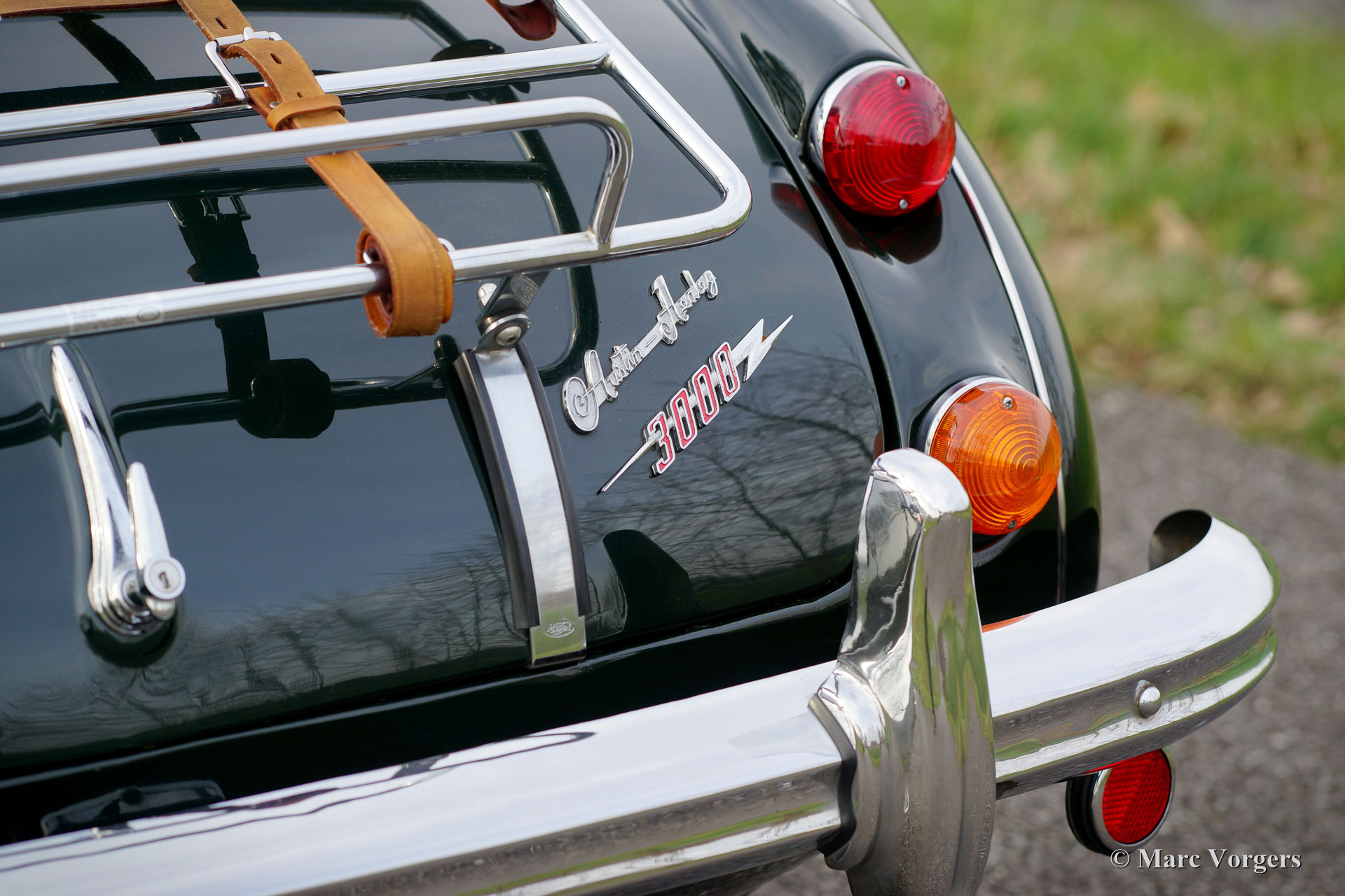 3000 is also known as the "Big Healey". The 3000 is a evolution of the 100/6 model. The engine was given a larger cylinder capacity of 2912 cc. and the 3000 was fitted with disc brakes at the front wheels. This first Austin Healey 3000 is currently known as the 3000 MK I model.