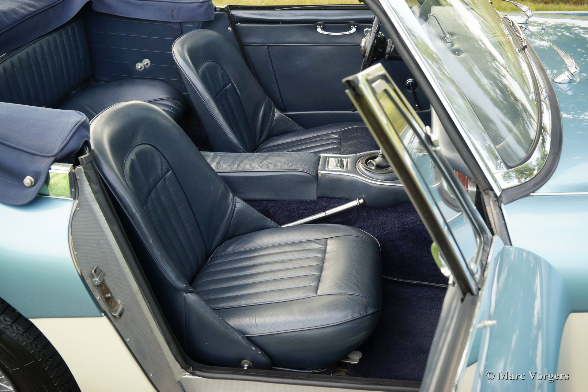 The former Healey models were more Spartan and featured fully detachable soft tops with separate side screens which could be stowed away in the booth.