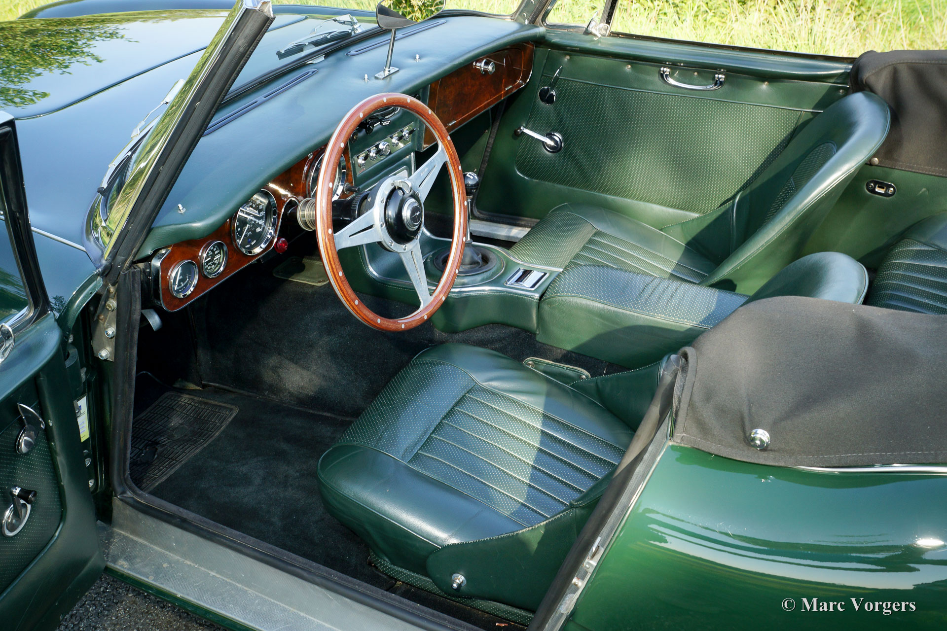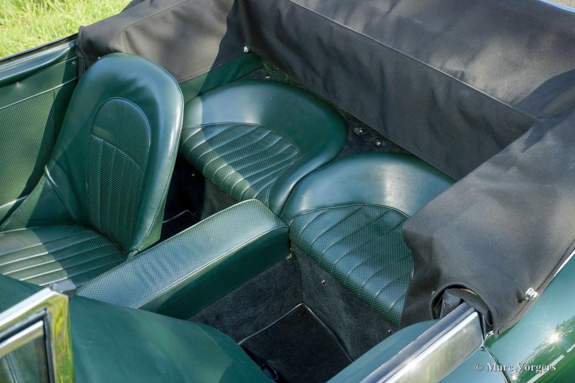 The former Healey models were more Spartan and featured fully detachable soft tops with separate side screens which could be stowed away in the booth.