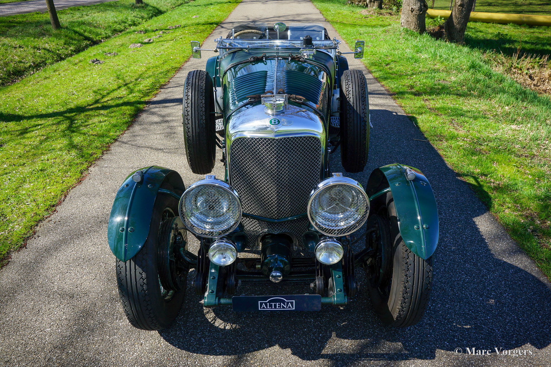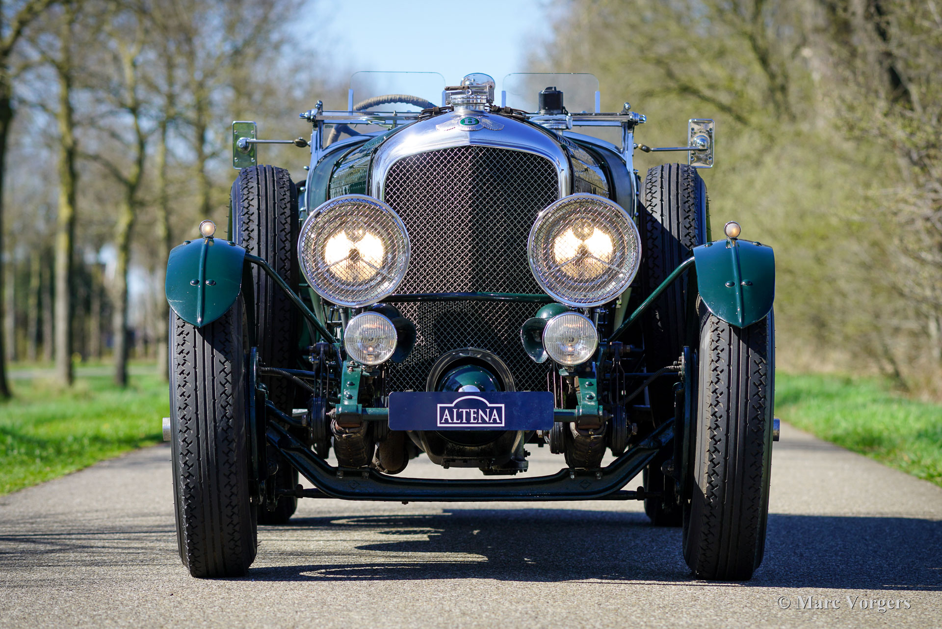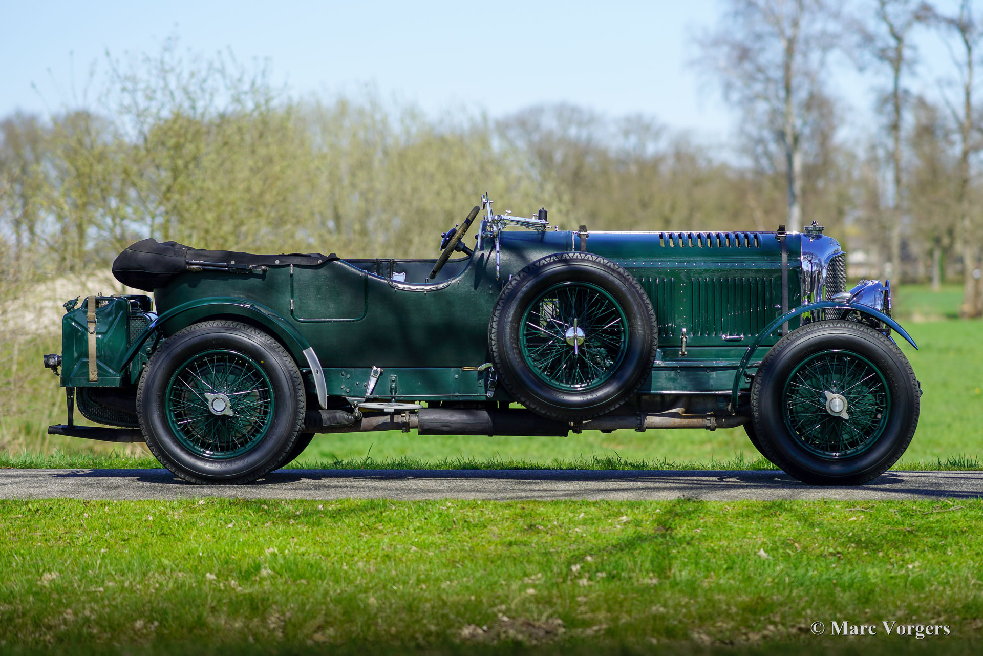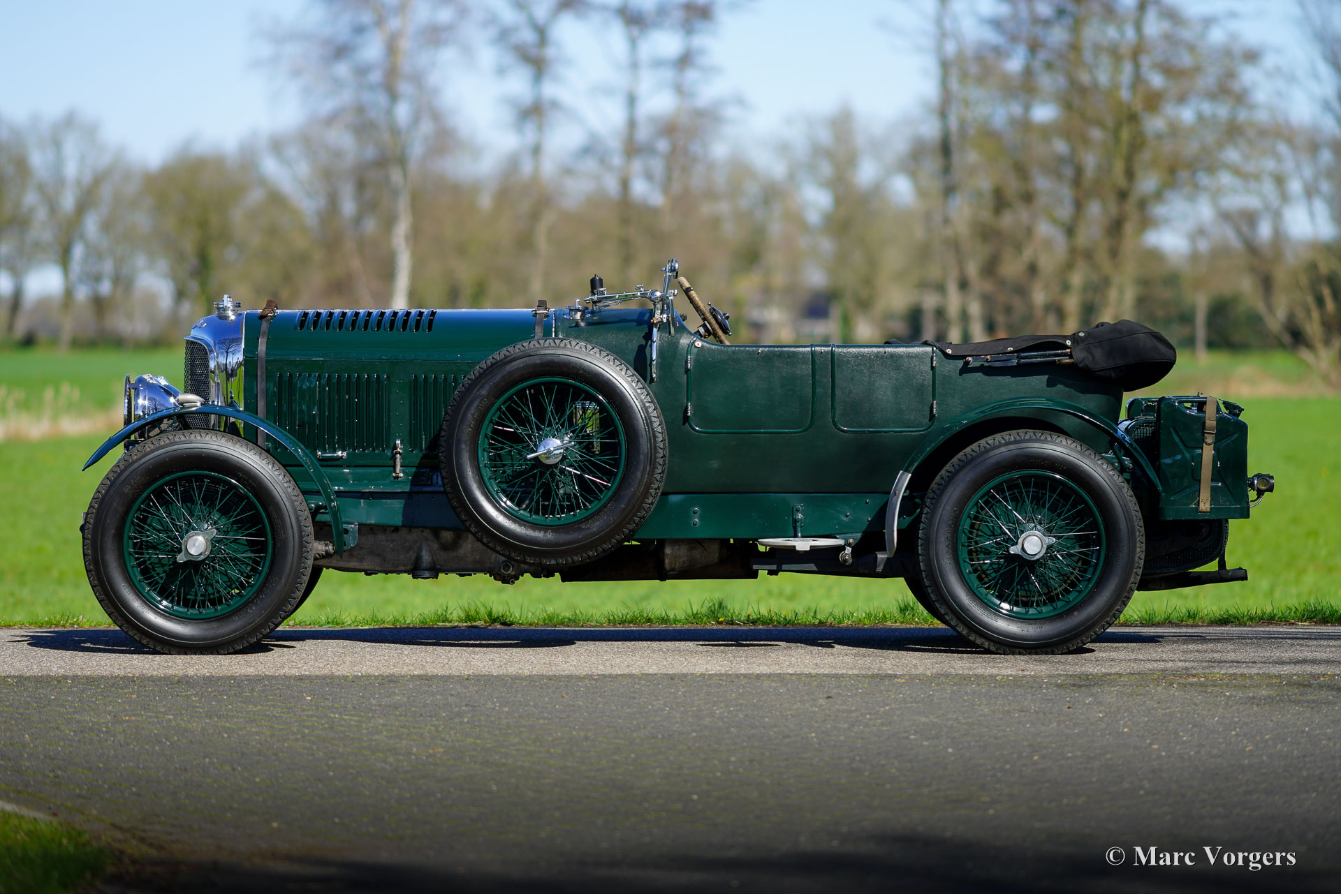 Bentley Speed Six, année (châssis) 1927. Couleur vert foncé (Dark British Racing Green) associée à un intérieur en cuir vert et un tapis en laine verte. Cette magnifique automobile fait partie des 545 modèles 6 ½ Litre et Speed Six construits entre 1926 et 1930. Le châssis Bentley 6 ½ Litre TB2526 fut construit en septembre 1926, puis équipé d'une carrosserie Limousine Landaulette par les carrosseries Hooper, l'automobile fut achevée, et immatriculée en 1927. Pendant la Seconde Guerre mondiale, la Bentley fut utilisée comme ambulance et plus tard convertie en fourgon ! La voiture est répertoriée dans le livre Bentley de Michael Hay répertoriant les voitures d'usine Bentley, les numéros et les détails indiqués ici. Dans la seconde moitié du 20e siècle, la voiture fut entièrement restaurée et reconstruite avec une carrosserie de tourer ouverte de style « Le Mans » VandenPlas et un radiateur « Speed Six » avec badge Bentley vert. L'énorme moteur six cylindres en ligne Bentley de 6,5 litres est doté de quatre soupapes par cylindre et de trois carburateurs S.U. Le moteur tourne magnifiquement. La voiture est livrée avec un dossier historique complet et très intéressant. Depuis l'an 2000, la voiture est entre les mains du dernier propriétaire/collectionneur qui a pris un soin méticuleux de cette pièce importante du patrimoine Bentley. Entre ses mains, la voiture a participé à plusieurs événements historiques de rallye/tourisme. C'est une chance unique d'acquérir une rare et super exclusive Bentley « Speed Six » d'avant-guerre dans un état magnifique et avec une délicieuse patine vintage. Veuillez nous contacter pour plus d'informations sur cette voiture Bentley rare.