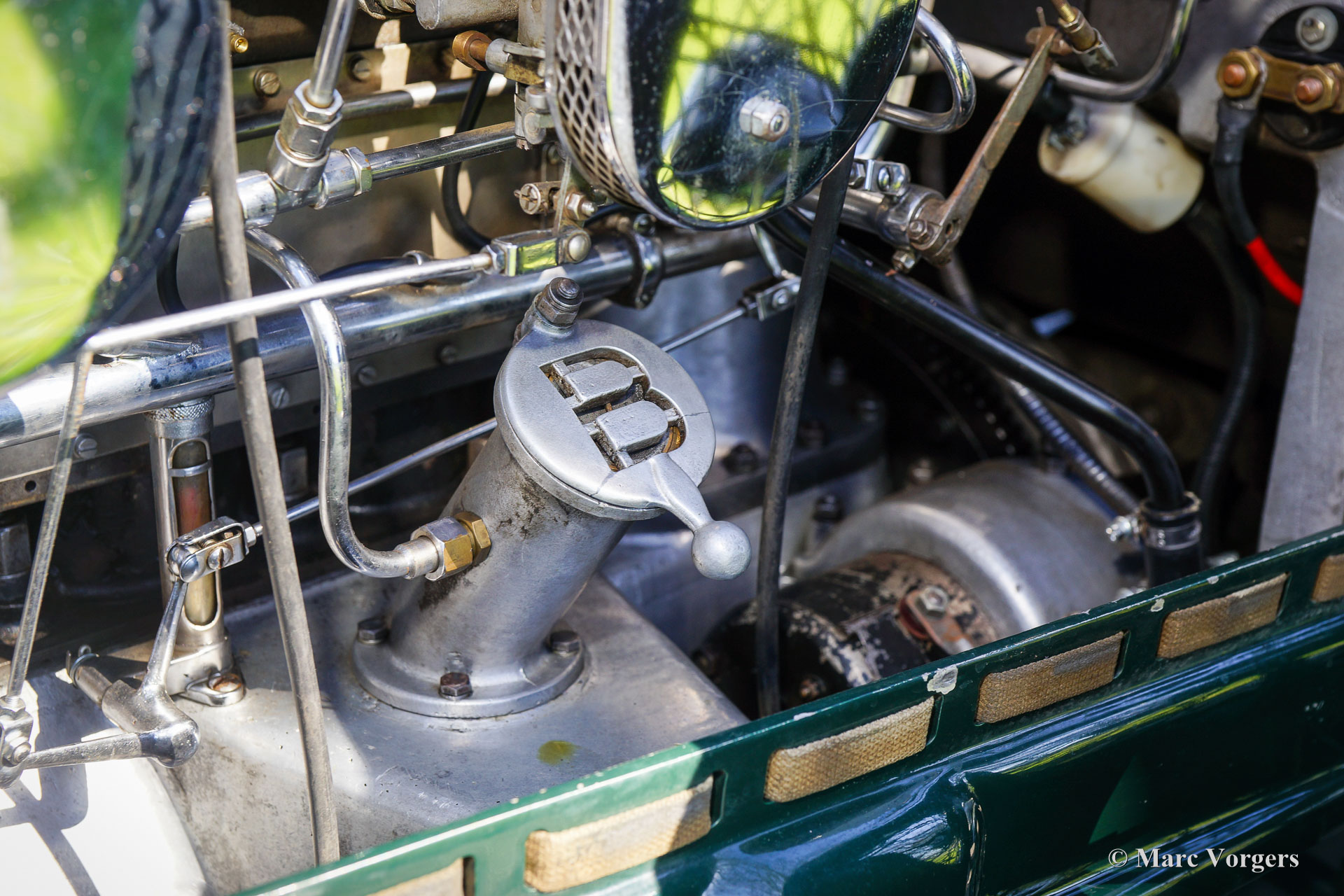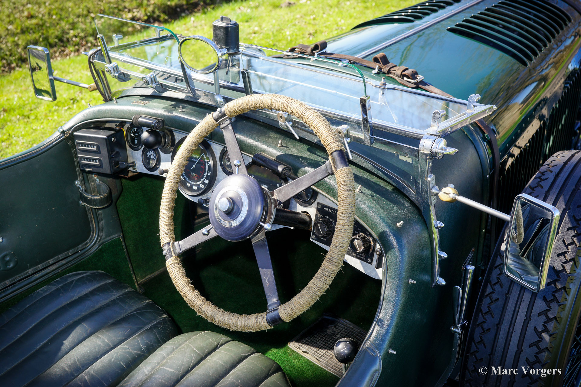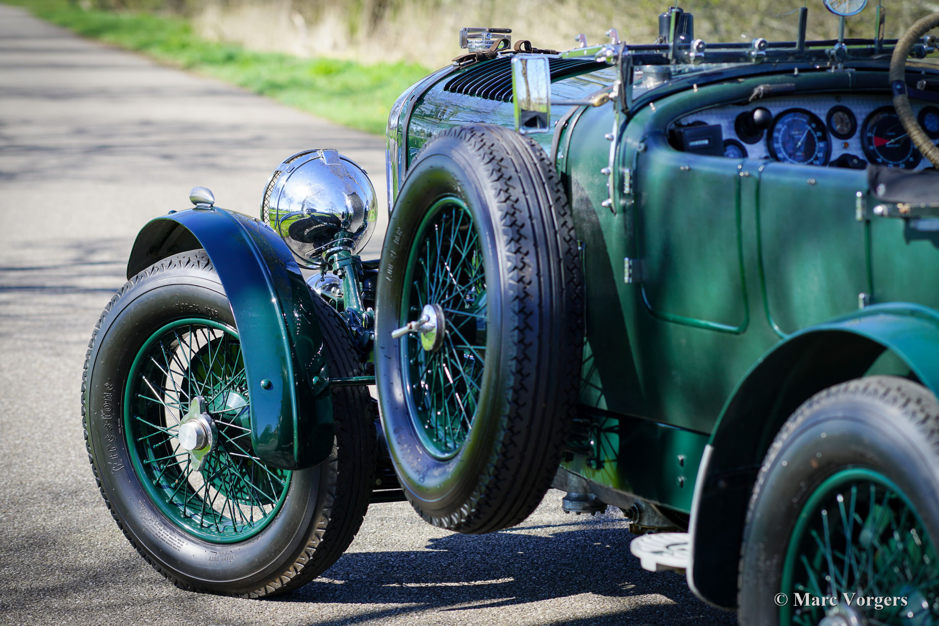 The Bentley 3 Litre was W.O. Bentley’s first design. The car was presented in 1919 but the first cars were sold in 1921. The four cylinder cars of rugged construction where in a class of their own for they combined the size and comfort of the big tourers and saloons with the road holding, and speed of the smaller sports- and racing cars. The Bentley was a true owner-driver car for the sporting motorist and connoisseur. The Bentley car could be had in three different types which were designated with three different radiator badges*. Red badge: short chassis speed model, Blue badge: the early short and then long chassis type for bespoke bodywork, Green badge: very rare and used for about eighteen 100 mph. These Green badge car won at Le Mans in 1924 and 1927 (Old Number Seven.) The 3-Litre was built from 1919 until 1929.