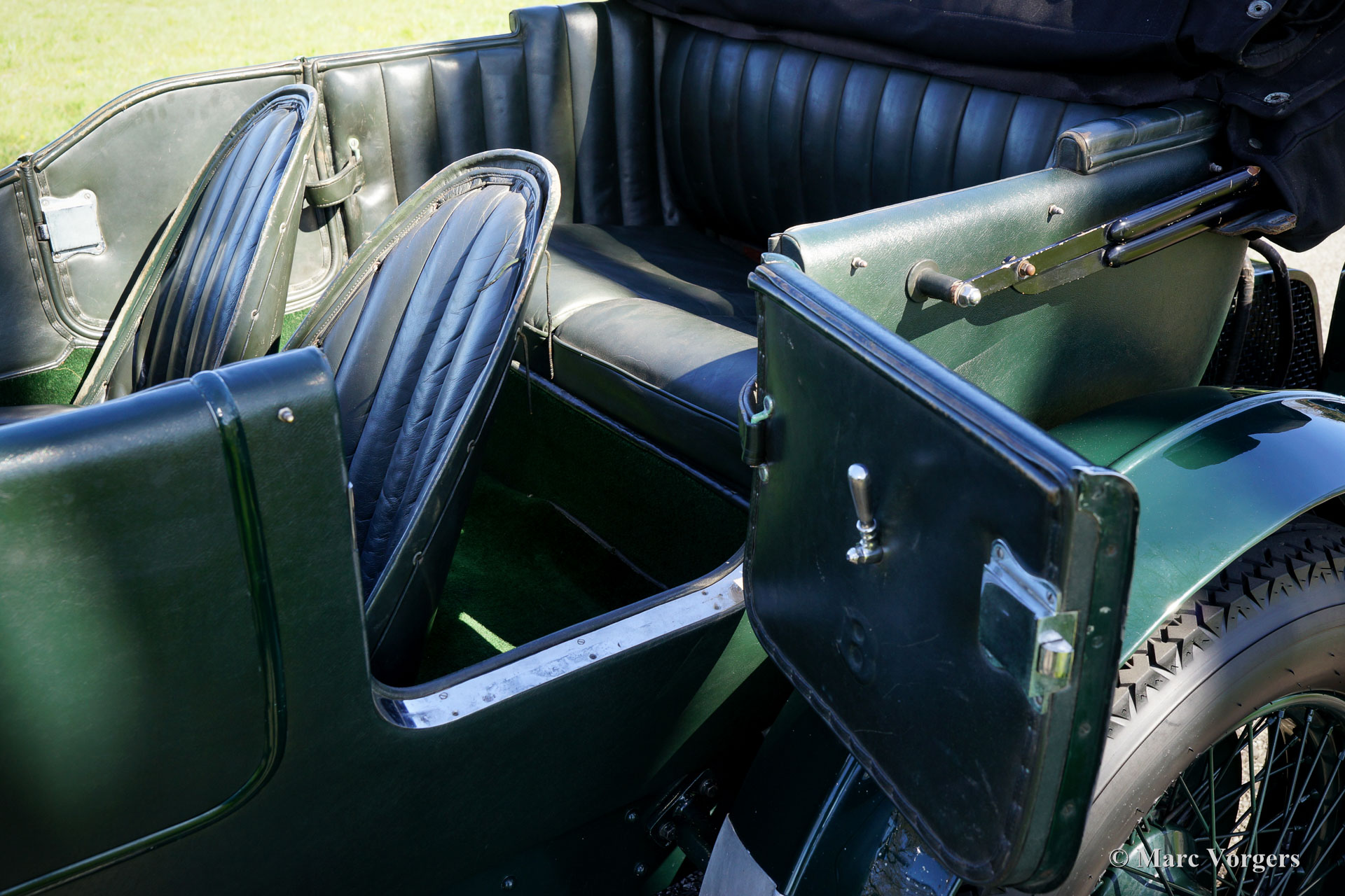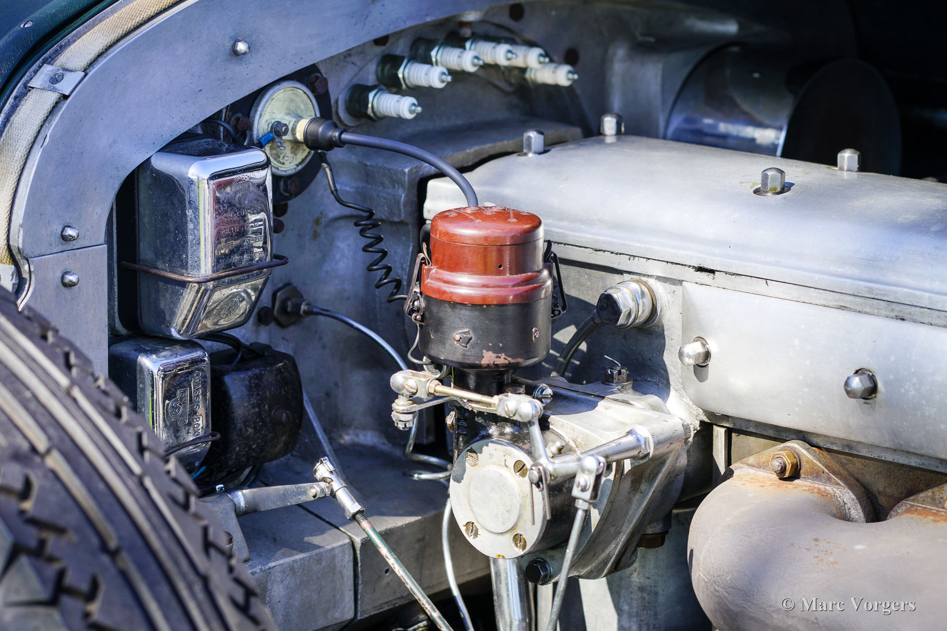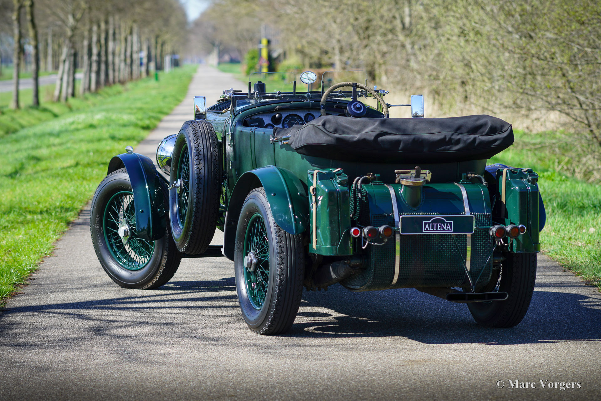 The Bentley 3 Litre was W.O. Bentley’s first design. The car was presented in 1919 but the first cars were sold in 1921. The four cylinder cars of rugged construction where in a class of their own for they combined the size and comfort of the big tourers and saloons with the road holding, and speed of the smaller sports- and racing cars. The Bentley was a true owner-driver car for the sporting motorist and connoisseur. The Bentley car could be had in three different types which were designated with three different radiator badges*. Red badge: short chassis speed model, Blue badge: the early short and then long chassis type for bespoke bodywork, Green badge: very rare and used for about eighteen 100 mph. These Green badge car won at Le Mans in 1924 and 1927 (Old Number Seven.) The 3-Litre was built from 1919 until 1929.