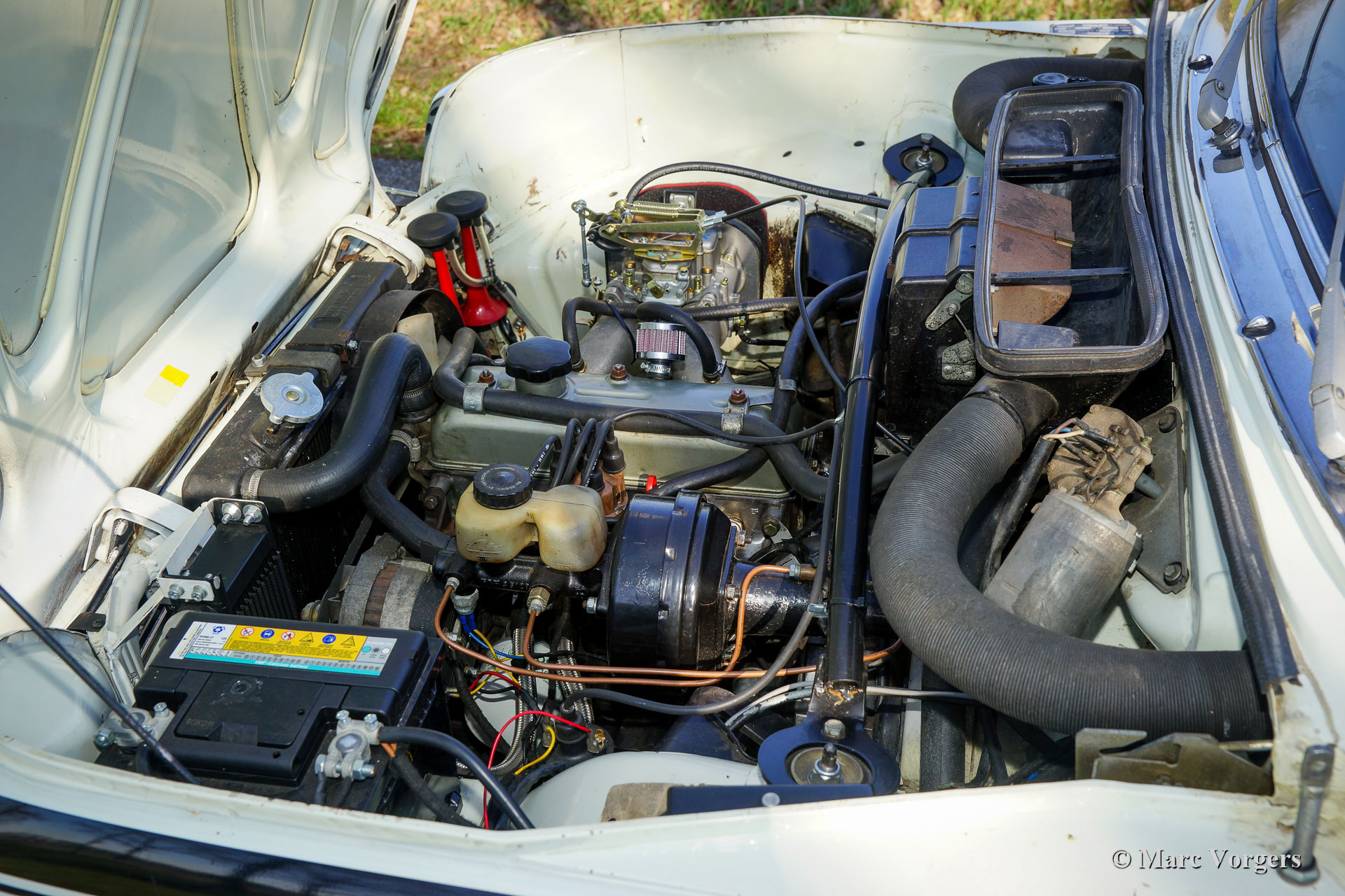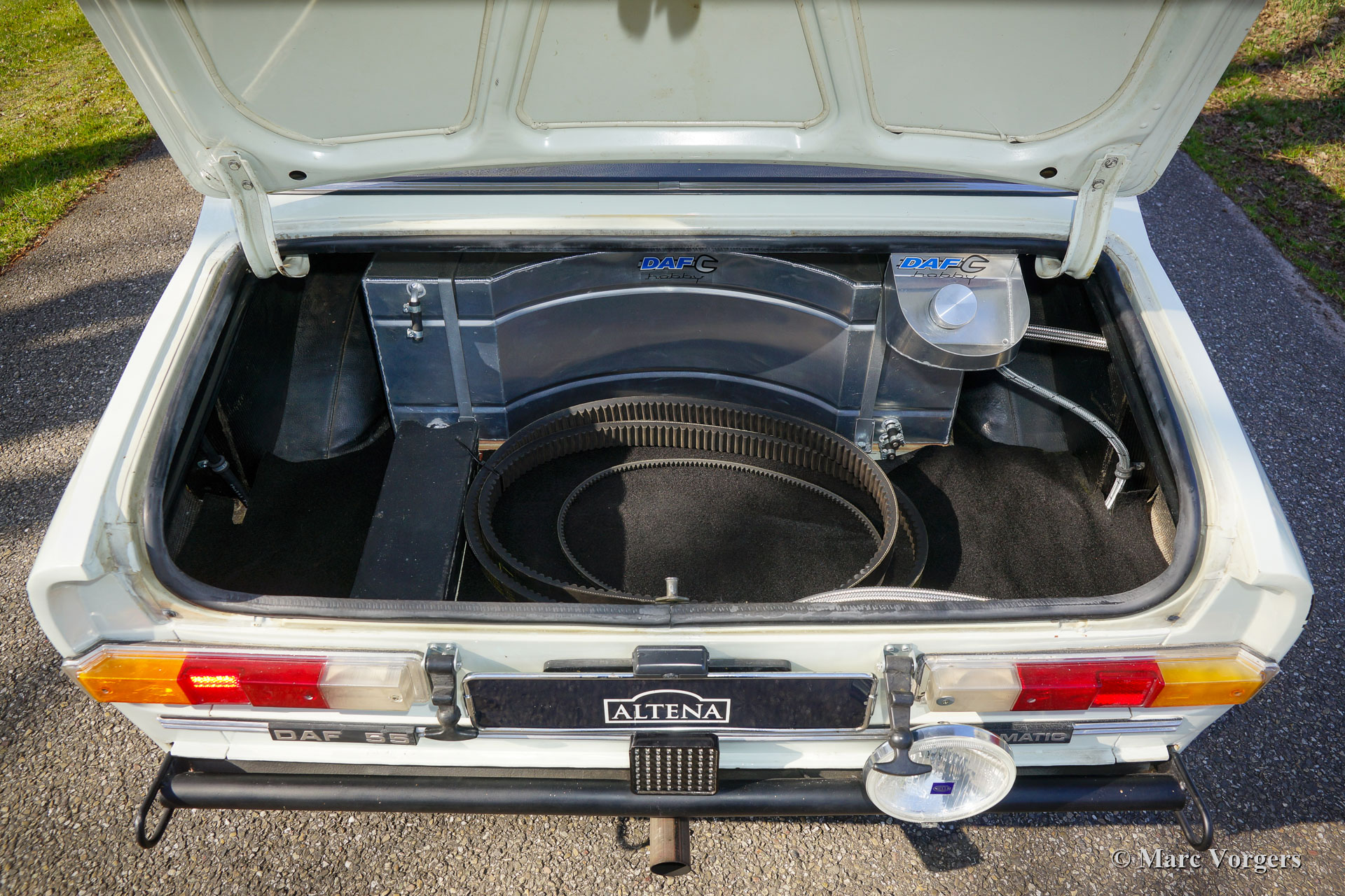 Daf 55T Coupé Voiture Rallye, année 1970. Couleur extérieure blanche avec rayures Daf Marathon, intérieur noir/gris foncé avec sièges de sécurité/confort rallye en tissu noir. Ce magnifique Daf 55T Coupé a reçu une livrée dans l'esprit des légendaires voitures du marathon Daf Londres-Sydney de 1968 (le marathon Londres-Sydney était le rallye automobile le plus lourd et le plus exigeant jamais organisé et les robustes voitures Daf ont relevé ce défi de 16,694 kilomètres sur trois continents). Ce Daf 55T Coupé fut préparé et réglé par des professionnels pour les rallyes historiques, les coûts et les efforts n'ont pas été épargnés. Voir la longue liste de préparation ci-dessous. Les travaux et services les plus récents furent effectués par Altena Classic Service, toutes les factures sont présentes. Cette fantastique voiture de rallye DAF 55T Coupé est censée être la voiture de rallye Daf la plus puissante et la plus rapide des Pays-Bas. Cette automobile unique est en très bon état (et parfaitement préparée) et la voiture est prête pour toute aventure de rallye !
