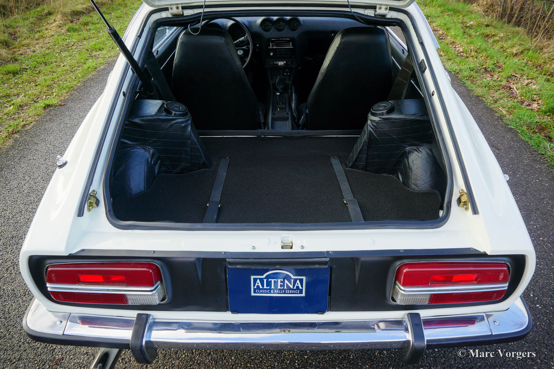 Datsun 240Z, année 1971. Couleur blanc crème (Datsun numéro de couleur 904) combiné avec un intérieur en cuir artificiel noir et un tapis noir. « Matching Numbers & Colours » ! Cette magnifique Datsun 240Z de série 1 a été vendue neuve à un M. James à Sacramento, Californie, USA. La voiture a été expédiée aux Pays-Bas en 2016. Dans les années 2016 - 2019, la voiture (californienne entièrement sans rouille) fut décapée, restaurée et peinte dans la couleur d'origine. Toutes les soudures par points d'origine sont toujours visibles ! Un reportage photo complet des travaux est présent. Le moteur et la boîte de vitesses furent inspectés et trouvés en excellent état ne nécessitant aucune révision. Tous les éléments mécaniques furent inspectés, remis à neuf / entretenus et les carburateurs furent révisés. La voiture a l'air neuve à l'intérieur comme à l'extérieur, y compris le dessous ! Ce fantastique Datsun 240Z est en superbe état de top (concours). La voiture est livrée avec un historique (de service) complètement documenté du JOUR 1 ! Deux dossiers contiennent tous les manuels (d'instructions) originaux, la carte de garantie, le laissez-passer de garantie, le livret radio (d'instructions), les factures de service / restauration et le rapport photo de restauration. Le titre USA est toujours présent, ce Datsun 240Z peut être importé / exporté vers n'importe quel pays du monde. Ce magnifique Datsun 240Z est doté de la radio AM d'origine et de superbes roues en alliage léger Z de 14 pouces chaussées de pneus 195/70 14. C'est un exemple en superbe état difficile à trouver !