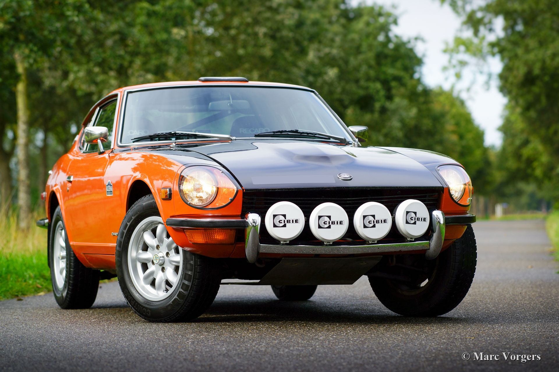 Datsun 240Z, année 1971. Numéro de châssis HLS30-2108X, numéro de moteur L28 01335X. Couleur orange avec un capot noir combiné à un intérieur en similicuir noir. Ce fantastique Datsun 240Z a été vendu neuf aux États-Unis. La voiture a été importée aux Pays-Bas en 2008. En 2009, le propriétaire a fait appel à Altena Classic Service pour la restauration, la révision et la préparation du rallye en profondeur de la 240Z. Tout a été révisé et ou renouvelé. La voiture a été perfectionnée en détail pour la conduite de rallye avec une suspension relevée, un faisceau de câbles spécial, des amortisseurs et ressorts Koni tout autour, une boîte de vitesses à 5 vitesses, un grand réservoir à essence en aluminium, un arceau de sécurité professionnel, des sièges Recaro, des Harnais de sécurité Sparco, feux de position et de virage supplémentaires à l'avant et autres accessoires spéciaux pour le rallye. Un reportage photo et des factures de la restauration et de la préparation du rallye sont présents. Dix ans après la restauration, le Datsun 240Z est toujours en très bon état. La voiture a été entretenue à temps et la voiture roule et sonne parfaitement! L’expérience de conduite est exaltante et participer à des événements de rallye historiques avec ce Datsun 240Z est un pur plaisir. La voiture est livrée avec une carte d'identité FIVA et peut être exportée dans n'importe quel pays du monde. Ce magnifique Datsun 240Z est prêt pour toute aventure entre les mains d'un nouveau propriétaire!