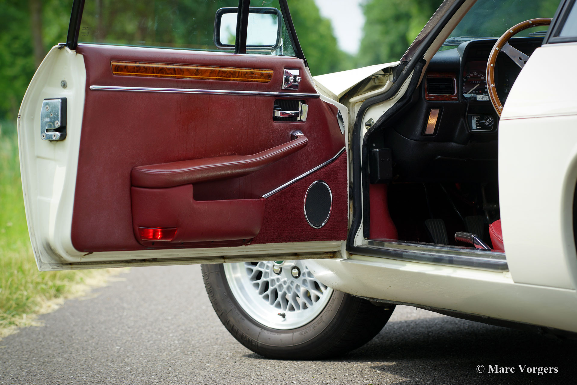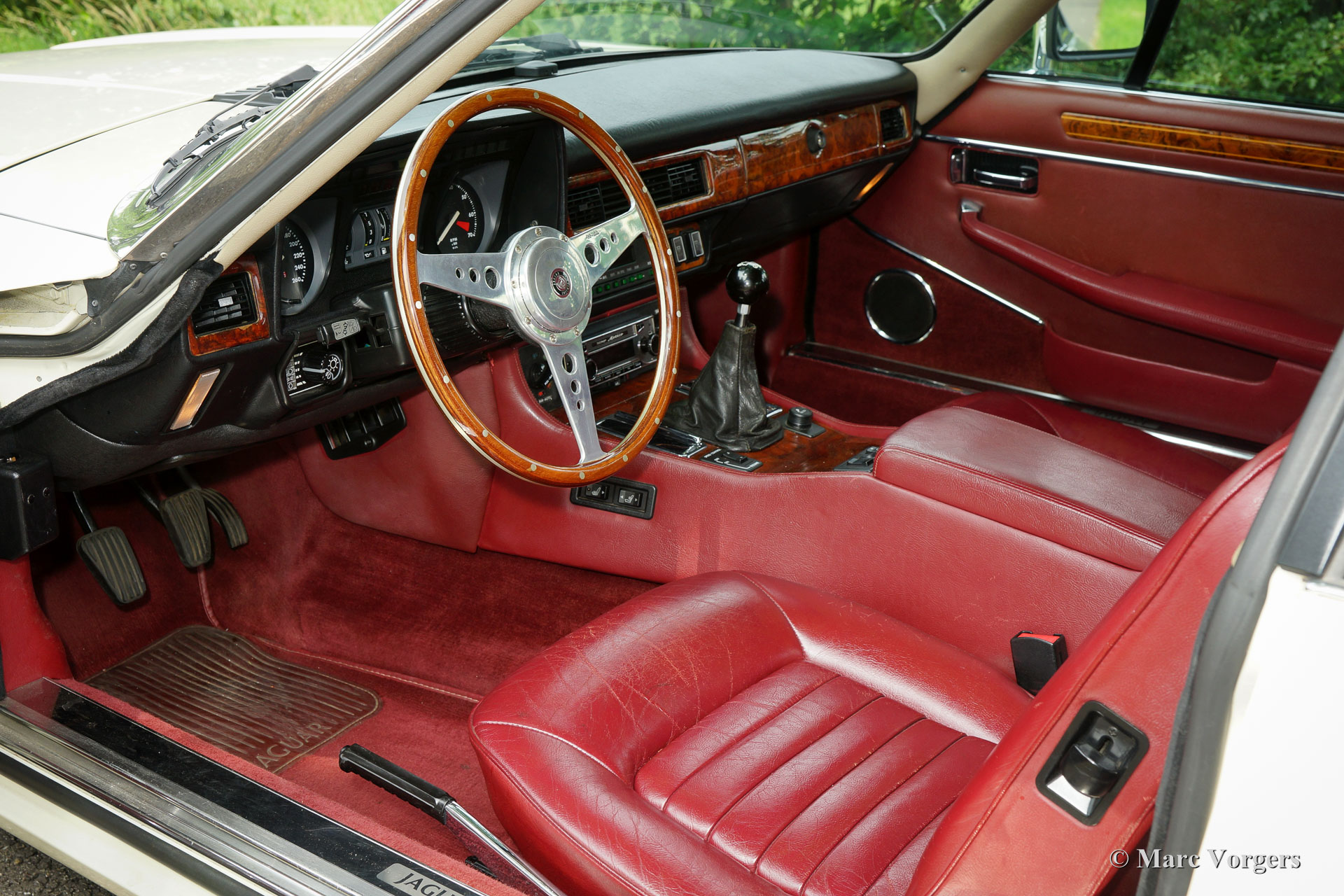 Jaguar XJS V12 coupé 5.3 litres, année 1987. Numéro de châssis : SAJ-JNAEW4BA 1407XX. Couleur blanc (Nimbus White) avec un intérieur en cuir rouge (Mulberry Red) et un tapis rouge. Ce magnifique Jaguar XJS V12 coupé fut vendu neuf aux Pays-Bas. Du nouveau, l'automobile a parcouru 112 000 kilomètres. Cette fine XJS est en très bon état et super original. La voiture montrant sa peinture originale ! Ce coupé XJS V12 est un spécimen rare équipé d'une boîte de vitesses manuelle et présentant une liste complète des options ! L'extérieur et l'intérieur ne présentent que de très légers signes d'utilisation, et qu'après 30 ans ! Un certificat Heritage est présent, tel qu'un dossier original contenant les manuels d'origine et le carnet de service. Le carnet de service fut rempli et marqué à l'avance aux intervalles du service du concessionnaire. Dans le tronc, vous trouverez l'ensemble d'outils d'origine et à l'intérieur un volant sportif Moto-Lita à bord de bois et une radio Becker « classique » moderne. La voiture est équipée de jantes en alliage Jaguar de 16 pouces, les roues d'origine sont également présentes. C'est un Jaguar XJS très impressionnant et un exemple original difficile à trouver !