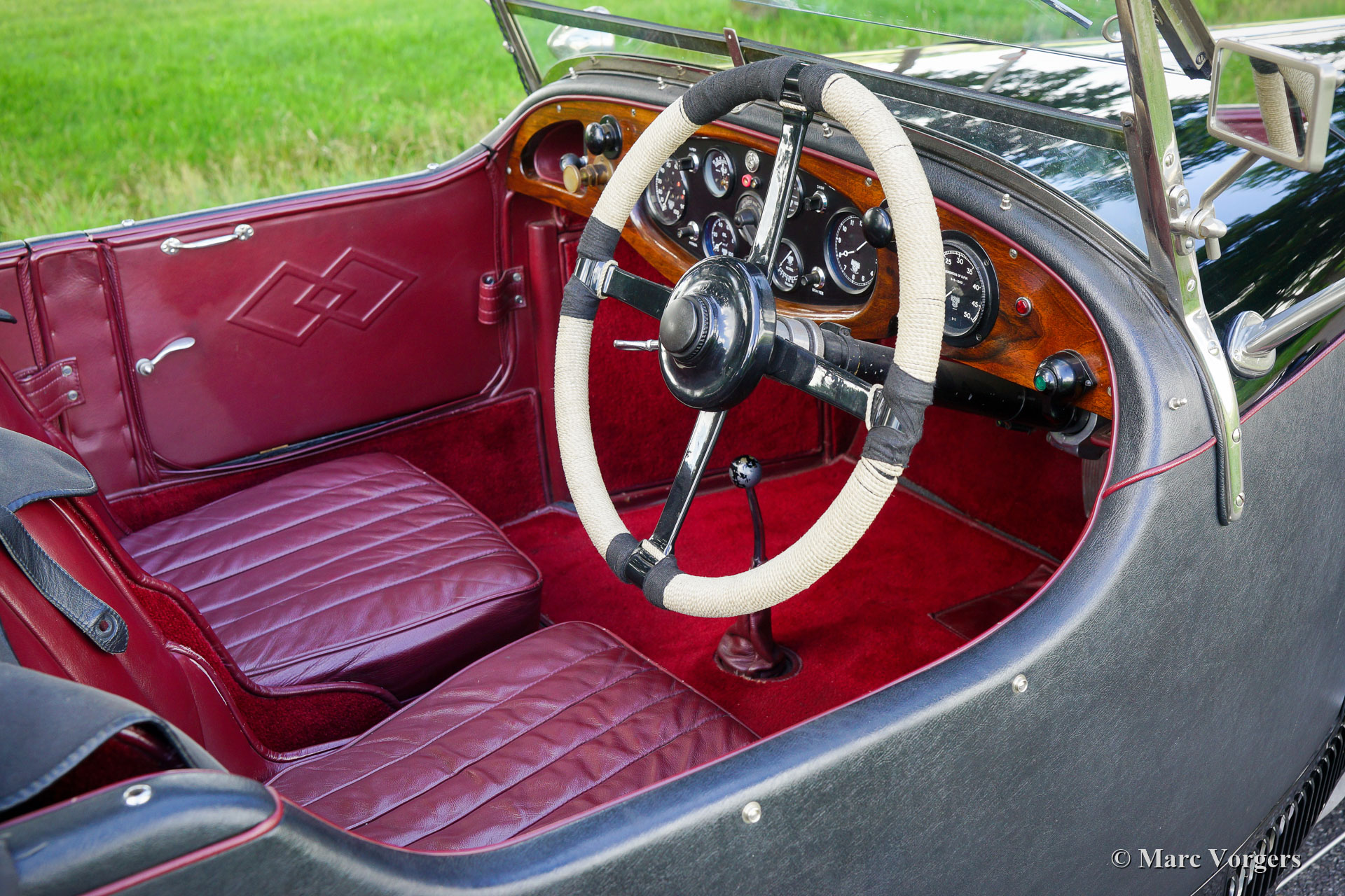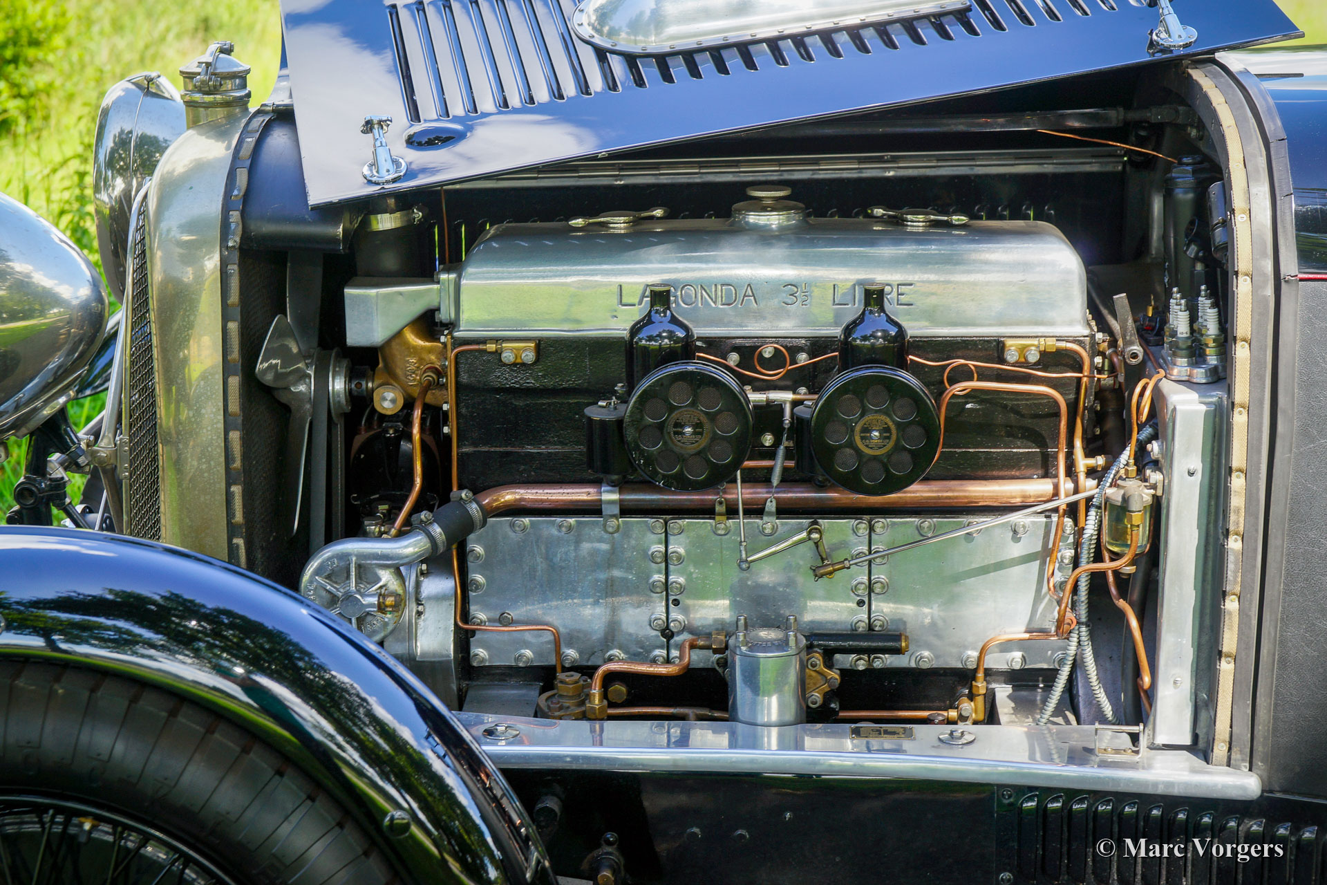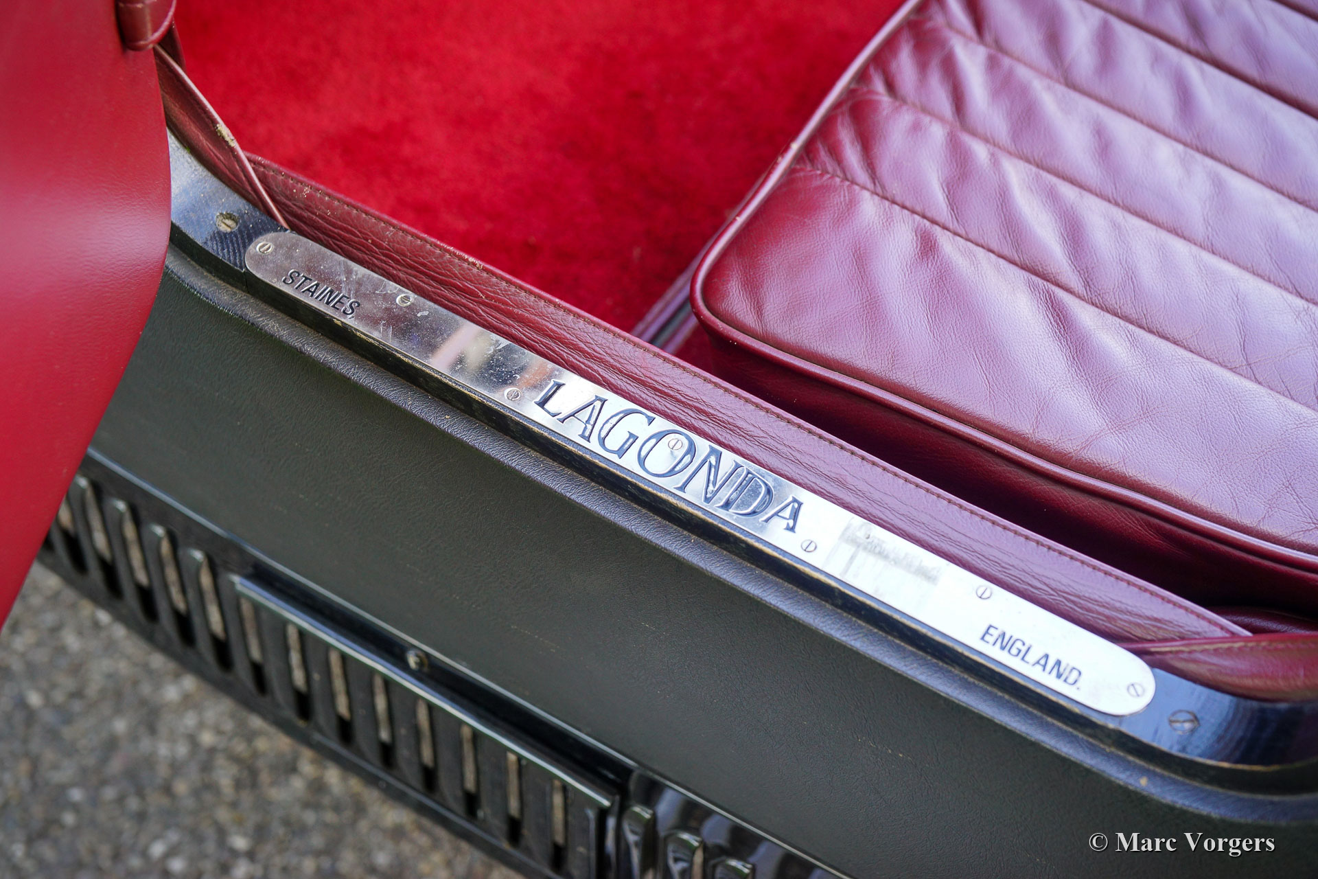 Lagonda 3 ½ litres T-Type Tourer, année 1933. Couleur noire avec un intérieur en cuir bordeaux et un tapis bordeaux assorti. Capot noir et capuche noir. Cette magnifique Lagonda a commencé sa vie comme une berline de 3 litres. Dans les années 1997 - 1999, l'automobile fut entièrement restaurée selon les normes les plus élevées par un spécialiste de la marque en l’Angleterre. Le corps de la berline fut remplacé par une superbe carrosserie Lagonda T-Type Tourer recouverte de tissu « Weyman » et des garde-boue style casque furent ajoutés. De plus, un moteur Lagonda de 3 ½ litres plus puissant et entièrement révisé fut installé. Ce moteur est presque identique à son prédécesseur de 3 litres. Ce moteur 1935 avec le numéro de moteur 35Z183X est le dernier jamais construit et connu du club Lagonda, seulement 83 unités de ce moteur ont été construites. De plus, la voiture a reçu une boîte de vitesses Alvis à 4 rapports entièrement synchronisée! Cette très belle automobile d'avant-guerre est en excellent état et la voiture roule délicieusement ! La voiture montre des détails magnifiques et le tableau de bord en bois entièrement équipé est magnifique à regarder. C'est une Lagonda très rare et hautement souhaitable !