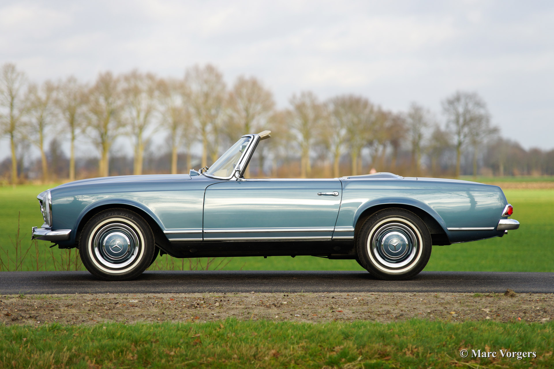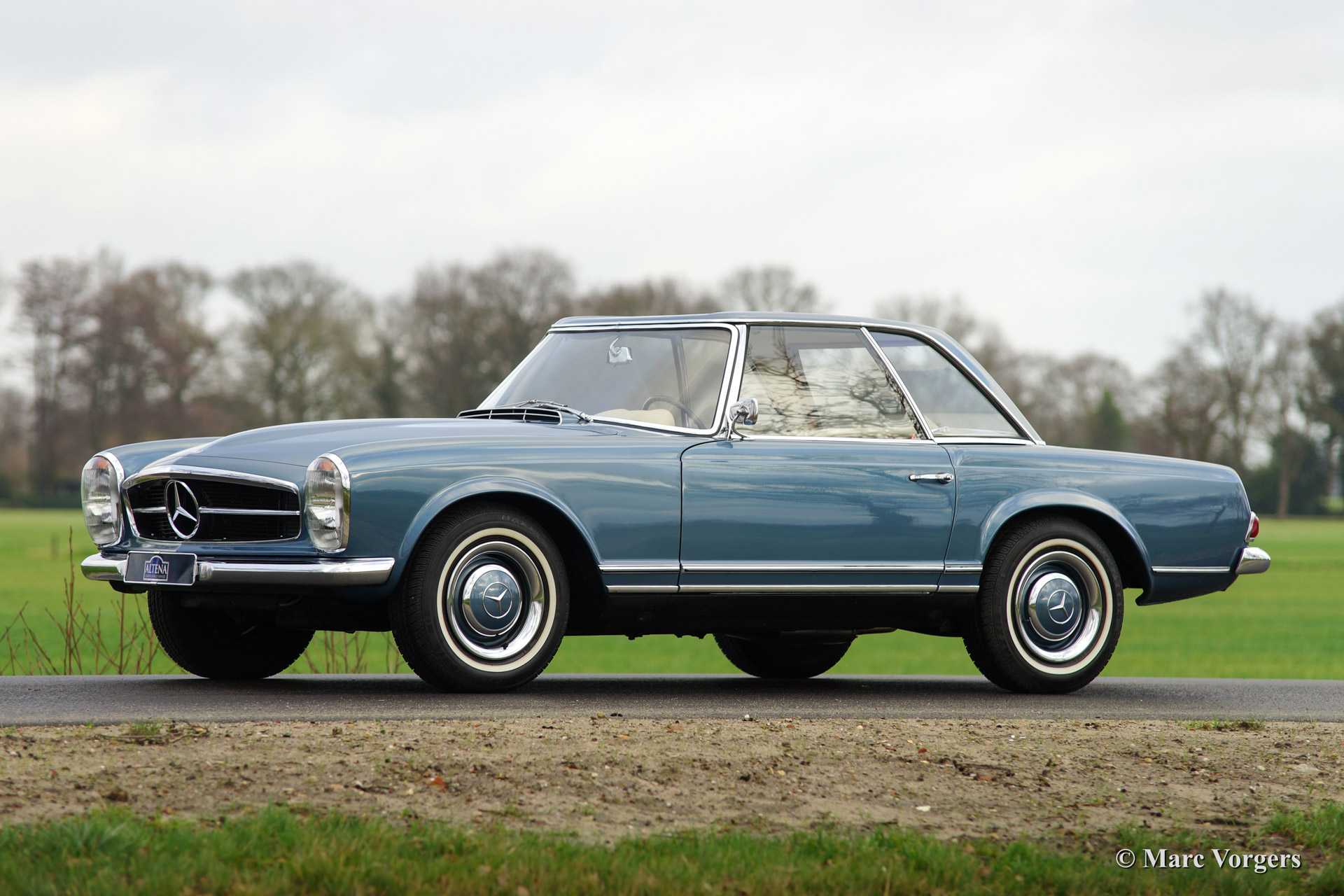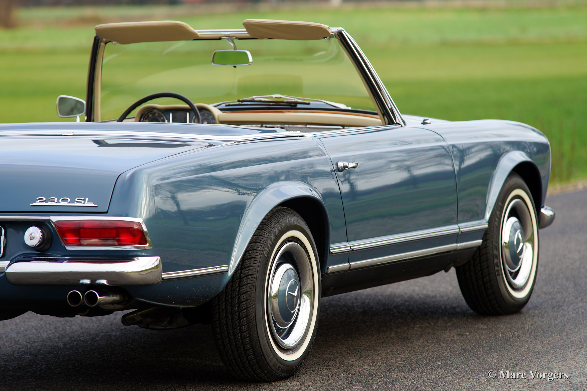 The Mercedes 230 SL followed the Mercedes 190 SL which was built up until 1963. The timeless, austere design that was first seen in the Mercedes 300 SE sedan in 1961, was continued in the 230 SL: many see this version as the most beautiful Mercedes since the 1960s. The 230 SL is characterized by its refined, lively handling, and by its very high constructive and technical quality. The car also offers much space, many comforts and practical conveniences. The open two-person roadster is also available with a hardtop, which changes the car into a closed coupe. The Mercedes-Benz 230 SL carried the nickname of 'Pagoda' because of the design of the hardtop.