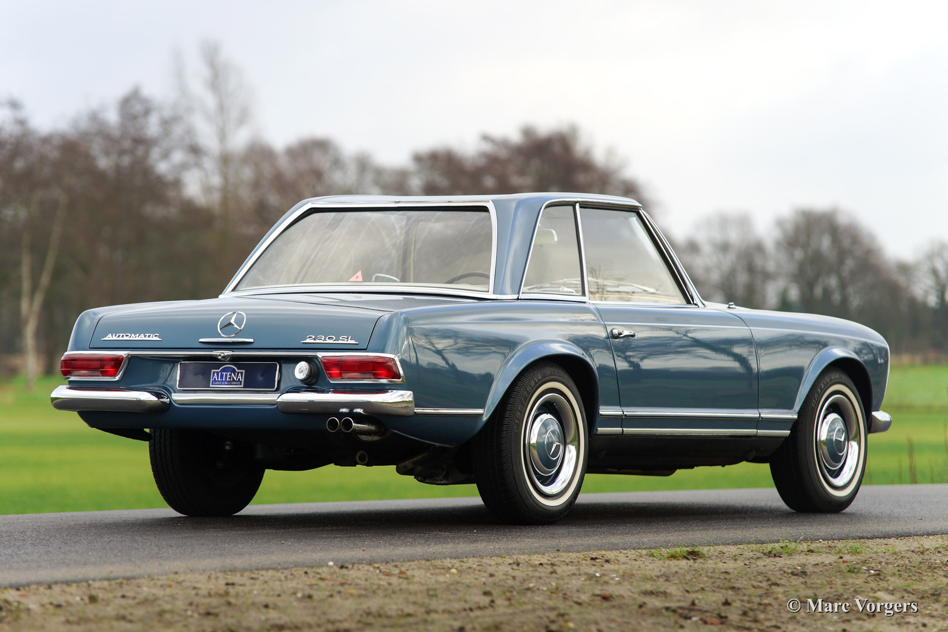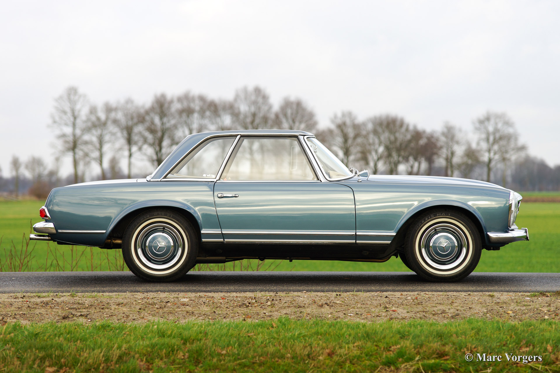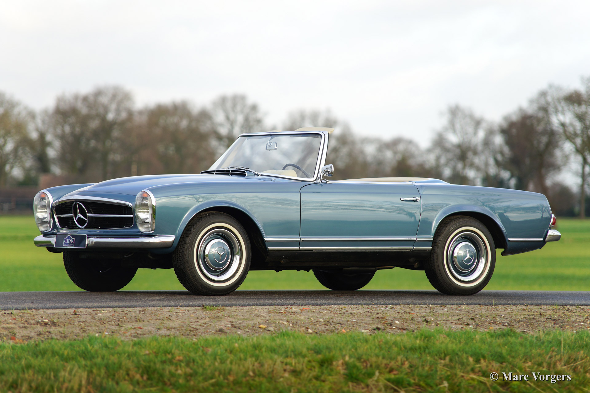 The Mercedes 230 SL followed the Mercedes 190 SL which was built up until 1963. The timeless, austere design that was first seen in the Mercedes 300 SE sedan in 1961, was continued in the 230 SL: many see this version as the most beautiful Mercedes since the 1960s. The 230 SL is characterized by its refined, lively handling, and by its very high constructive and technical quality. The car also offers much space, many comforts and practical conveniences. The open two-person roadster is also available with a hardtop, which changes the car into a closed coupe. The Mercedes-Benz 230 SL carried the nickname of 'Pagoda' because of the design of the hardtop.