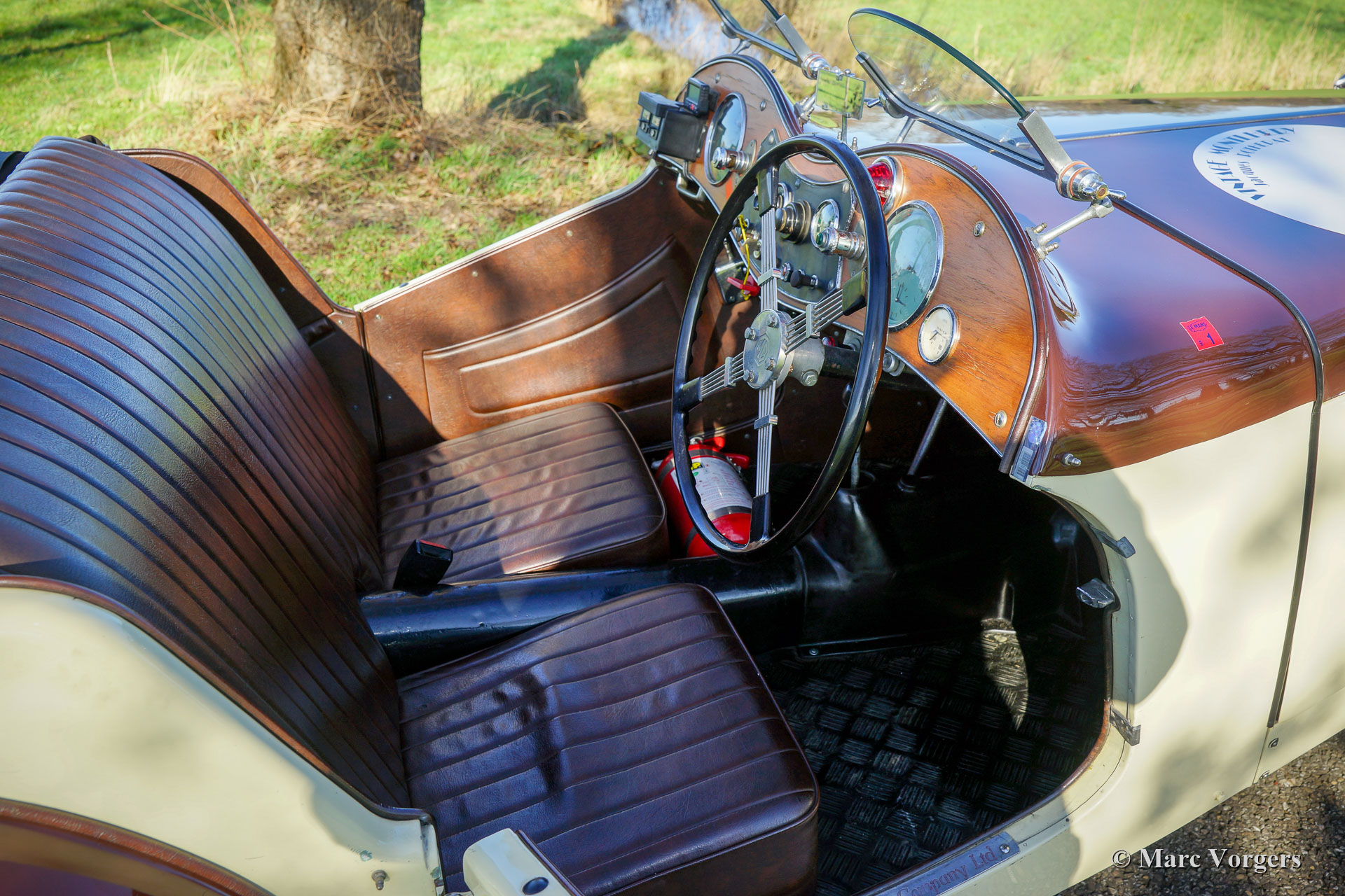 MG TA ‘Cream Cracker’, année 1936. Couleur marron foncé sur crème (beige) combinée à un intérieur en cuir marron et un couvre tonneau en mohair marron. Ici, nous avons une reconstitution d'une célèbre voiture de l'équipe de travail MG « Cream Cracker ». Les « Cream Cracker » de la MG TA ont été couronnés de succès lors des compétitions d'essai au Royaume-Uni à la fin des années 1930. La MG TA de 1936 présentée fut importée aux Pays-Bas en 2000 et n'a connu depuis qu'un seul propriétaire néerlandais. La voiture est livrée avec un historique entièrement documenté, tous les propriétaires précédents sont connus. La MG TA fut modifiée selon les spécifications de la compétition par un spécialiste MG aux Pays-Bas, les pièces d'origine comme le pare-brise et le cadre de capot souple d'origine sont toujours présentes. Aucun coût ni effort n'ont été épargnés pour construire une récréation MG TA « Cream Cracker » vraiment compétitive, nos essais routiers ont été des expériences impressionnantes ; c'est l'un des types de MG T à aspiration naturelle les mieux réglés que nous ayons jamais conduits ! Voici une liste des modifications et mises à jour les plus importantes : Un moteur MG XPAG réglé fut monté. Le moteur est doté d'un vilebrequin Phoenix en acier à billettes et d'un arbre à cames sport, de deux S.U. Carburateurs HS4 1 ½ pouce, une culasse Laystall airflow en aluminium et un collecteur d'échappement « free-flow ». D'autres mises à jour mécaniques sont une boîte de vitesses Ford à 5 vitesses et des freins à tambour en aluminium Alfin. La voiture est équipée de roues à rayons de 19 pouces chaussées de pneus Blockley 4,50x19, de bulles aérodynamiques Brooklands, d'amortisseurs Hartford et de roues de secours jumelles montées à l'arrière. Pour éviter toute confusion avec les vraies voitures de l'équipe « Cream Cracker », cette récréation souhaitable affiche les mots « Cream Crackered » sur le capot. Cette MG TA roule parfaitement et l'expérience de conduite, ainsi que le son du moteur sont vraiment exaltants ! Cette MG TA peut être importée / exportée vers n'importe quel pays du monde. De nombreuses pièces de rechange sont disponibles pour être acquises séparément.