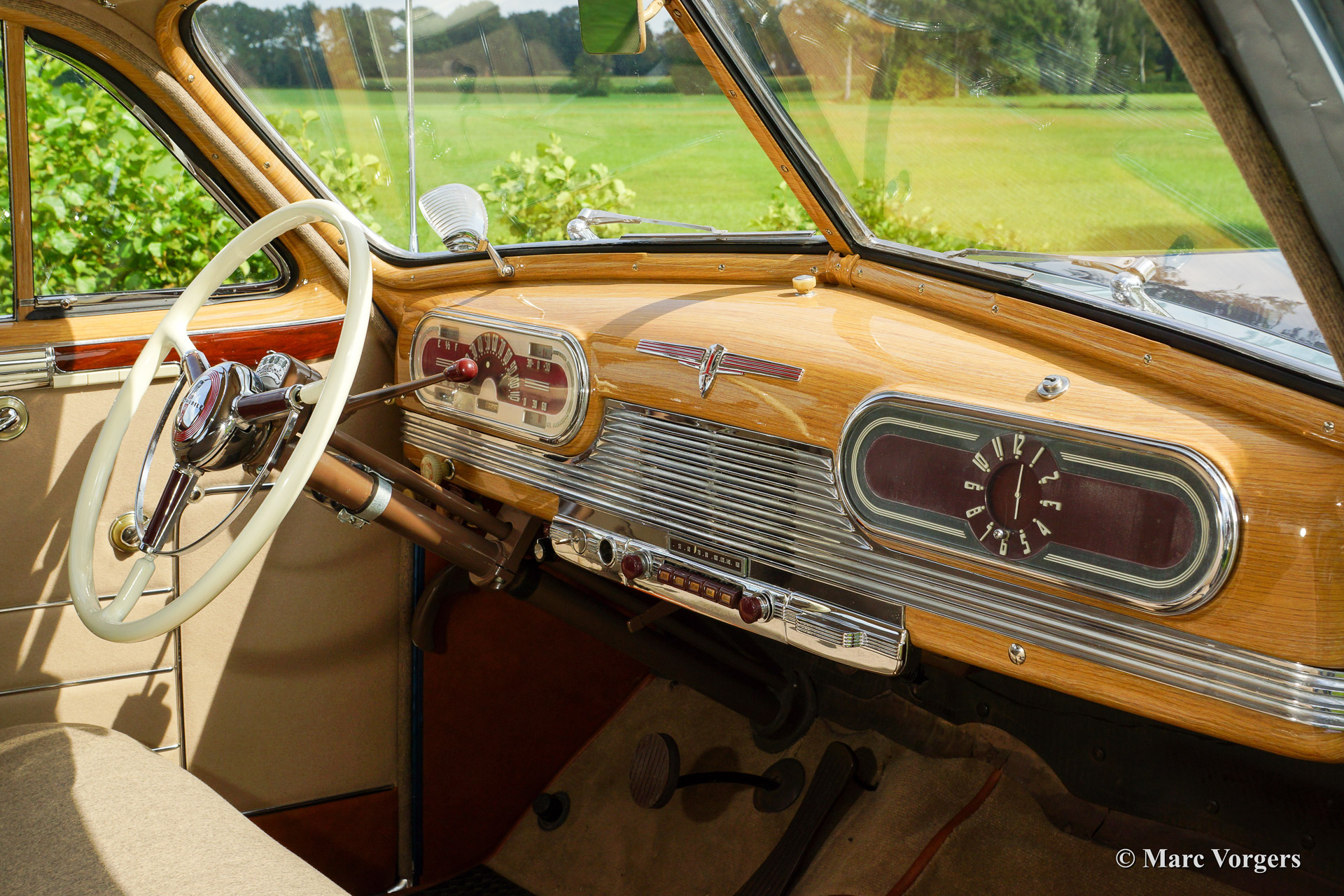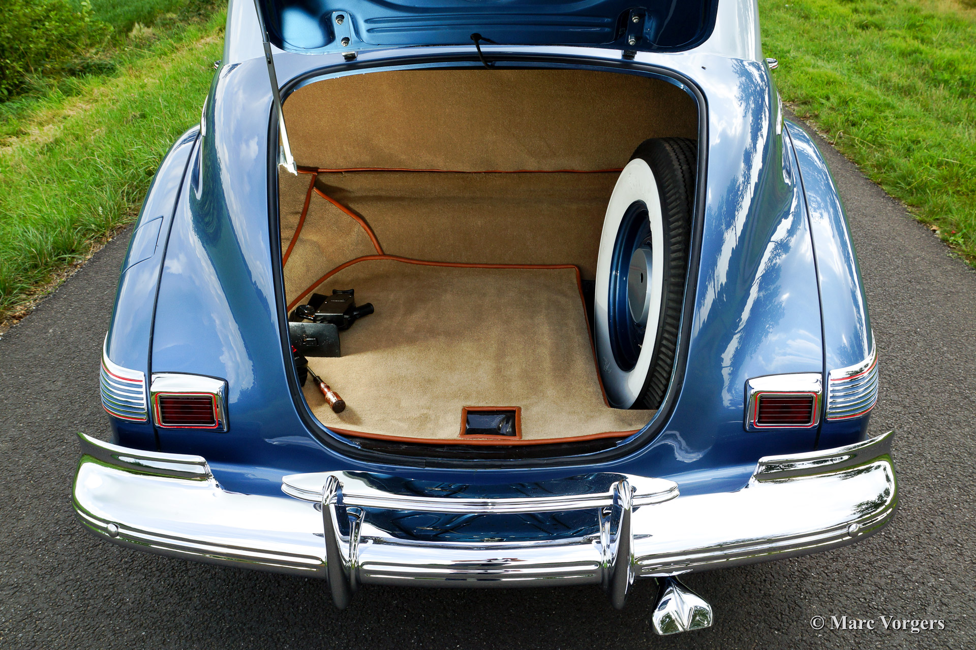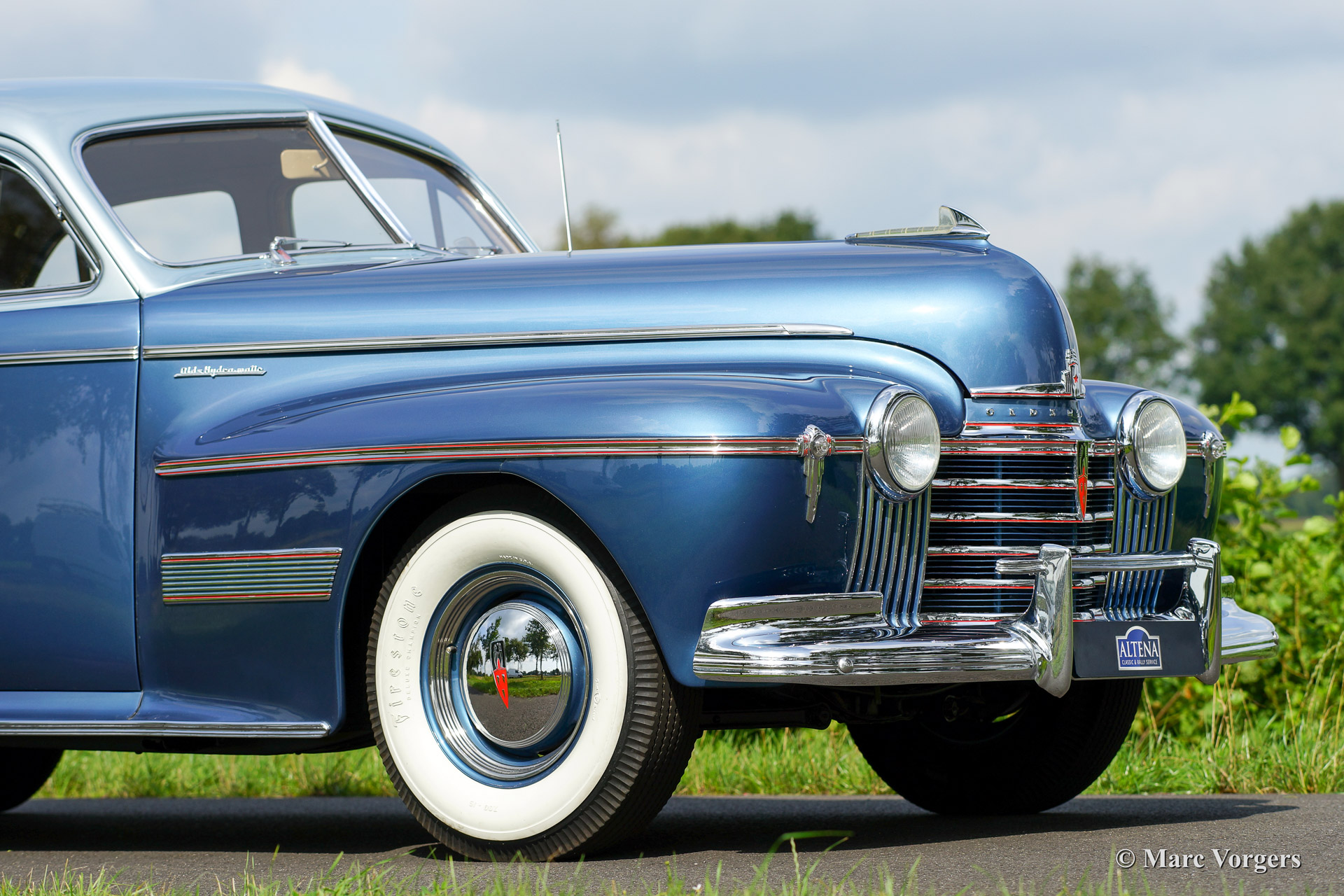 Oldsmobile 98 De Luxe, year 1941. Colour two-tone, blue metallic with a silver roof top, and a beige interior. This magnificent Oldsmobile 98 De Luxe four door sedan from the first series has been restored to perfection. Costs nor effort were spared to bring this impressive automobile to concourse (show) condition! The history is known from new as the car was delivered to the Shorts family in Ravenna, Ohio, USA. The automobile comes beautifully documented and complete with original booklets like the operation manual, workshop manuals, colour chart, body sheet, brochure, Hydra-Matic booklet etcetera. The car sports the delightful Hydra-Matic 4-speed(!) automatic gearbox, original crick, original AM radio and a telescopic aerial which can be operated from the interior! A magnificent automobile, a very smooth driver and a true collector item.