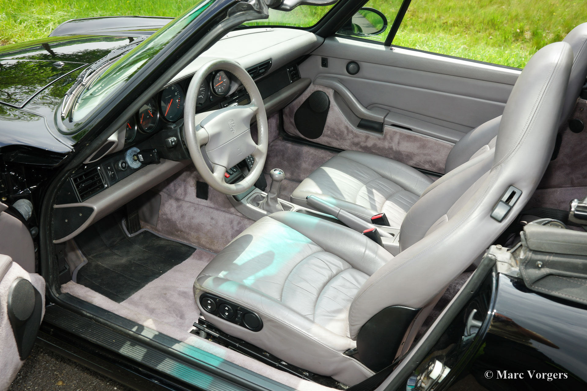 Porsche 911 (993) Carrera cabriolet, année 1995. Numéro de châssis : WPOZZZ99ZTS331XXX. Couleur noire avec un intérieur en cuir gris et moquette grise. Capot noir. Cette Porsche 911 cabriolet Carrera énorme a été vendue neuve en Allemagne. En l'an 2000, la voiture a trouvé un nouveau propriétaire en France. En l'an 2013, la 911 a été importé aux Pays-Bas. L'histoire est entièrement connue et documentée. Aussi l'histoire de service est terminée ; le livre de service a été estampillé en Allemagne, en Autriche, en France et aux Pays-Bas et les factures de services sont également à portée de main. Ce cabriolet amende Porsche 911 Carrera a poussé 171.100 kilomètres de nouveau, la voiture est en très bon a excellent état et la voiture roule parfaitement ! Cette Porsche 911 dispose d'une boîte de vitesses à six vitesses à commande manuelle, jantes en alliage léger de type ‘Cup’, une radio Porsche et un coupe-vent.