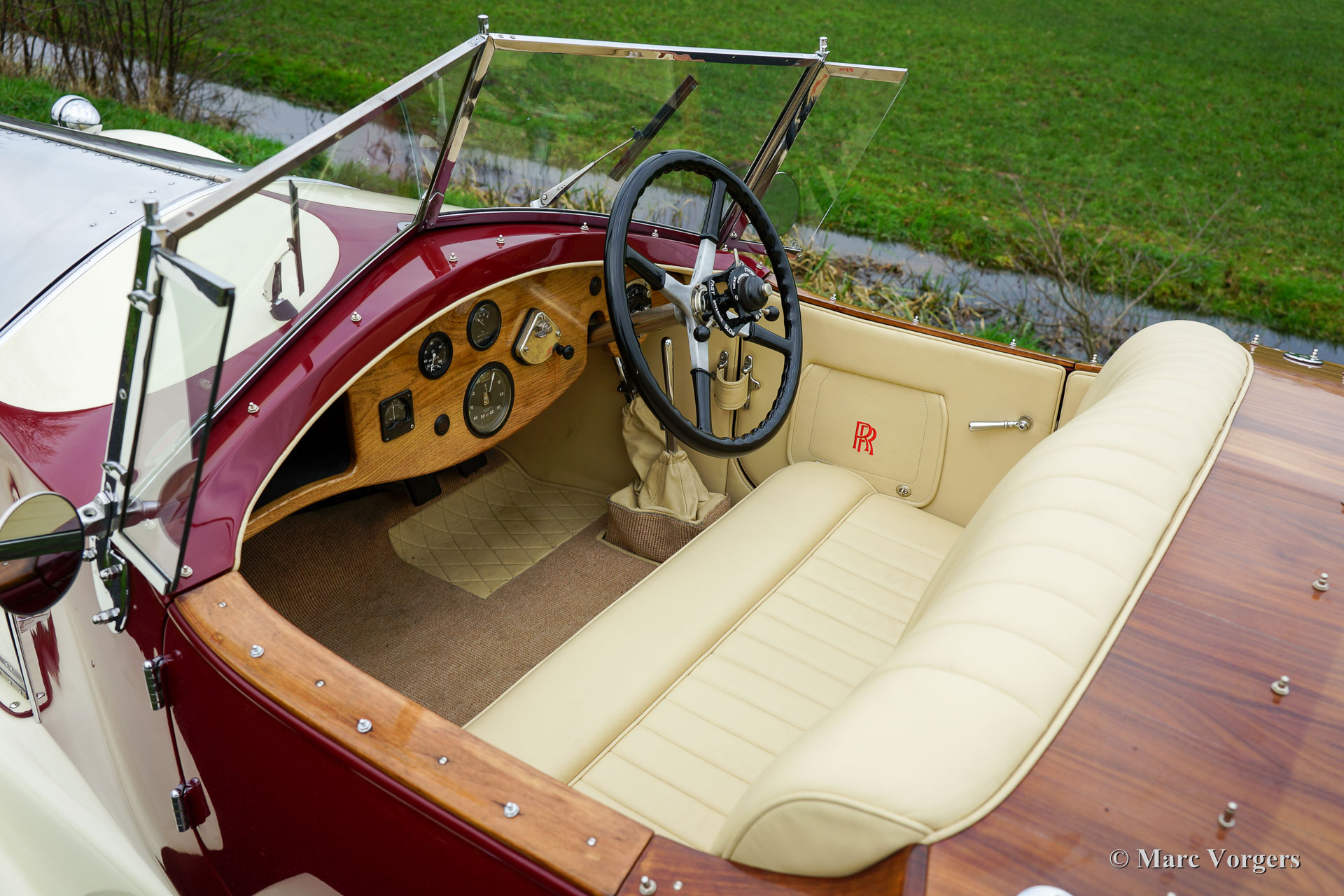 Rolls-Royce Phantom I, année 1928. Numéro de châssis 450XX - 52FH. Couleurs : corps rouge foncé, aluminium poli capot, ailes et marchepieds en blanche crème, châssis gris. Intérieur en cuir beige clair et moquette beige. Ce majestueux et très impressionnant Rolls-Royce Phantom I avec carrosserie ‘boat-tail’ est en superbe état top! L'automobile a été livrée neuve le 1er Juillet 1928. Au début des 1950ies le corps très beau ‘boat-tail’ actuel a été construit et aménagé par Wilkinson coach builders de l'Angleterre. Au début des 1970ies la voiture a été entièrement restauré par Rolls-Royce spécialiste Jarvis au Royaume-Uni. En 1997, cette magnifique Rolls Royce a conduit de Pékin - Paris. Après que l'automobile a été porté à l'état actuel SUBLIME. Cette Rolls-Royce est une beauté magnifique et la voiture roule absolument fantastique.