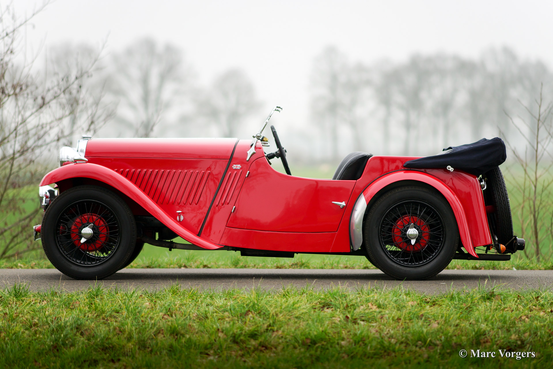 Singer Nine sports, années 1933. Numéro de châssis 495XX. Couleur rouge avec un intérieur noir et une toile cagoule noire. Cette belle et rares Singer Sports est en très bon état et la voiture montre hors de nombreux détails originaux fantastiques. Cette Singer Nine sports dispose d'un carrosserie de tourer quatre places avec de belles lignes fluides. Le moteur quatre cylindres avec arbre à cames est un petit bijou qui a été très apprécié par les quelques sportive dans les 1930ies. Le modèle Sport arbore un châssis surbaissé et carburateurs jumeaux. Dans les 1930ies le Singer Nine sports déjà en vedette une boîte de vitesse quatre avec changement de vitesse «à distance» sur le sol comme nous sommes habitués à aujourd'hui, et de freins hydrauliques. C’est une voiture d'époque délicieuse et une grande proposition d'entrer en pré-guerre (rallye) événements.