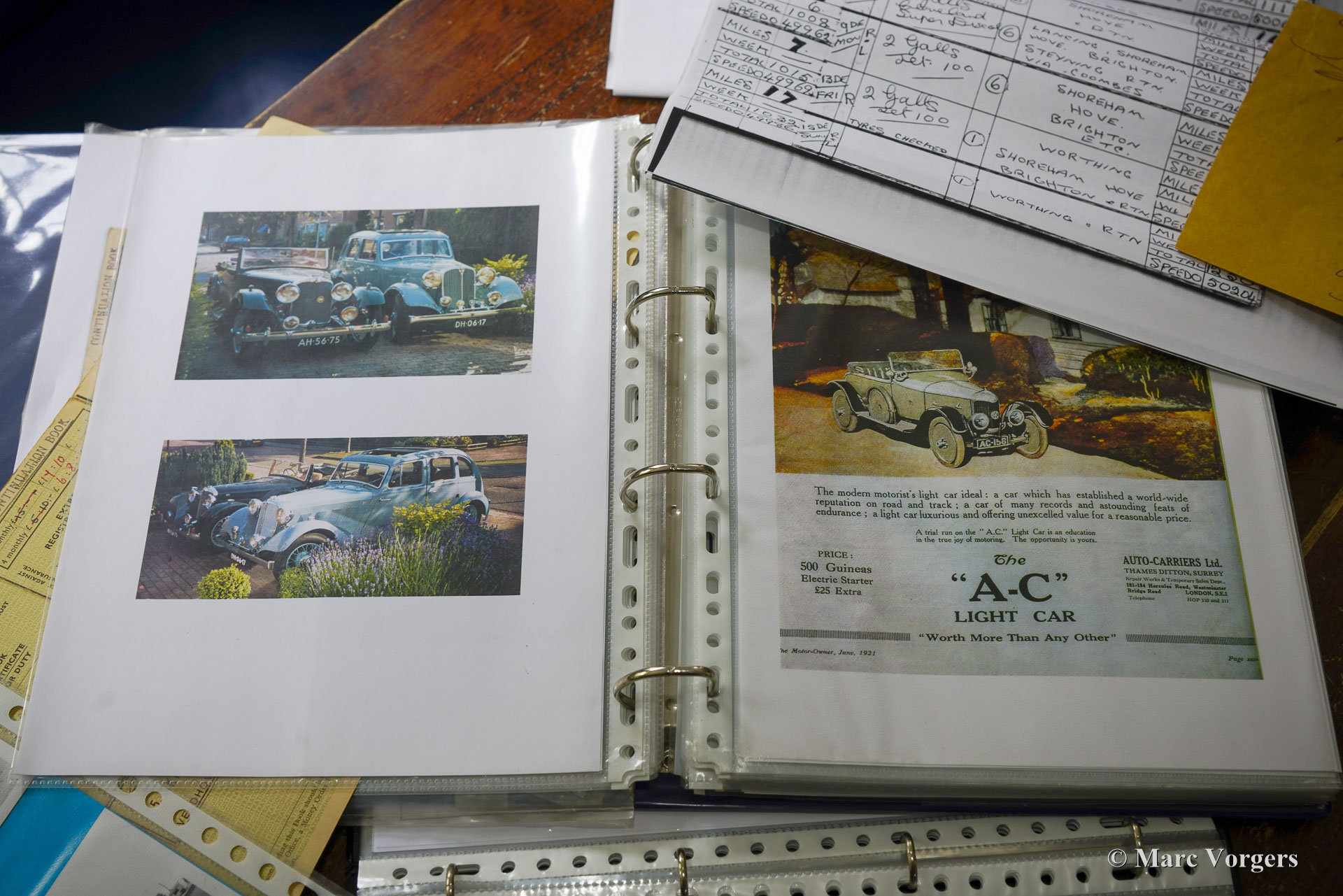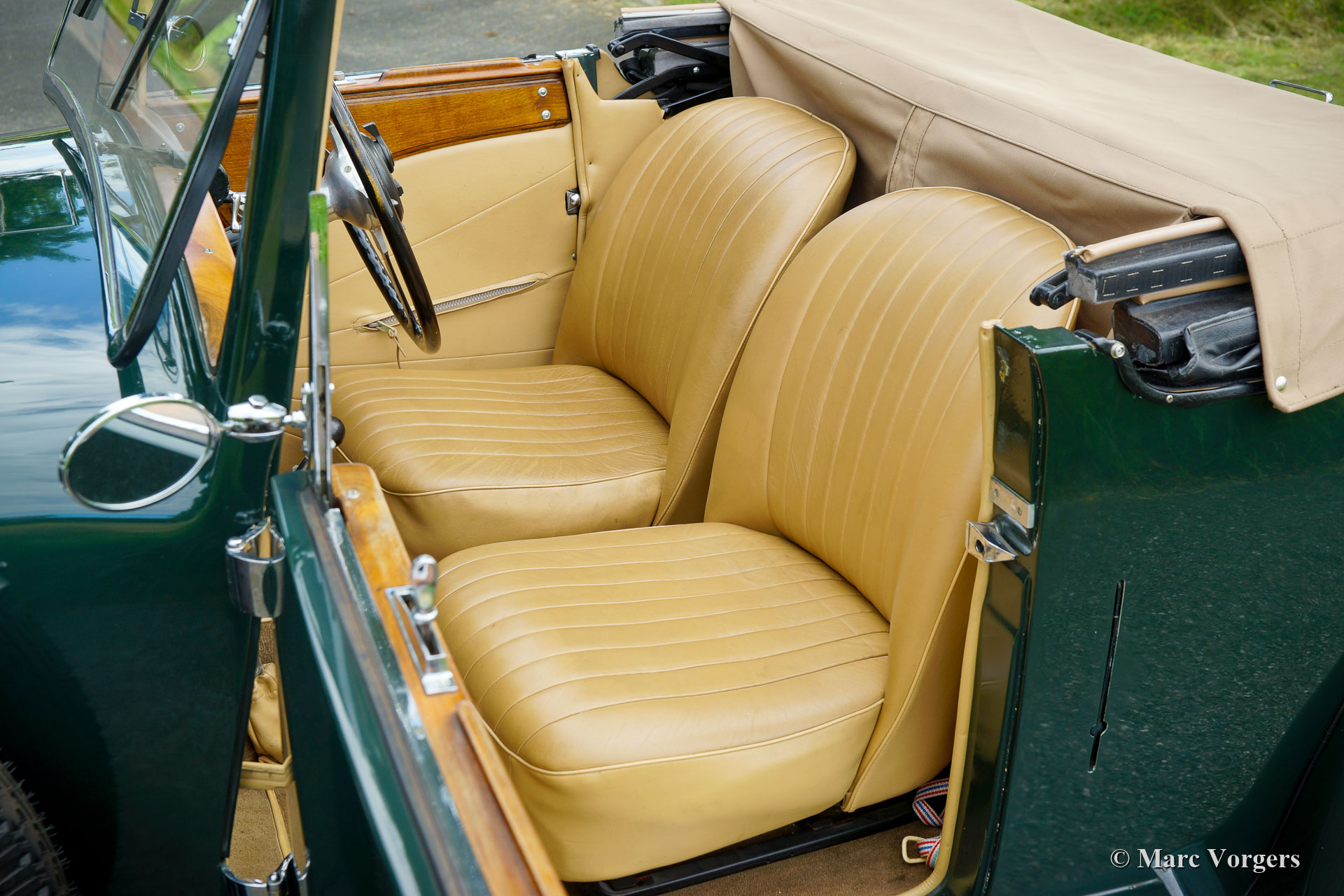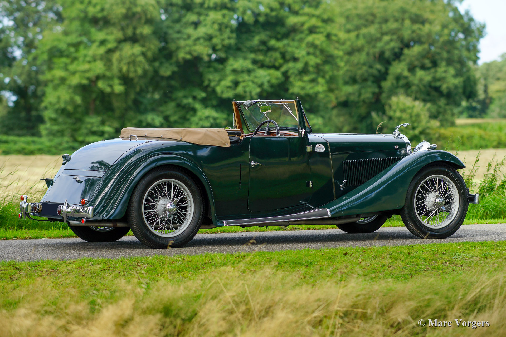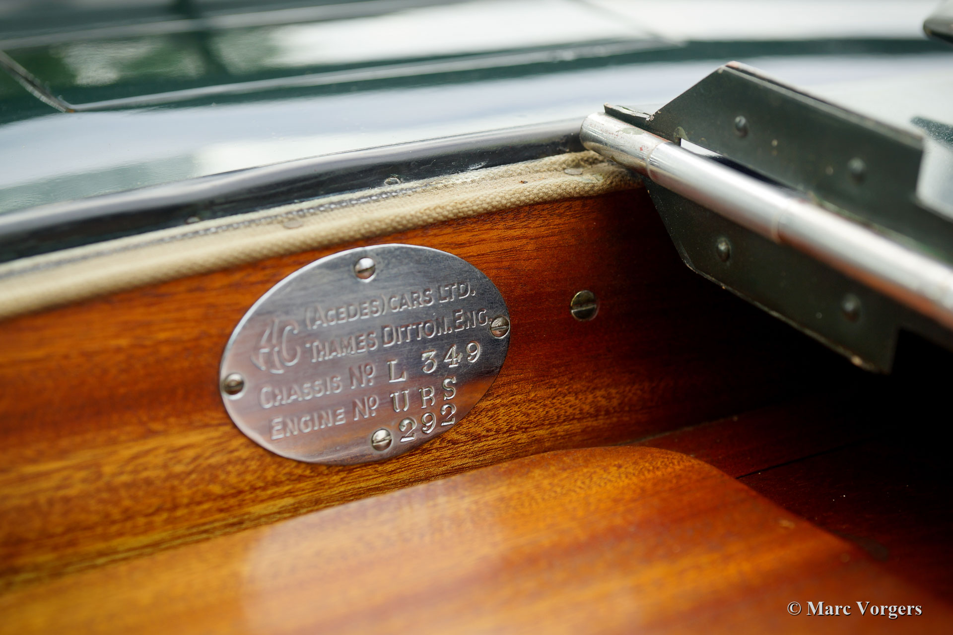 AC (Acédès) 16/66 Drophead Coupé, année 1935. Numéro de châssis L34X, numéro de moteur UBS.29X. Immatriculation d'origine au Royaume-Uni : DPC918. Couleur « British Racing Green » foncé combinée avec un intérieur en cuir beige et un tapis marron clair garni de bords beiges. La voiture est dotée d'un capot en vinyle noir et d'un couvre-caisse en mohair marron clair. Cette rare AC 16/66 DHC fut vendue neuve au Royaume-Uni. L'automobile fut exportée aux Pays-Bas en l'an 2000 où elle avait connu un propriétaire jusqu'en 2019. La voiture nous est connue, et en service dans notre atelier, depuis 2019. Cette AC 16/66 DHC est livrée avec un gros dossier historique de Nouveau. Photos de la voiture à l'état neuf, montrant également le premier propriétaire et l'immatriculation d'origine. Présent est un journal de bord avec les noms de tous les propriétaires précédents et le service et les réparations qui ont été effectuées au fil des ans. Sont également présents des livres originaux d'usine, une brochure et le document Anglais original V5c. Cette magnifique AC 16/66 DHC se conduit et se manie à merveille, et la boîte de vitesses manuelle à 4 vitesses fonctionne parfaitement. Le moteur six cylindres en ligne est la même unité de 1991 cc avec arbre à cames en tête et trois S.U. carburateurs tels qu'équipés dans la voiture de sport AC Ace de 1953. L'AC 16/60 DHC est une voiture pour deux personnes dotées d'un « Dickey Seat » dans le coffre offrant deux sièges « d'urgence » supplémentaires. Cette AC rare est une voiture super originale qui montre tous les détails d'origine. L'ancienne peinture montre des signes d'âge mais est toujours très belle, une patine d'avant-guerre fantastique ! Il s'agit d'un rare AC 16/66 Drophead Coupé en super état d'origine et magnifique ! L'automobile peut être importée et admise dans n'importe quel pays du monde.