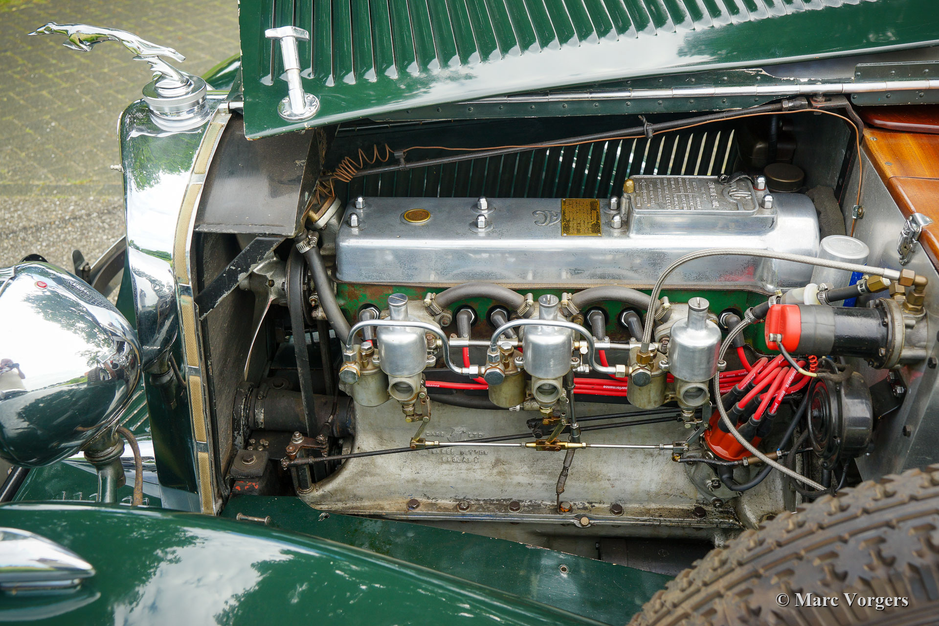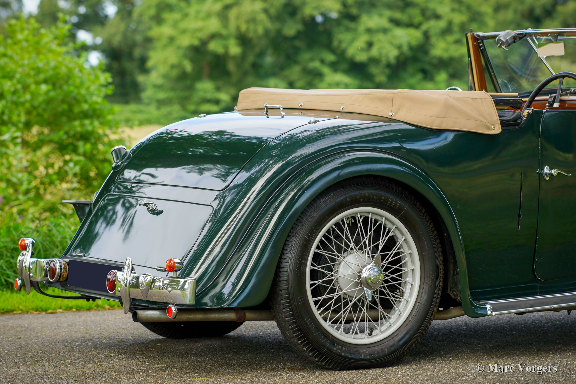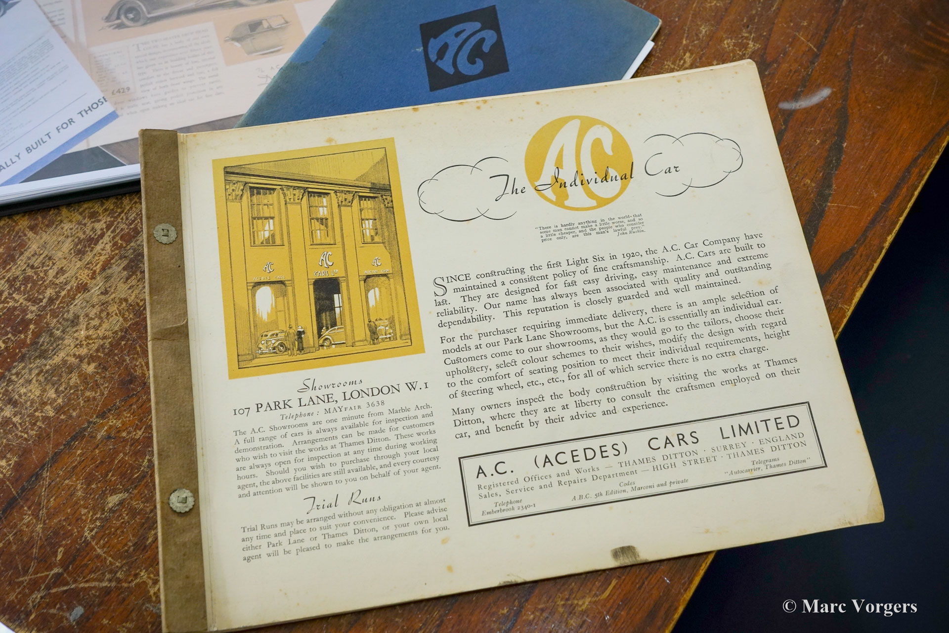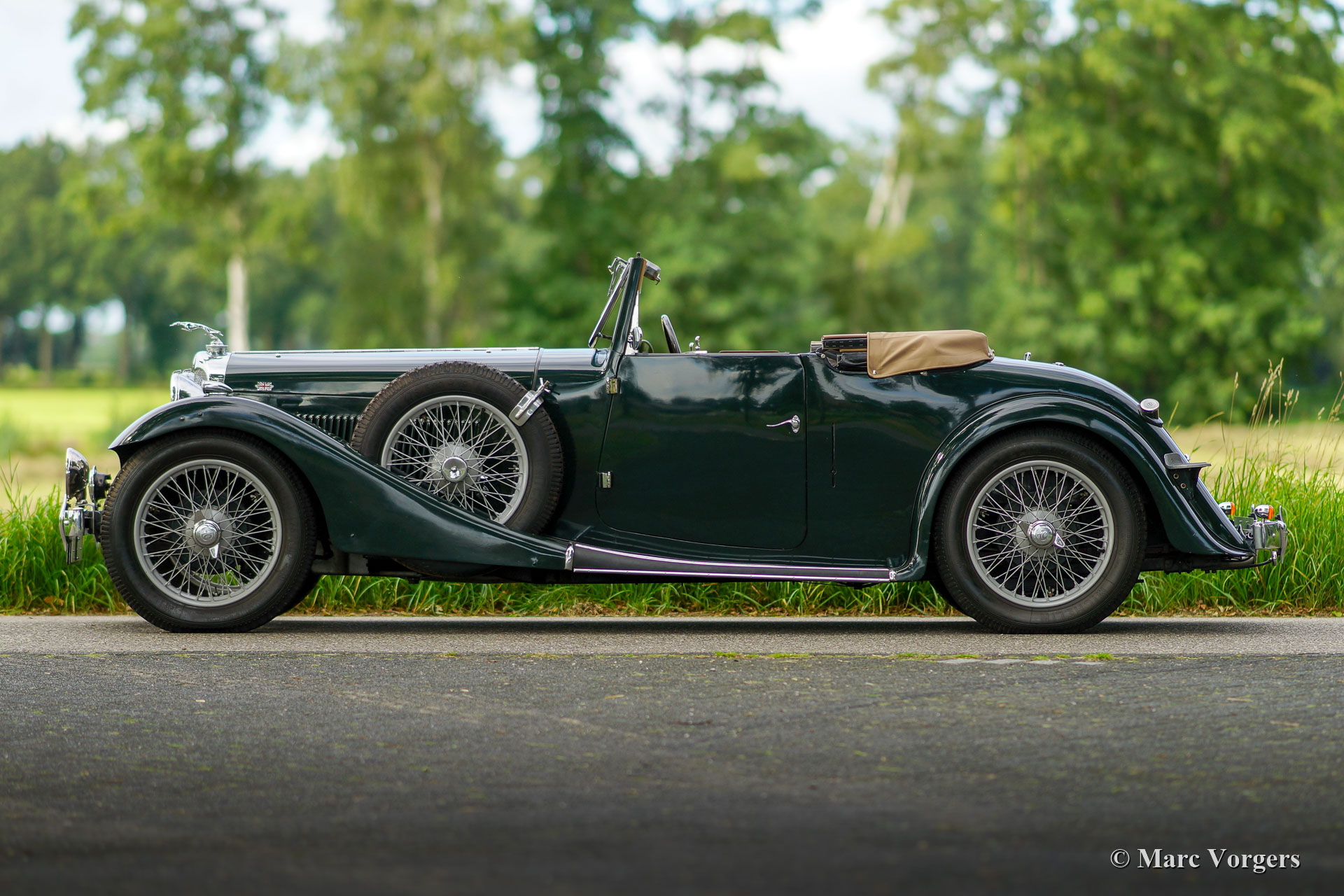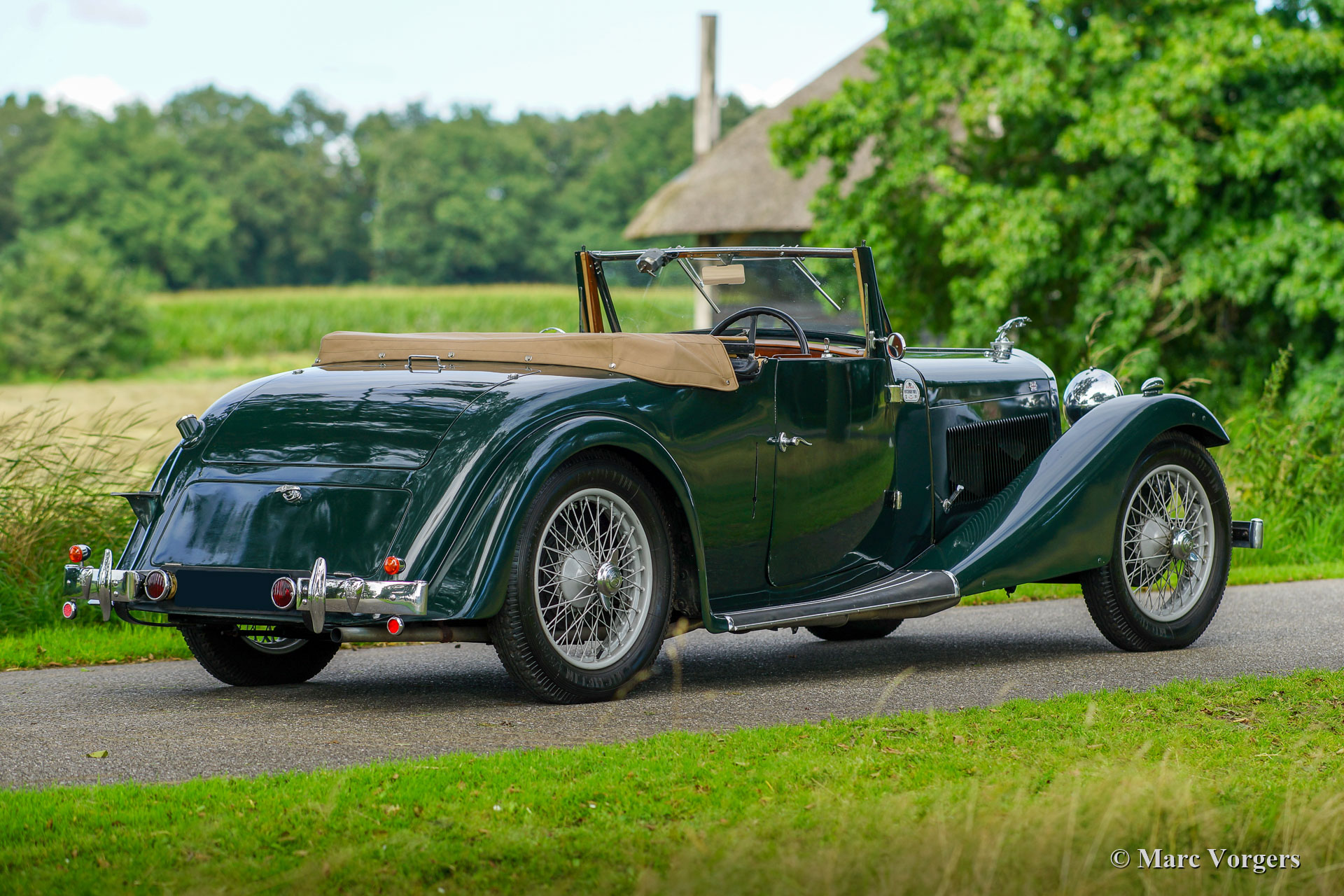 AC (Acédès) 16/66 Drophead Coupé, année 1935. Numéro de châssis L34X, numéro de moteur UBS.29X. Immatriculation d'origine au Royaume-Uni : DPC918. Couleur « British Racing Green » foncé combinée avec un intérieur en cuir beige et un tapis marron clair garni de bords beiges. La voiture est dotée d'un capot en vinyle noir et d'un couvre-caisse en mohair marron clair. Cette rare AC 16/66 DHC fut vendue neuve au Royaume-Uni. L'automobile fut exportée aux Pays-Bas en l'an 2000 où elle avait connu un propriétaire jusqu'en 2019. La voiture nous est connue, et en service dans notre atelier, depuis 2019. Cette AC 16/66 DHC est livrée avec un gros dossier historique de Nouveau. Photos de la voiture à l'état neuf, montrant également le premier propriétaire et l'immatriculation d'origine. Présent est un journal de bord avec les noms de tous les propriétaires précédents et le service et les réparations qui ont été effectuées au fil des ans. Sont également présents des livres originaux d'usine, une brochure et le document Anglais original V5c. Cette magnifique AC 16/66 DHC se conduit et se manie à merveille, et la boîte de vitesses manuelle à 4 vitesses fonctionne parfaitement. Le moteur six cylindres en ligne est la même unité de 1991 cc avec arbre à cames en tête et trois S.U. carburateurs tels qu'équipés dans la voiture de sport AC Ace de 1953. L'AC 16/60 DHC est une voiture pour deux personnes dotées d'un « Dickey Seat » dans le coffre offrant deux sièges « d'urgence » supplémentaires. Cette AC rare est une voiture super originale qui montre tous les détails d'origine. L'ancienne peinture montre des signes d'âge mais est toujours très belle, une patine d'avant-guerre fantastique ! Il s'agit d'un rare AC 16/66 Drophead Coupé en super état d'origine et magnifique ! L'automobile peut être importée et admise dans n'importe quel pays du monde.