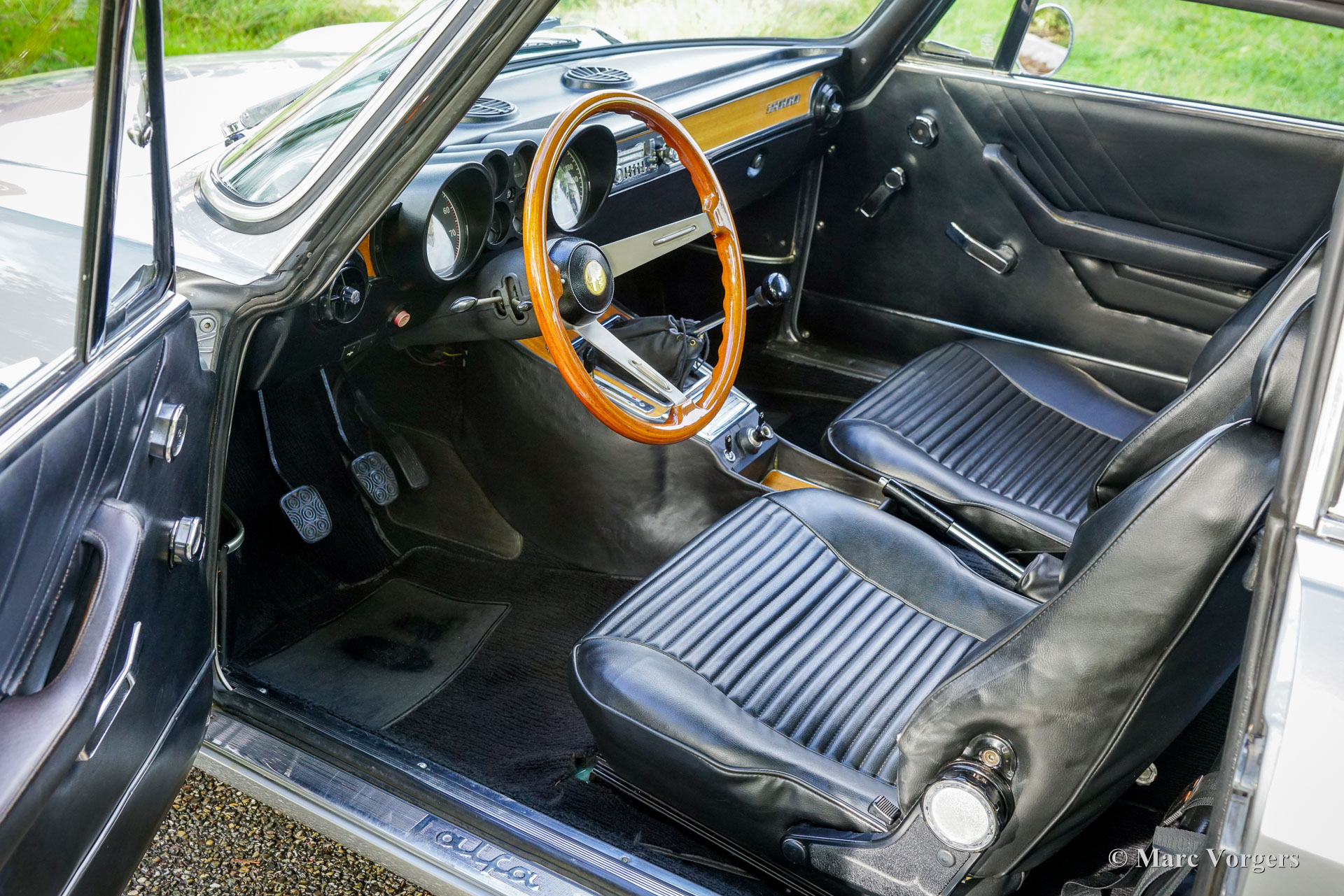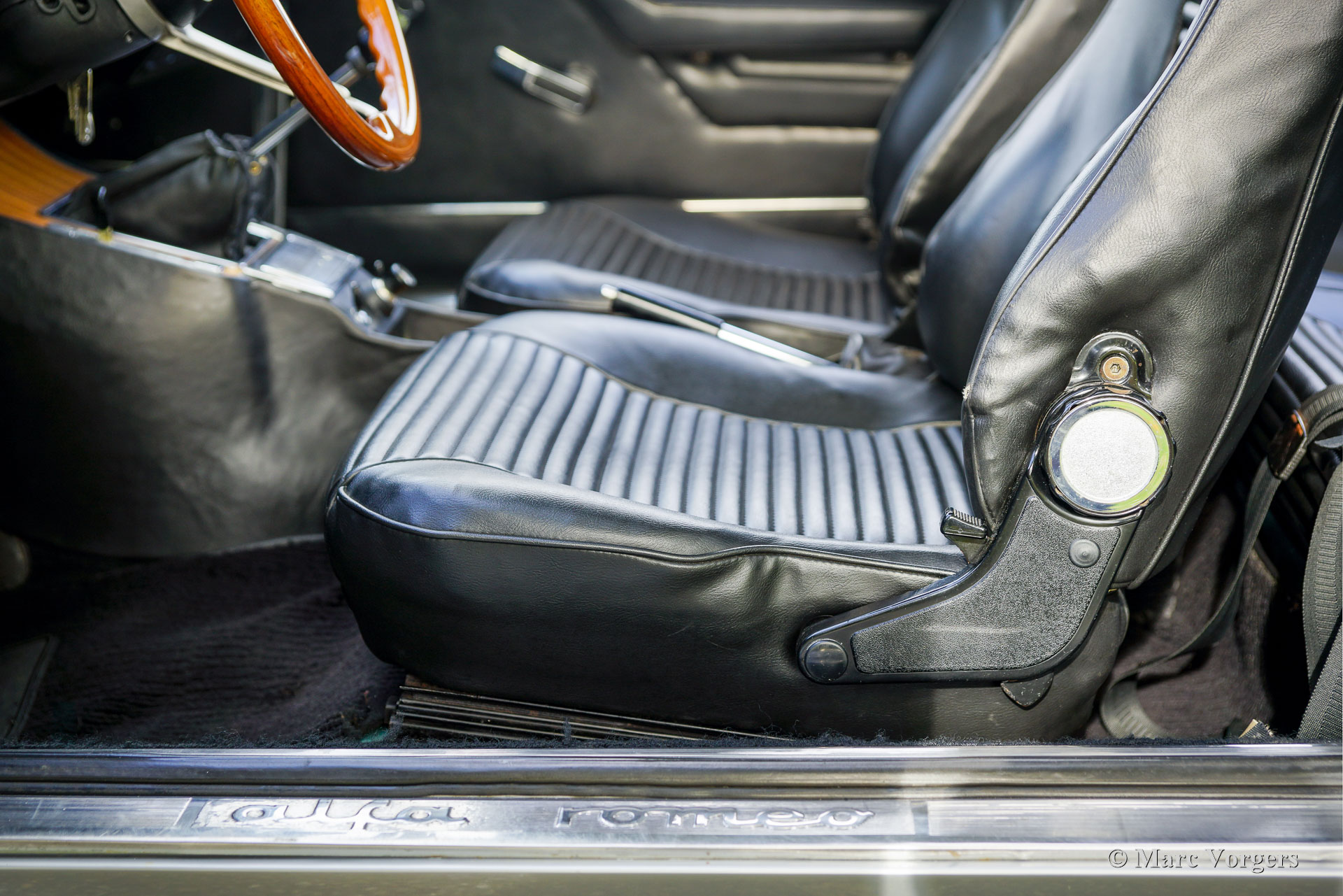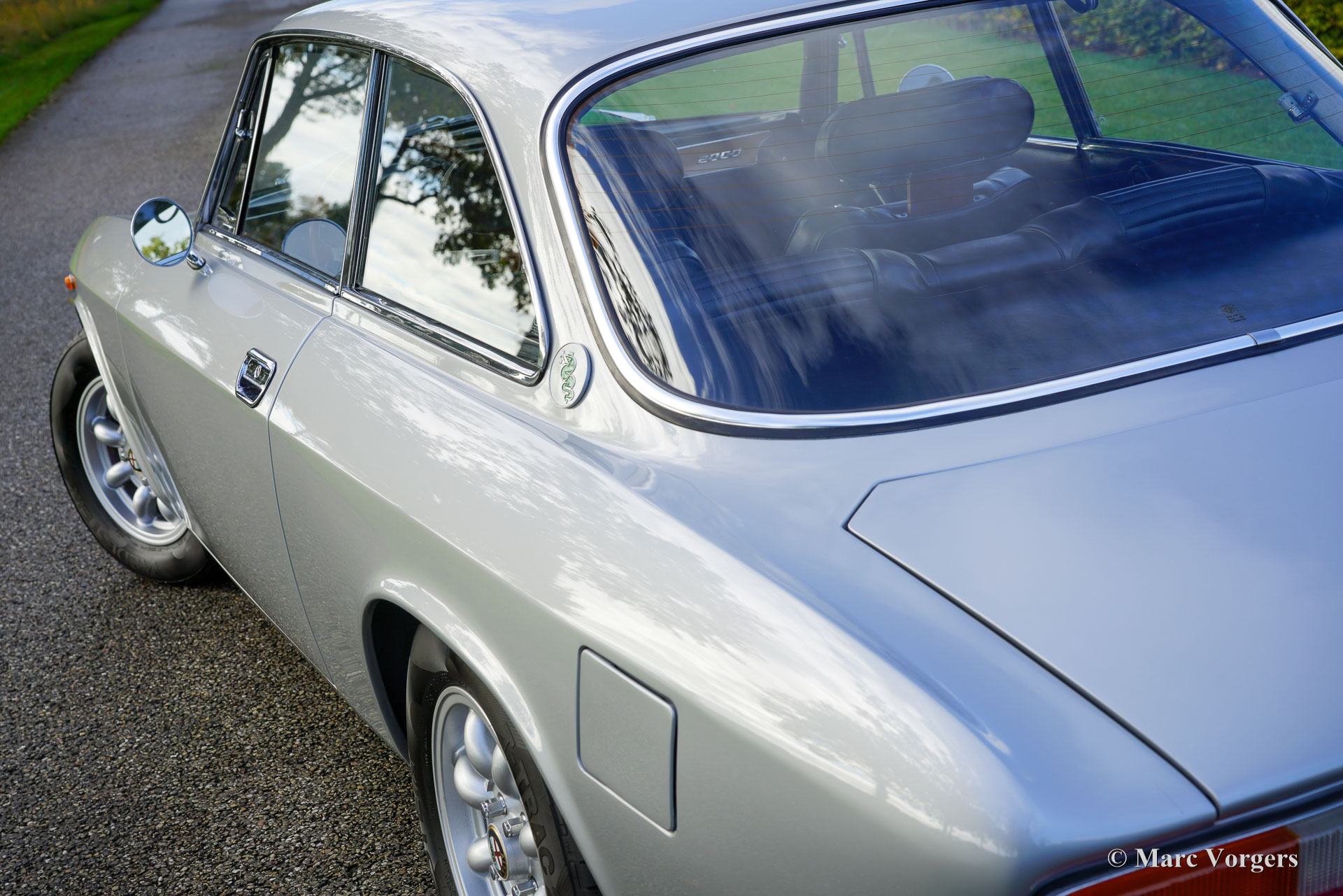 Alfa Romeo Giulia 2000 GTV « Bertone », année 1974. Numéro de châssis AR2439136, numéro de moteur 00512 – S10507. Carrosserie argent métallisé, intérieur en similicuir noir et moquette noire. L'Alfa Romeo Giulia GT (série 105), présentée pour la première fois en 1963, est un coupé aux proportions élégantes qui a contribué à forger l'identité de marque d'Alfa Romeo. Le designer Giorgetto Giugiaro n'avait que 22 ans lorsqu'il a créé ce modèle. La Giulia GT fut l'une de ses premières commandes, mais aussi la plus importante, et celle dont il était le plus fier. Cette magnifique Giulia 2000 GTV a été vendue neuve en Suède. Elle est accompagnée d'un historique complet, d'un manuel d'instructions en anglais, d'un livret de garantie et d'une carte d'entretien d'origine. La Giulia 2000 GTV est le modèle haut de gamme, équipé d'un moteur double arbre à cames de 150 ch et d'un différentiel à glissement limité sur l'essieu arrière. Avec ses freins à disque autour et sa boîte à cinq rapports, la 2000 GTV est un véritable coupé sport, dans la pure tradition des GT italiennes. La carrosserie fut restaurée en Suède et la mécanique est en excellent état. Elle conserve tous les détails d'origine, seule la suspension fut modifiée avec de nouveaux silentblocs et ressorts, et un échappement sport en acier (de série) fut installé. Sous le capot, tout semble d'origine et comme neuf ! L'intérieur est en excellent état ; nous pensons que la sellerie des sièges a été renouvelée lors de la restauration. Le tableau de bord, les compteurs, la console centrale et le ciel de toit sont tous en excellent état d'origine ! La voiture est actuellement équipée de jantes alliage GB « Minilite » de 14 pouces (option disponible sur les Giulia de la série 105 depuis plusieurs décennies) et de pneus Vredestein T-Track 2 de 185/70 14. Un jeu de quatre jantes alliage ATS est également présent, la roue de secours étant un exemplaire en acier d'origine. Rapide et agile, cette Alfa Romeo Giulia GTV 2000 est un excellent exemplaire, décliné dans une superbe combinaison de couleurs et bénéficiant d'équipements qui raviront les passionnés et les conducteurs d'Alfa Romeo sportive !