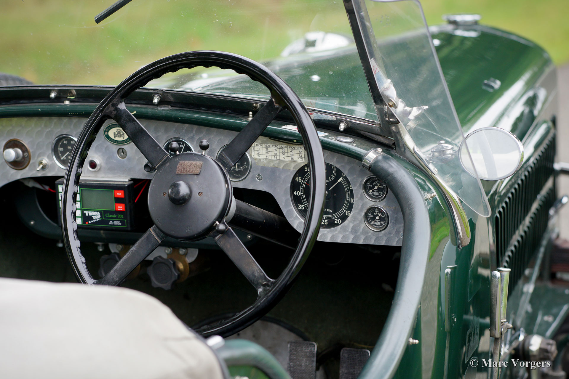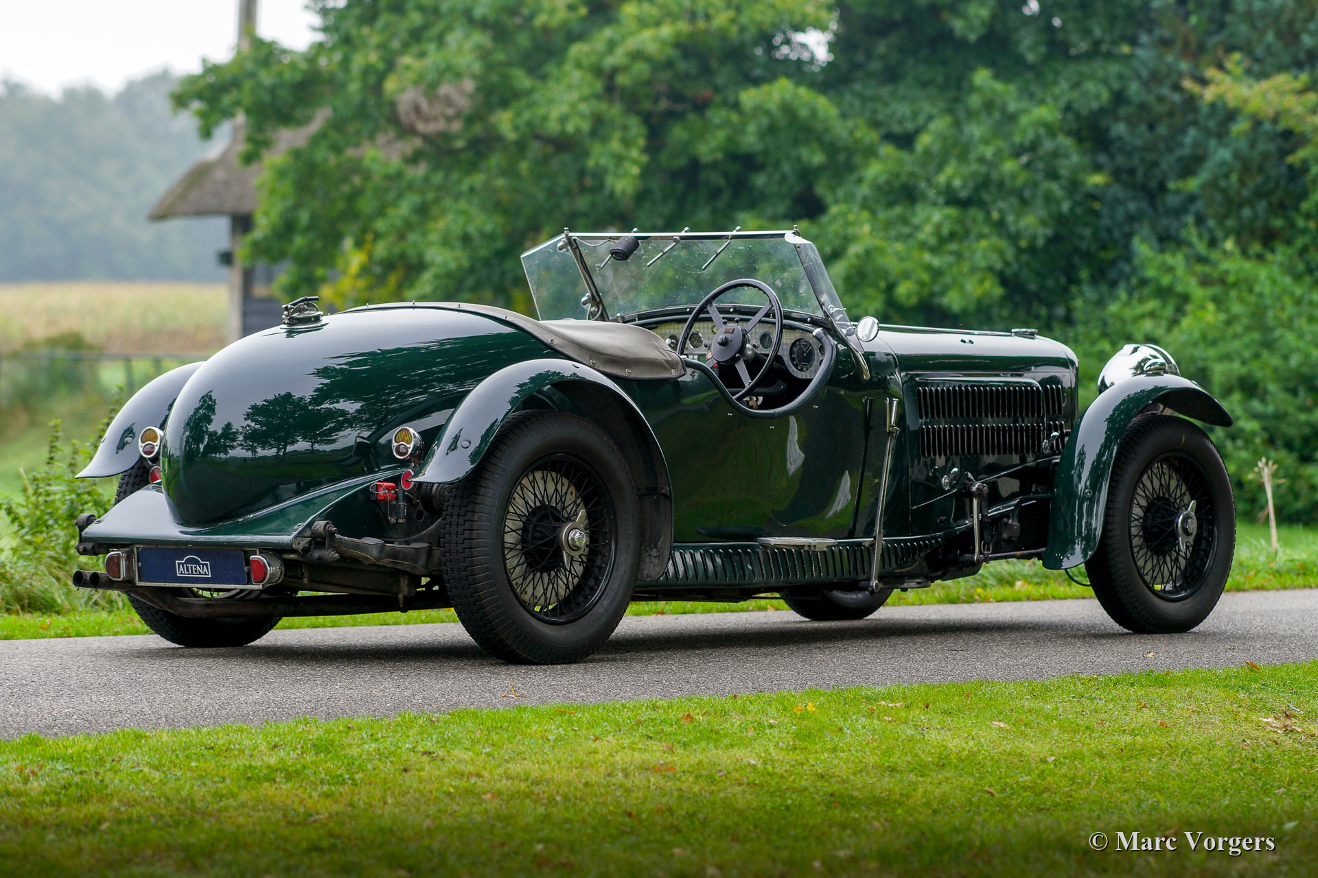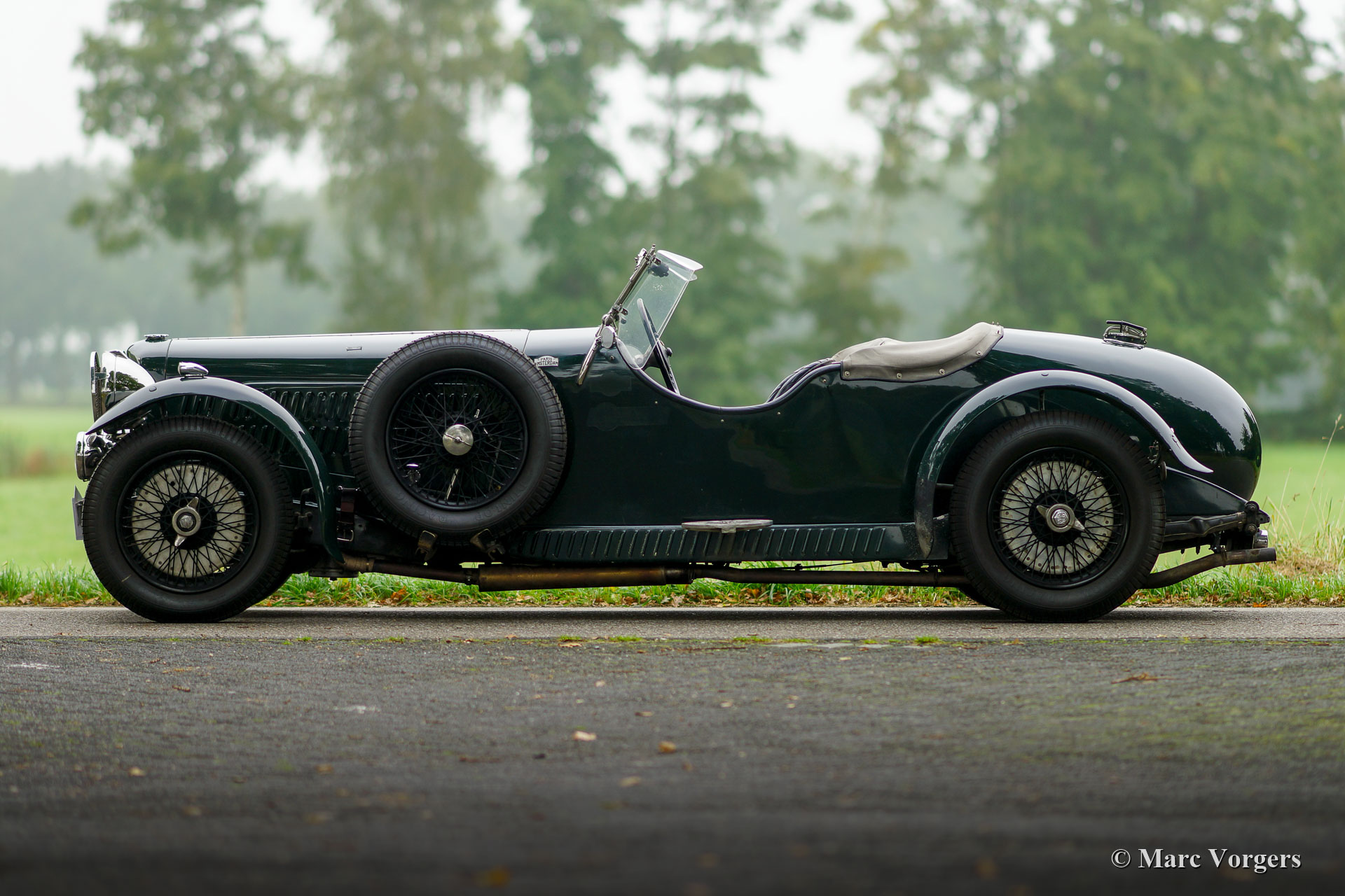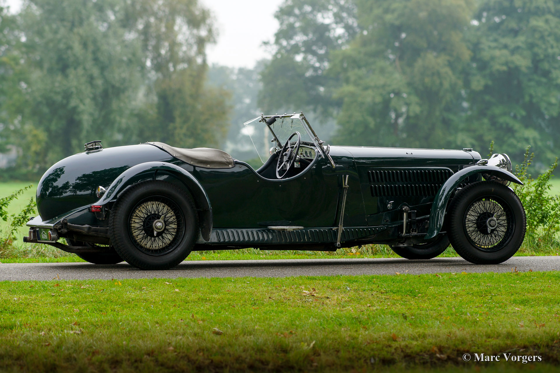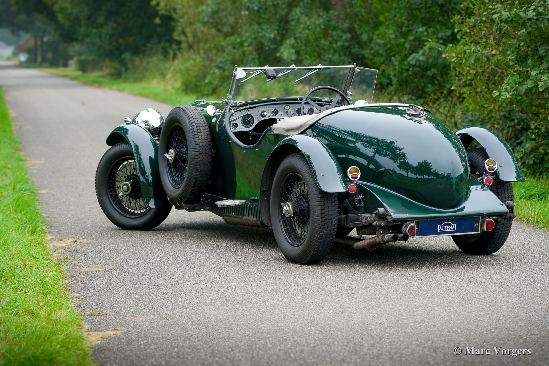 Alvis 4.3 litres Special, année 1939. Couleur extérieure « British Racing Green » foncé, intérieur avec sièges en cuir vert foncé. Capuche noire et couvre-tonneau gris. La 4,3 litres est la voiture de série la plus puissant et la plus rare jamais construite par Alvis. Cette magnifique spéciale Alvis 4,3 litres a reçu il y a plusieurs décennies une carrosserie biplace spéciale de style course Brooklands. Cette Alvis a été vendue neuve au Royaume-Uni, et elle fut exportée aux Pays-Bas en 1999. L'ancienne immatriculation britannique (BRV 55) est toujours présente. Aux Pays-Bas, cette impressionnante automobile d'avant-guerre n'a connu qu'un seul propriétaire. Le propriétaire a participé à de nombreux événements historiques au cours des 22 dernières années, cette Alvis est une automobile renommée dans les cercles néerlandais d'Alvis. Cette Alvis montre une magnifique patine vintage, et la voiture est en bon état et très fiable. La voiture est équipée de la célèbre boîte de vitesses Alvis entièrement synchronisée à 4 vitesses, du système d'allumage d'origine, de deux pompes à essence, de freins hydrauliques, d'un ventilateur de refroidissement électrique pour un refroidissement supplémentaire et de roues à rayons de 19 pouces chaussées de pneus Dunlop Racing 6.50 x 19. Cette Alvis 4.3 litres spéciale de 1939 est une voiture pour le vrai passionné de voitures de sport anciennes qui sait ce qu'une machine de ce calibre peut apporter si elle est traitée, chérie et pilote d'une main habile.