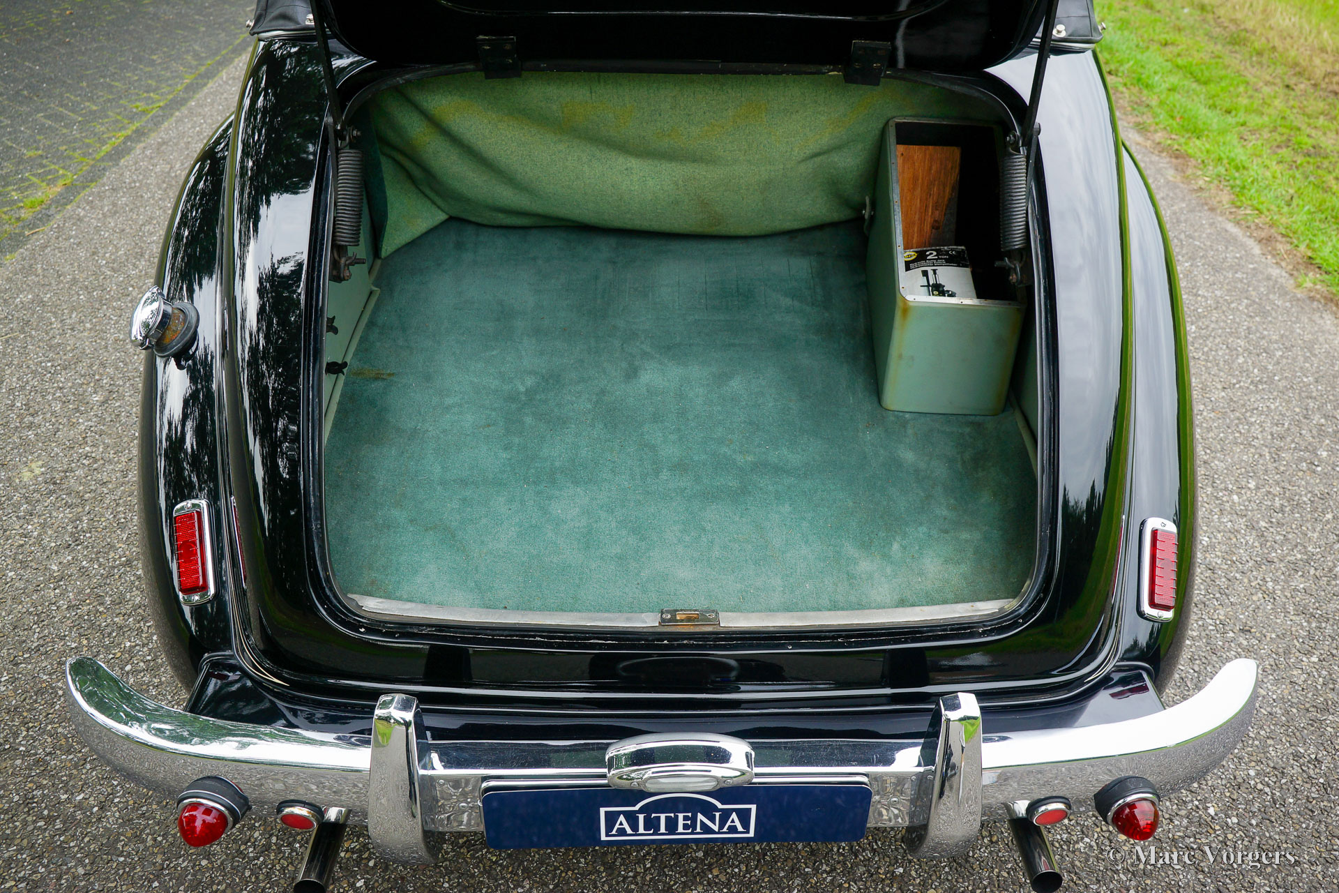 Alvis TC21 100 cabriolet, année 1955. Couleur bicolore noir sur gris associée à un intérieur en cuir vert clair et moquette assortie. Capot trois positions en vinyle noir avec garniture de toit en feutre gris. Ce ravissant cabriolet Alvis TC21 100 fut importé du Royaume-Uni aux Pays-Bas en 2007. Au Royaume-Uni, l'automobile était immatriculée sous le numéro de licence KNR999. Cette belle automobile a reçu beaucoup d'attention au fil des années, cette Alvis est dans un excellent état ! La voiture a fait partie d'une collection de voitures pendant 15 ans, le propriétaire a conduit la voiture régulièrement et elle a été entretenue méticuleusement. L'Alvis montre des détails originaux fantastiques. La voiture est équipée de roues à rayons chromées, d'une radio Blaupunkt classique avec façade chromée (pas de FM/MF), de bouches d'aération supplémentaires à l'avant du capot et de phares antibrouillard Lucas SLR / SFT à l'avant. Ce cabriolet Alvis TC21 100 est un magnifique exemplaire en excellent état intérieur comme extérieur !