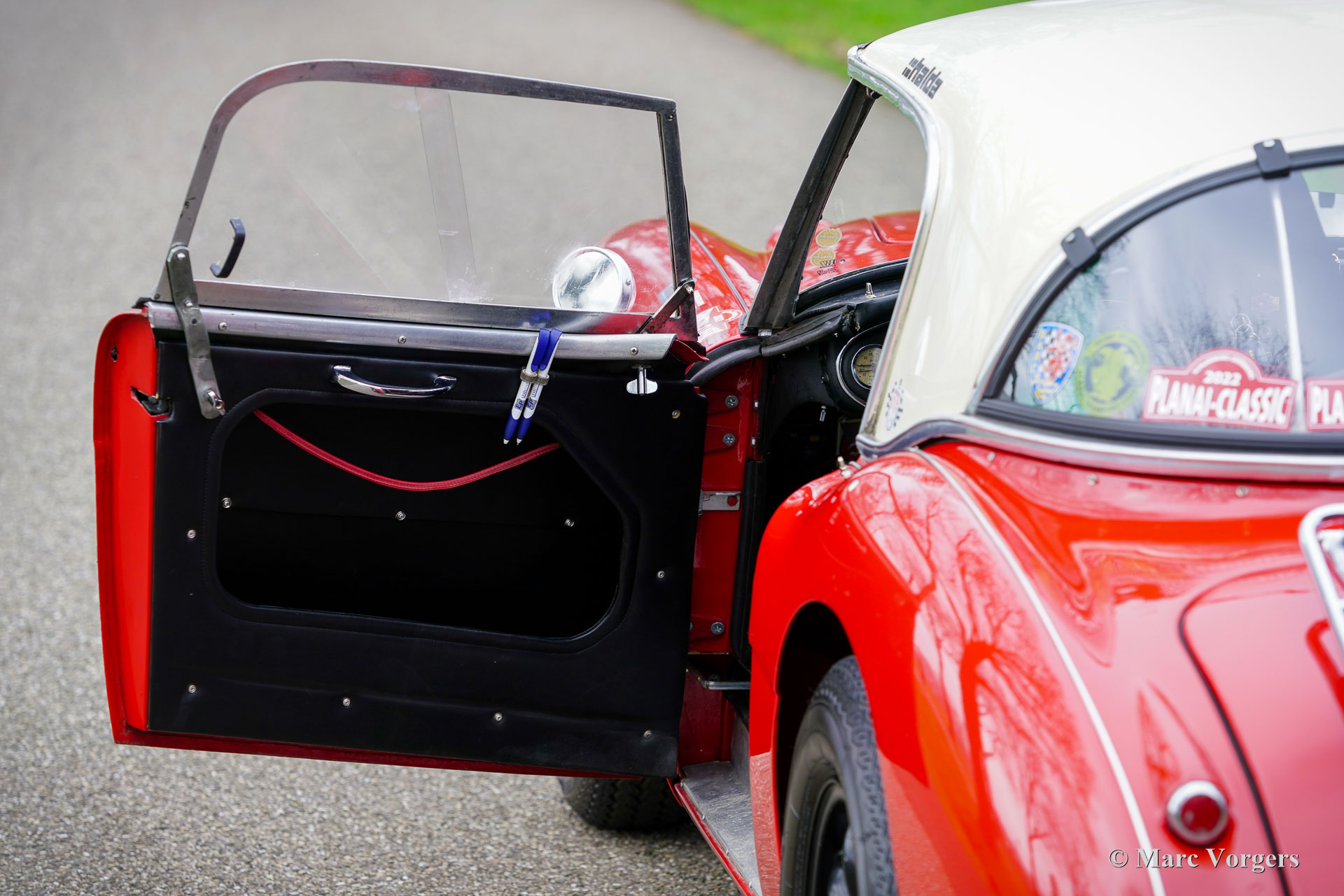 The former Healey models were more Spartan and featured fully detachable soft tops with separate side screens which could be stowed away in the booth.