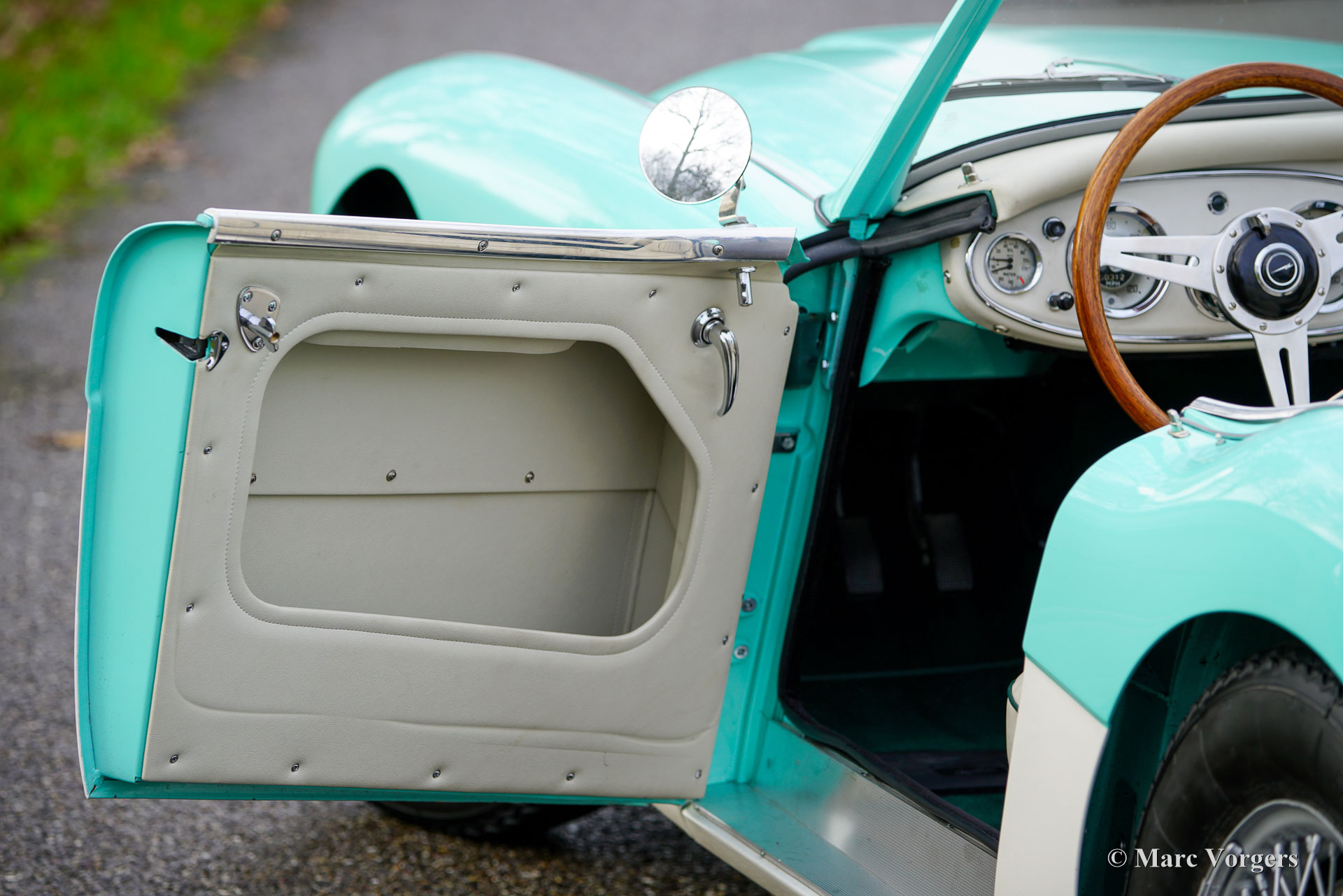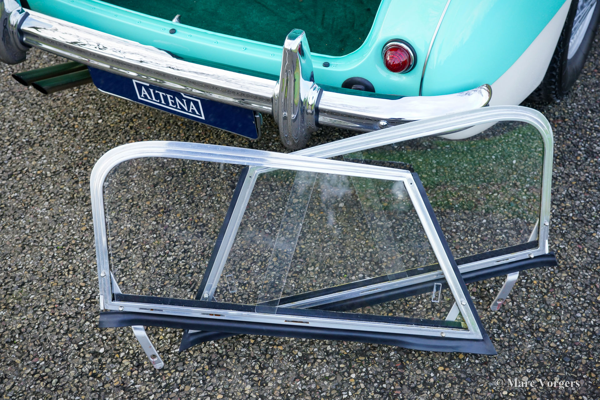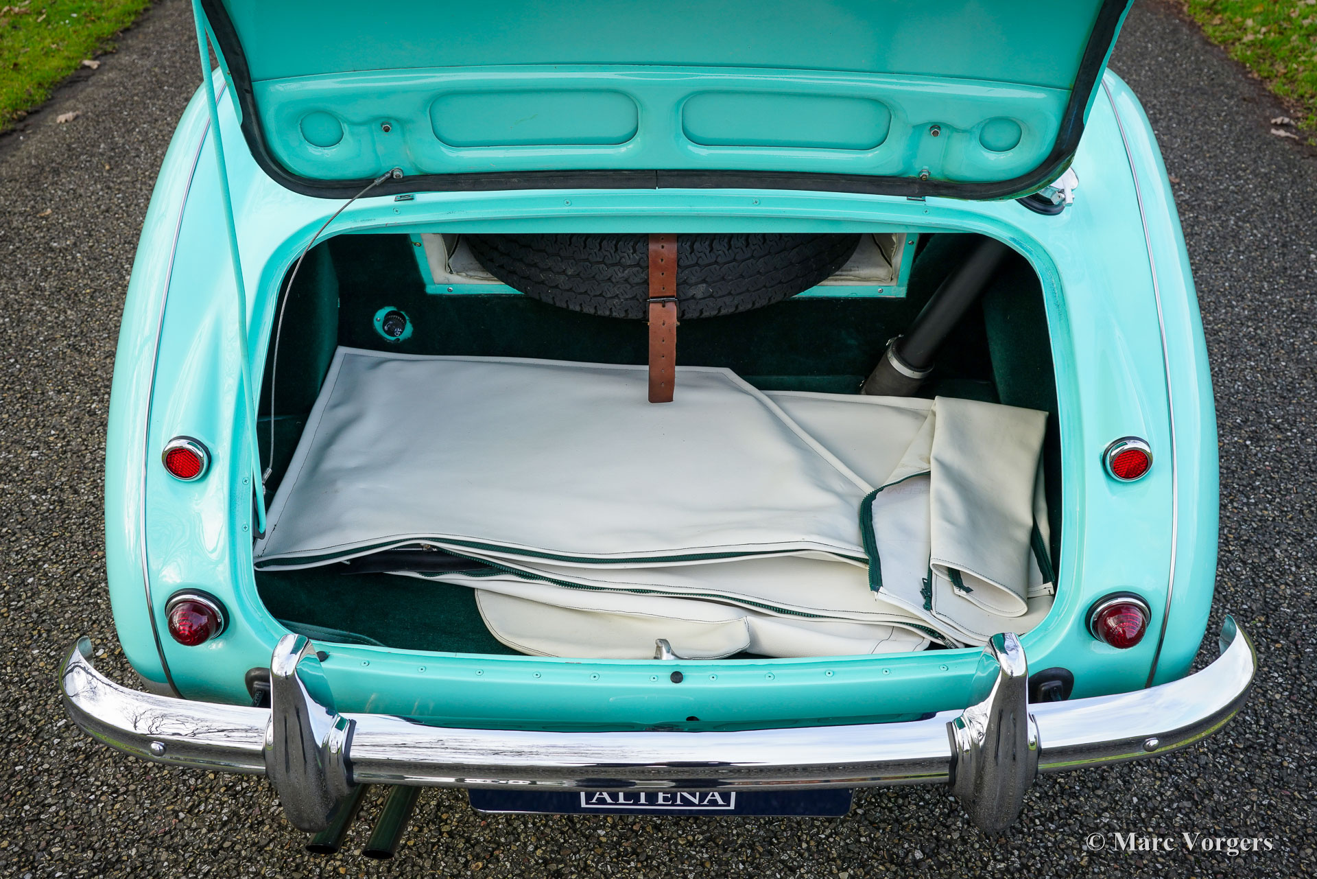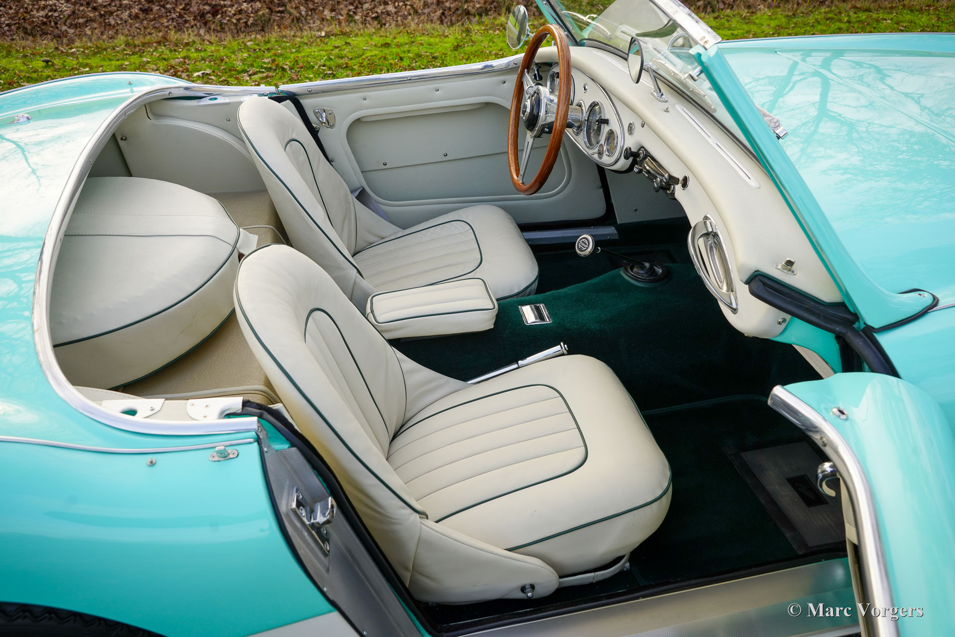 The former Healey models were more Spartan and featured fully detachable soft tops with separate side screens which could be stowed away in the booth.