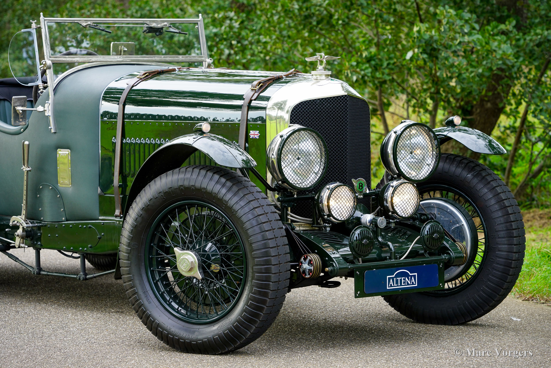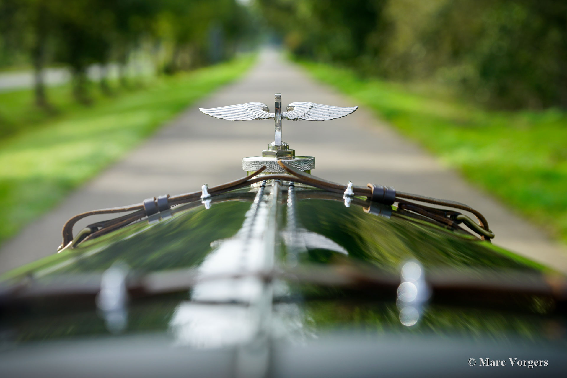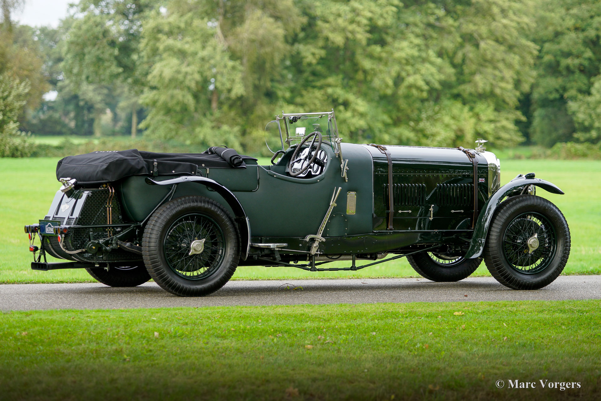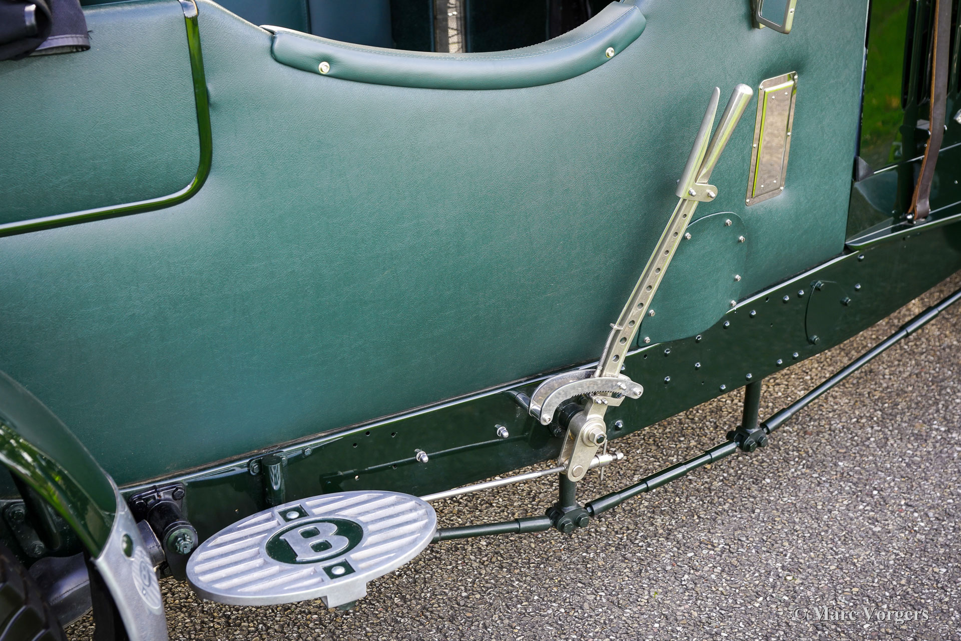 The Bentley 3 Litre was W.O. Bentley’s first design. The car was presented in 1919 but the first cars were sold in 1921. The four cylinder cars of rugged construction where in a class of their own for they combined the size and comfort of the big tourers and saloons with the road holding, and speed of the smaller sports- and racing cars. The Bentley was a true owner-driver car for the sporting motorist and connoisseur. The Bentley car could be had in three different types which were designated with three different radiator badges*. Red badge: short chassis speed model, Blue badge: the early short and then long chassis type for bespoke bodywork, Green badge: very rare and used for about eighteen 100 mph. These Green badge car won at Le Mans in 1924 and 1927 (Old Number Seven.) The 3-Litre was built from 1919 until 1929.