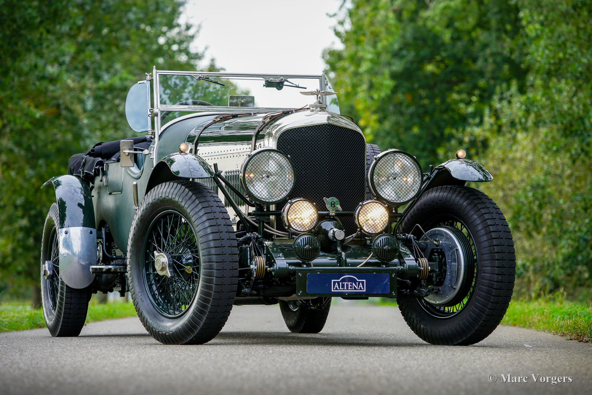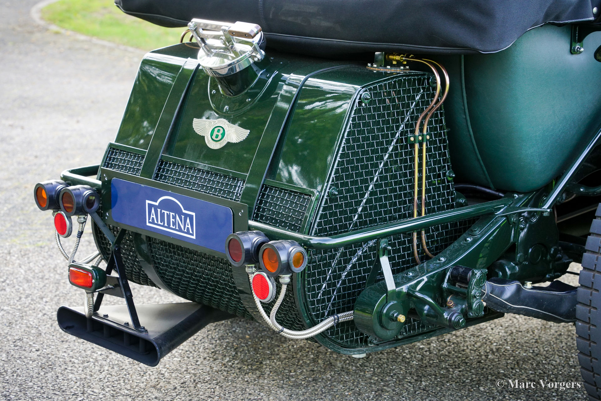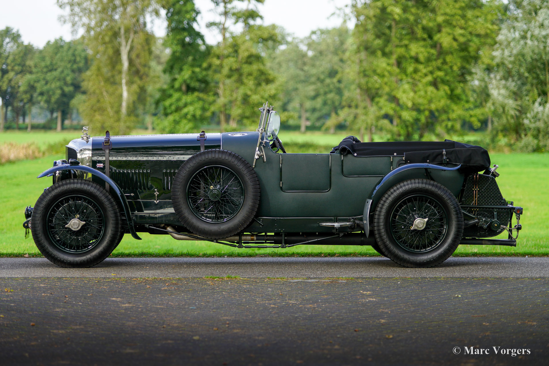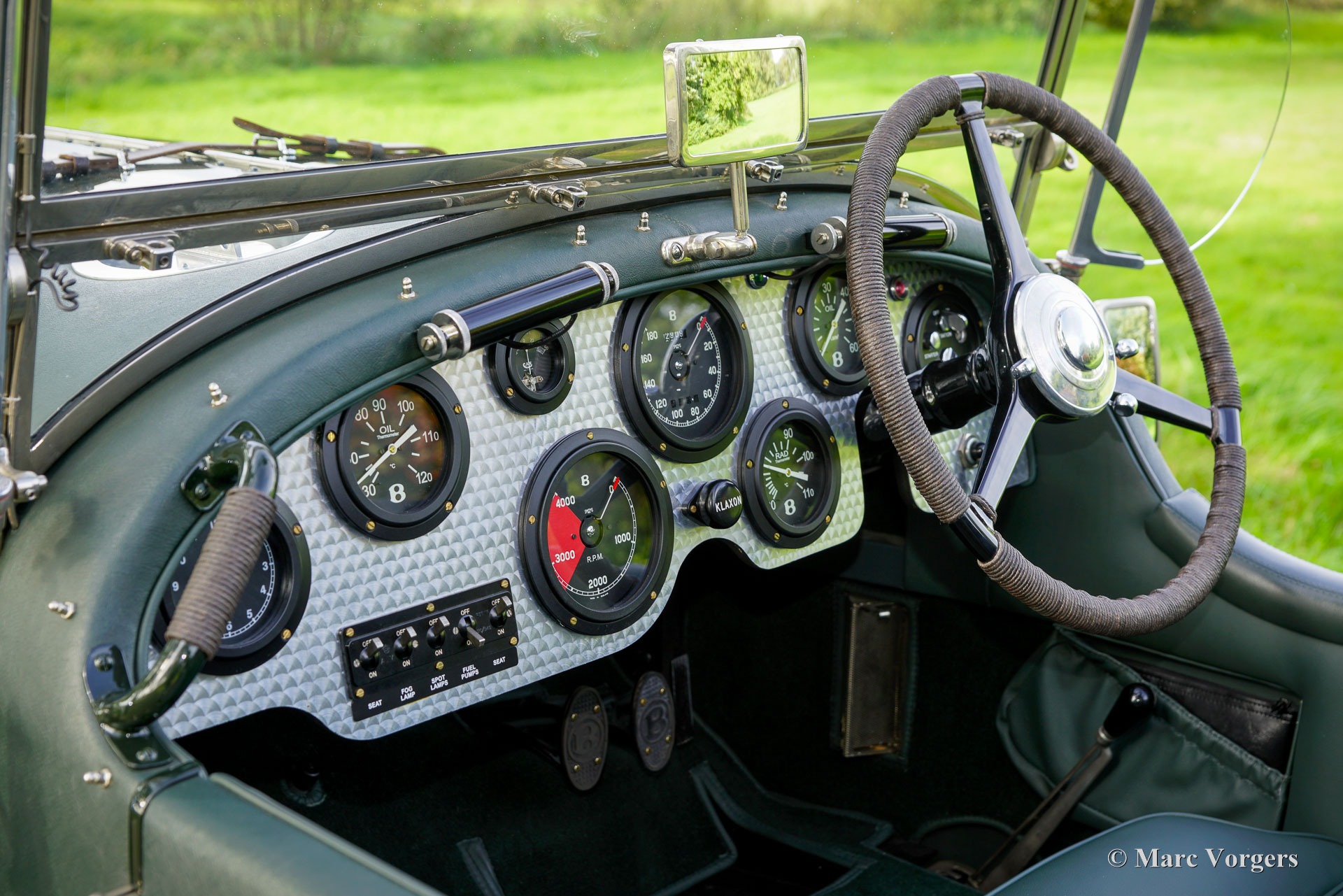 The Bentley 3 Litre was W.O. Bentley’s first design. The car was presented in 1919 but the first cars were sold in 1921. The four cylinder cars of rugged construction where in a class of their own for they combined the size and comfort of the big tourers and saloons with the road holding, and speed of the smaller sports- and racing cars. The Bentley was a true owner-driver car for the sporting motorist and connoisseur. The Bentley car could be had in three different types which were designated with three different radiator badges*. Red badge: short chassis speed model, Blue badge: the early short and then long chassis type for bespoke bodywork, Green badge: very rare and used for about eighteen 100 mph. These Green badge car won at Le Mans in 1924 and 1927 (Old Number Seven.) The 3-Litre was built from 1919 until 1929.