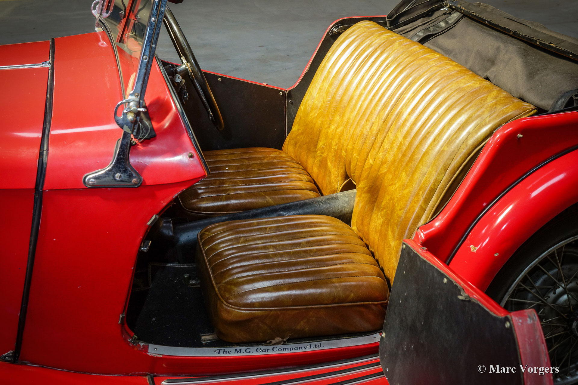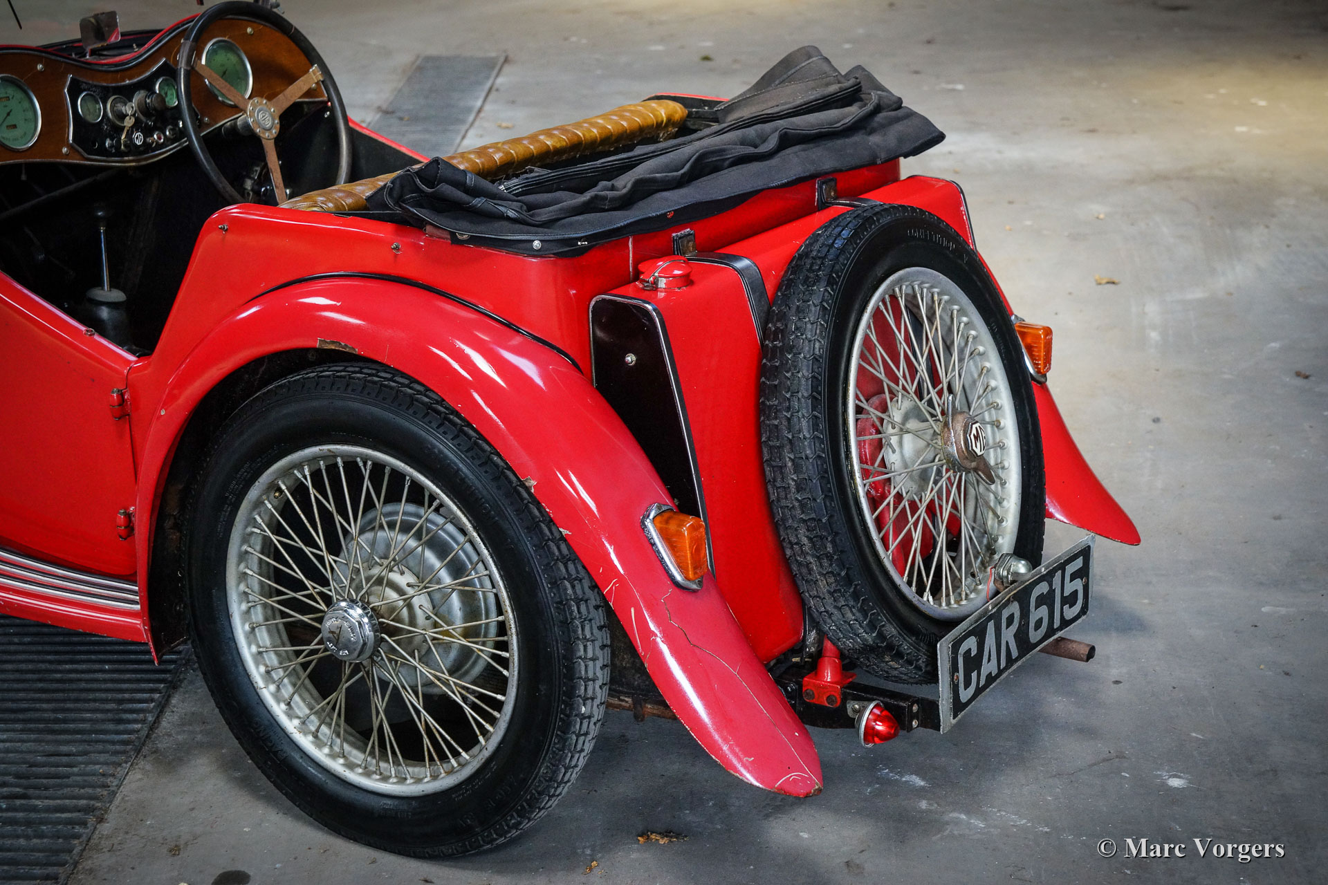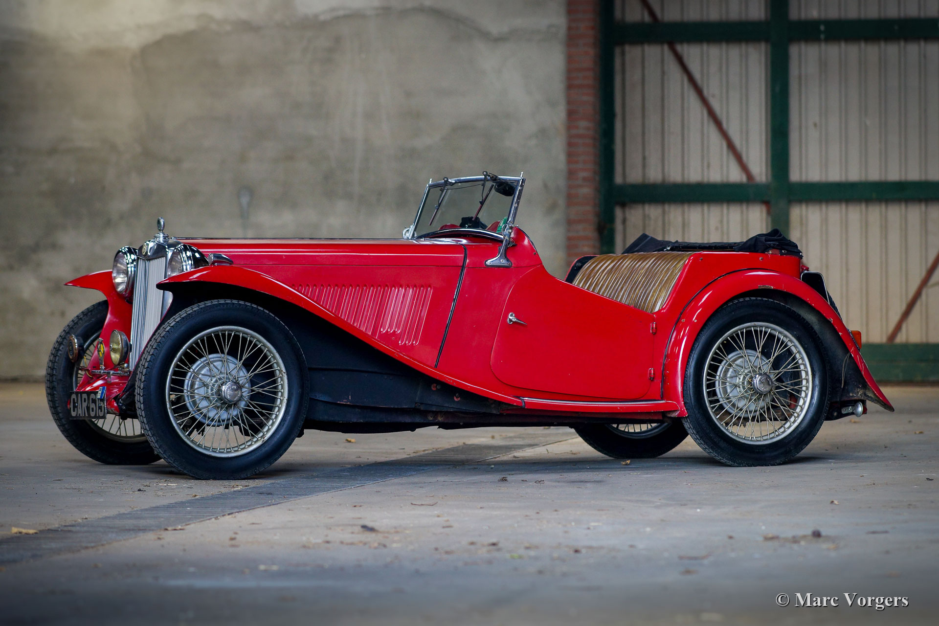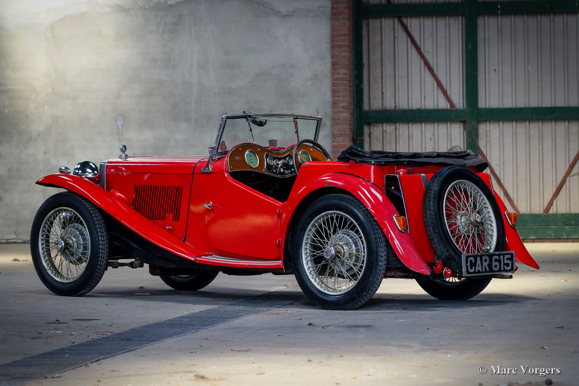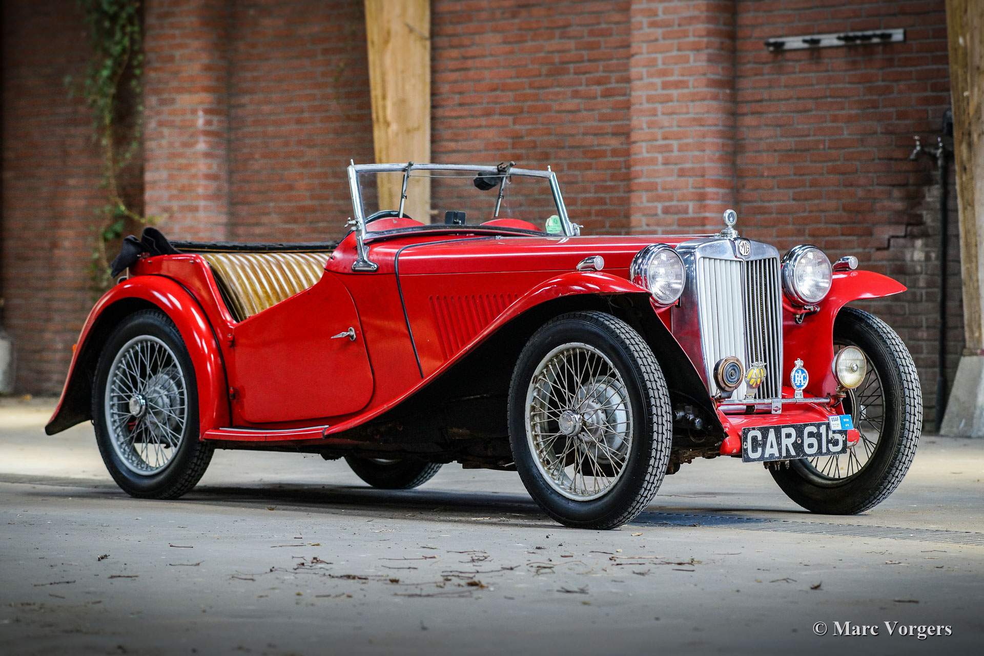 MG TA, année 1936. Couleur rouge combinée avec un intérieur en cuir marron et un capot noir. Ce merveilleux « survivant » de MG TA fut récemment acheté au propriétaire de 94 ans au Texas. La voiture fut amenée du Royaume-Uni aux États-Unis par un pilote de l’armée de l’air après la Seconde Guerre mondiale, et l’immatriculation britannique originale unique « CAR615 » est toujours présente. Cette MG TA a passé toute sa vie au Texas et a toujours été garée à l'abri du soleil. La MG n’a jamais été restaurée et elle est dans un merveilleux état de « survivant »! Le moteur fonctionne à merveille avec une bonne pression d'huile, et la voiture roule, freine et embraye bien compte tenu de son âge de 85 ans. Tous les détails d'origine sont présents à l'exception de la garniture de porte d'origine. En outre, des feux arrière supplémentaires furent ajoutés aux garde-boues arrière après la Seconde Guerre mondiale. Cette MG TA montre des signes évidents d'âge et d'utilisation, la carrosserie, le châssis et la mécanique sont en bon état, tout comme le cadre de carrosserie en bois. Récemment, de nouveaux pneus furent montés et la voiture fut immatriculée aux Pays-Bas. Ce « survivant » de MG TA est livré avec les plaques d’immatriculation Texas, la capote noire d’origine, de nouvelles fenêtres latérales, des livres originaux et des pièces de rechange. Cette MG TA avec une histoire tellement soutenue (sans rupture avec le passé par restauration) est une magnifique trouvaille pour les passionnés !