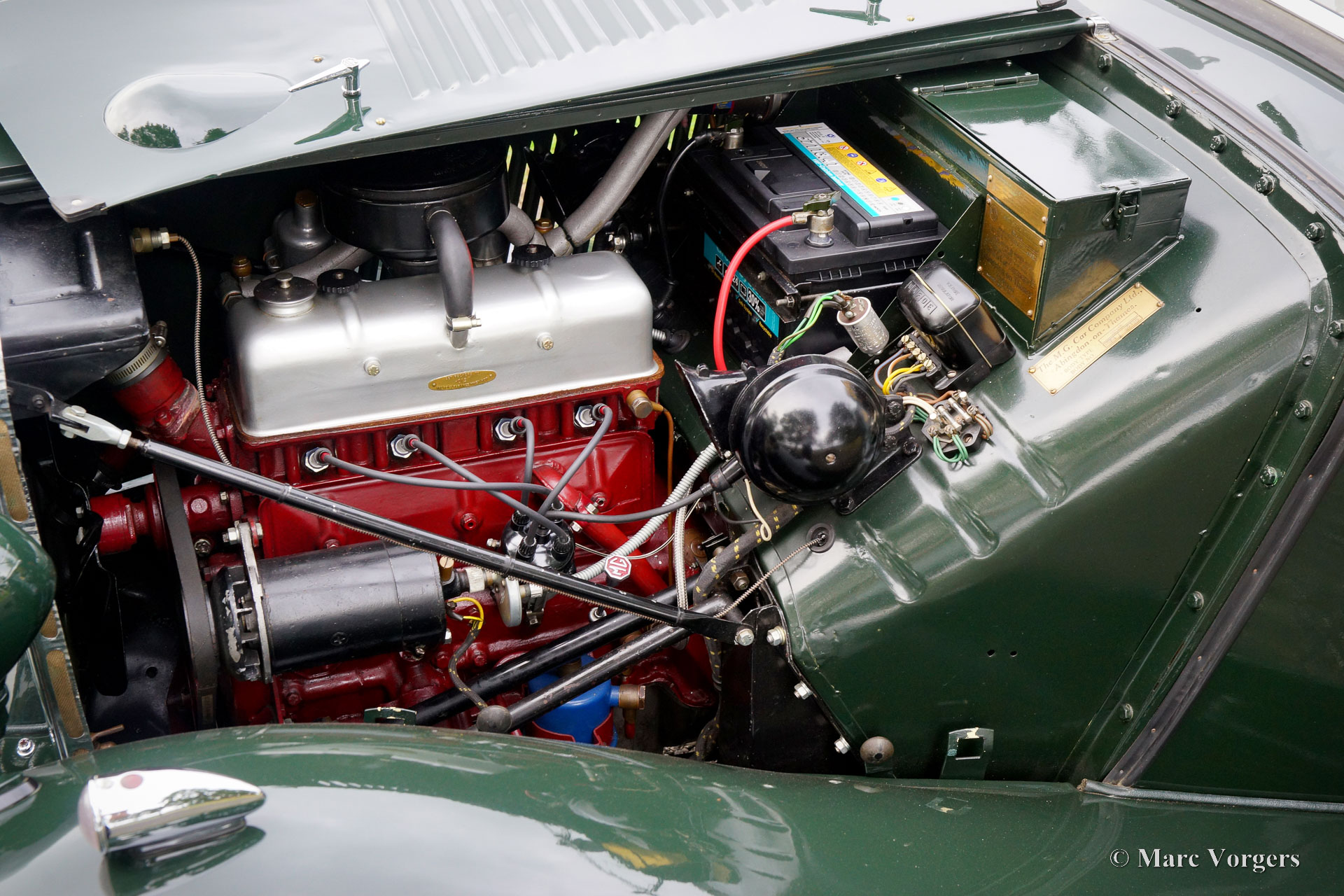 The MG TD was the successor of the MG TC, the British sports car that stole the hearts of the American soldiers returning to their country. Like the MG TC, America was the most important market for the TD. Chassis and body of the TD were largely similar to the TC. But the TD had a rack and pinion steering-gear, coil springs (instead of the leaf springs) and an independent wheel suspension in the front. The wings were different in form, as the large 19-inch wire wheels in the TD gave way to 15-inch wheels. A Mk II version was introduced in 1950, and was built simultaneously with the Mk I. The Mk II had a more powerful engine and a "power bulge" on the engine valve on the right. The MG TD was in production until 1953 and was replaced by the MG TF.