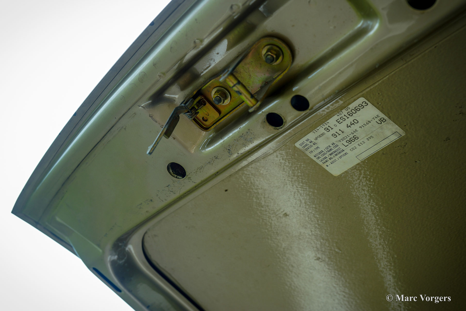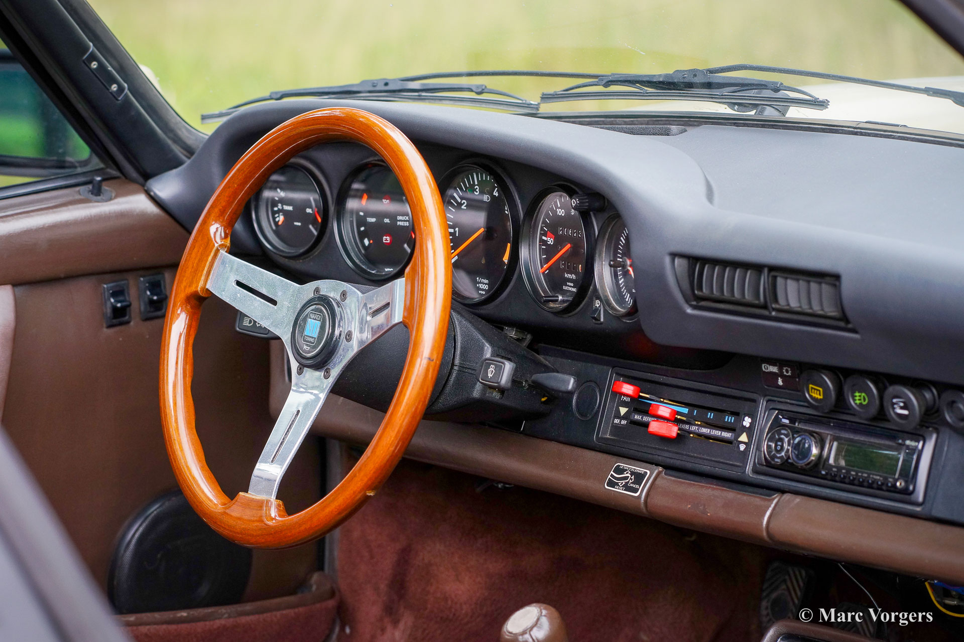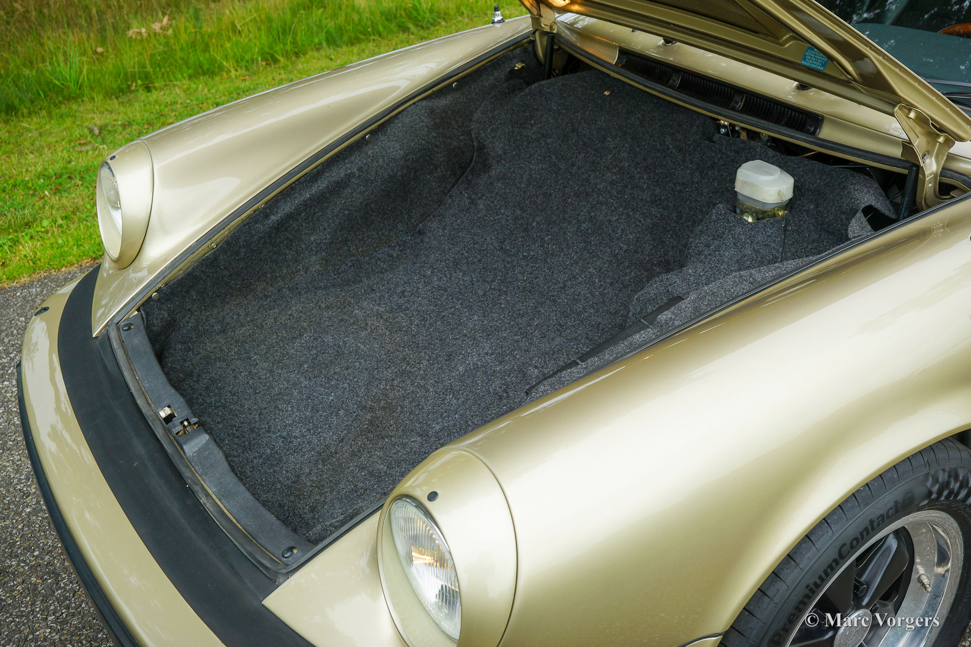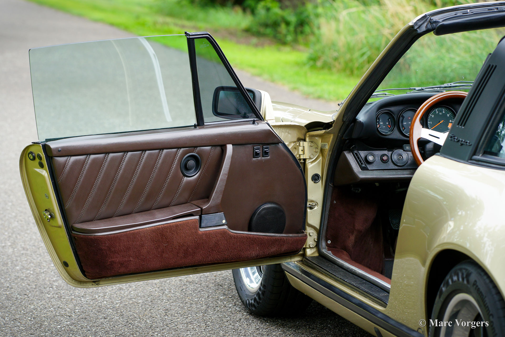 Porsche 911 Targa 3.2 Carrera, année 1983. Couleur « Bright Bronze » métallisé (code couleur 966) combiné avec un intérieur en cuir marron et un tapis marron. Cette fantastique Porsche 911 de la série G a été vendue neuve en Géorgie aux États-Unis. La voiture fut récemment importée des États-Unis et adaptée à la législation de l'UE en installant des lampes de spécifications européennes et une lecture du compteur kilométrique. La voiture est désormais immatriculée aux Pays-Bas. Cette magnifique Porsche 911 Targa est dans un super état d'origine et en bon état, une véritable capsule temporelle ! La voiture montre tous les détails d'origine, et tous les autocollants d'usine d'origine sont toujours présentes. Cette 911 super originale montre quelques signes d'utilisation et d'âge, la voiture roule très bien et le moteur tourne parfaitement. La voiture est entièrement documentée et est livrée avec les manuels d'utilisation d'origine. Cette Porsche 911 Carrera 3.2 est équipée de superbes jantes Fuchs en alliage de 16 pouces avec des pneus Continental 205/55-16 à l'avant et des pneus 225/55/16 à l'arrière. La roue de secours d'origine et les outils sont présents. Il s'agit d'une Porsche pour les passionnés qui recherchent une 911 Targa en bon état d'origine, jamais restaurée !