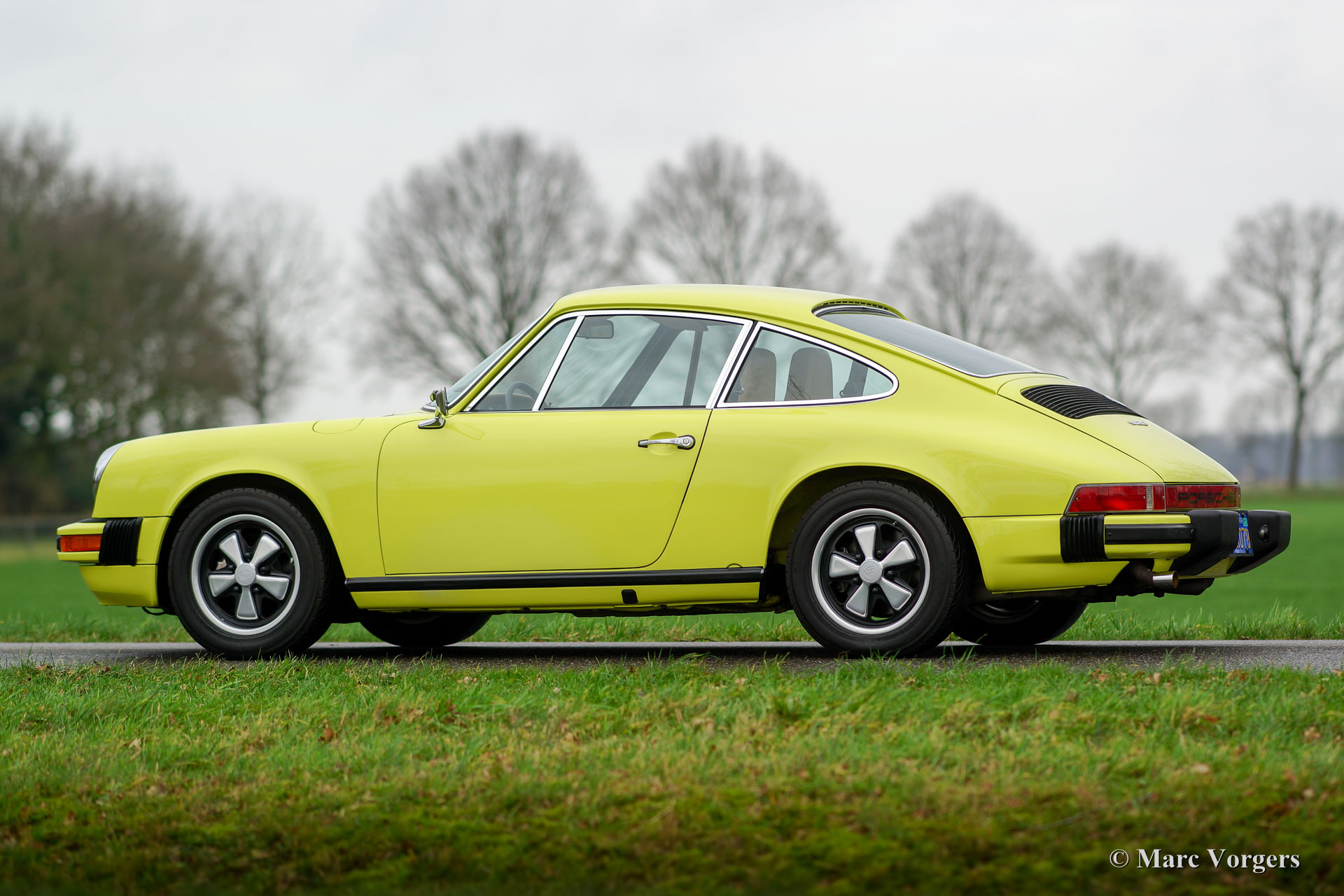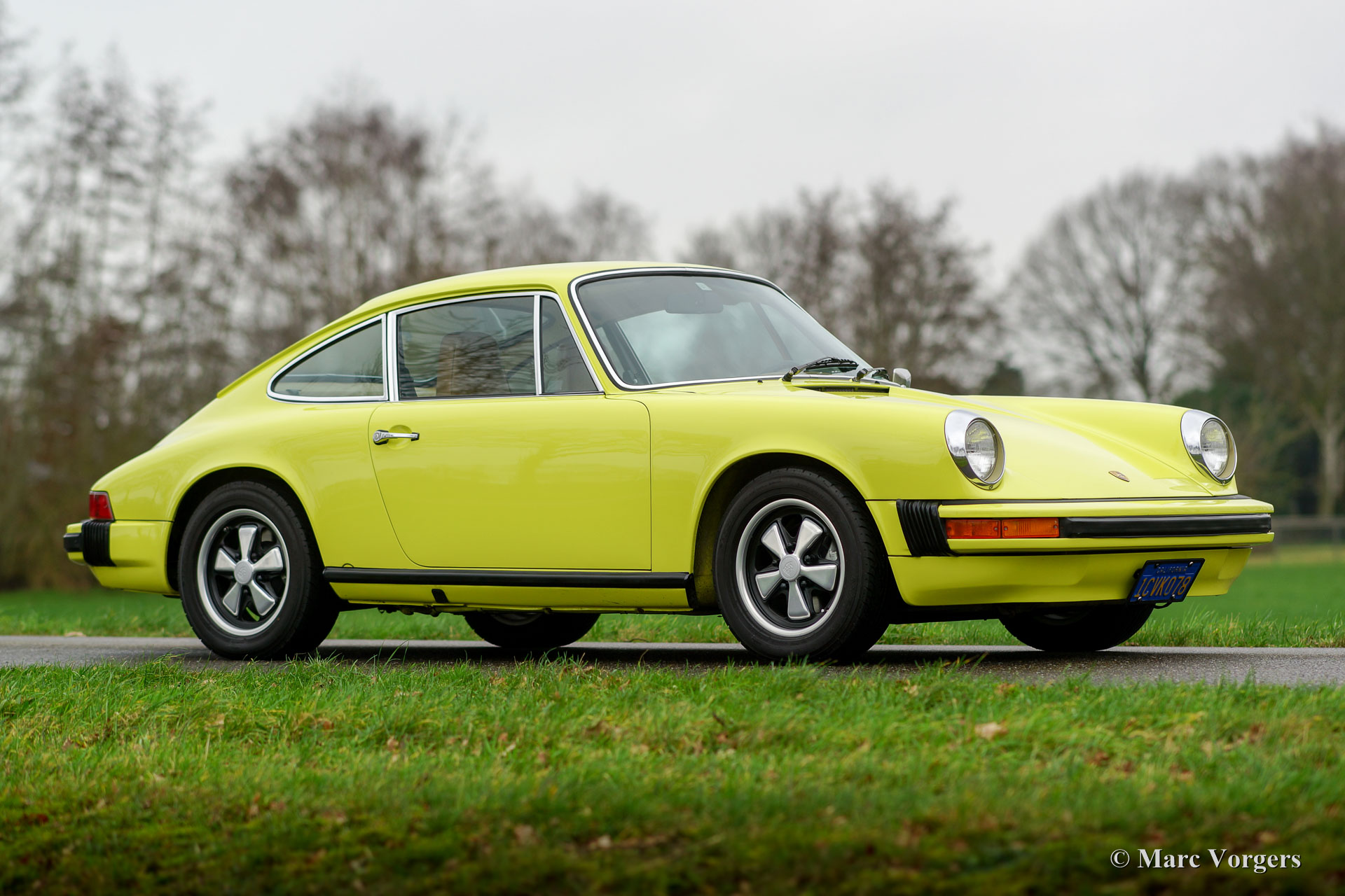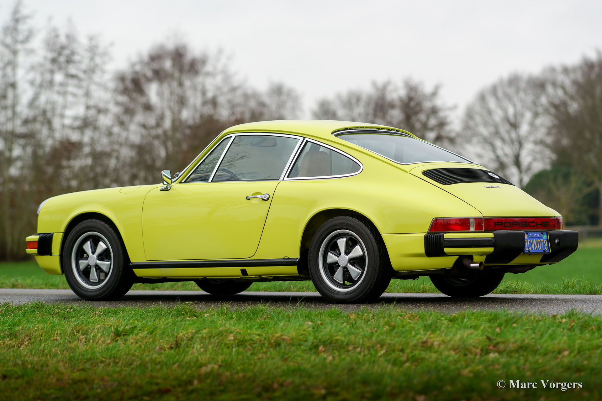 Porsche 912 E, année 1975. Couleur jaune citron (code couleur 117-9-1) avec un intérieur en similicuir beige foncé, tapis beige foncé et tapis de protection beige avec inscriptions 912. Cette magnifique Porsche 912 E fut importée de Californie aux Etats-Unis. L'automobile fut vendue neuve à Jacksonville, en Floride. La voiture fut restaurée détaillée ; la voiture est en superbe état TOP et la voiture montre de beaux détails originaux. La Porsche 912 E (Einspritz / Injection) est un modèle Porsche rare, seulement 2000 exemplaires furent construits dans les années 1975 et 1976. La voiture est équipée de roues en alliage Fuchs de 15 pouces et l'ensemble d'outils d'origine est présent. Ceci est un exemple de TOP!