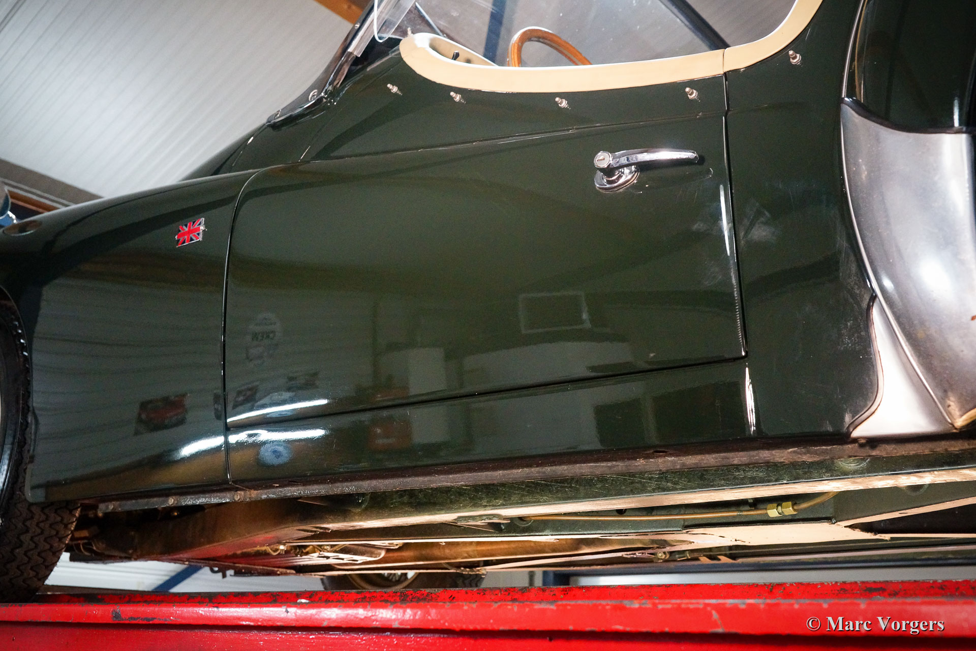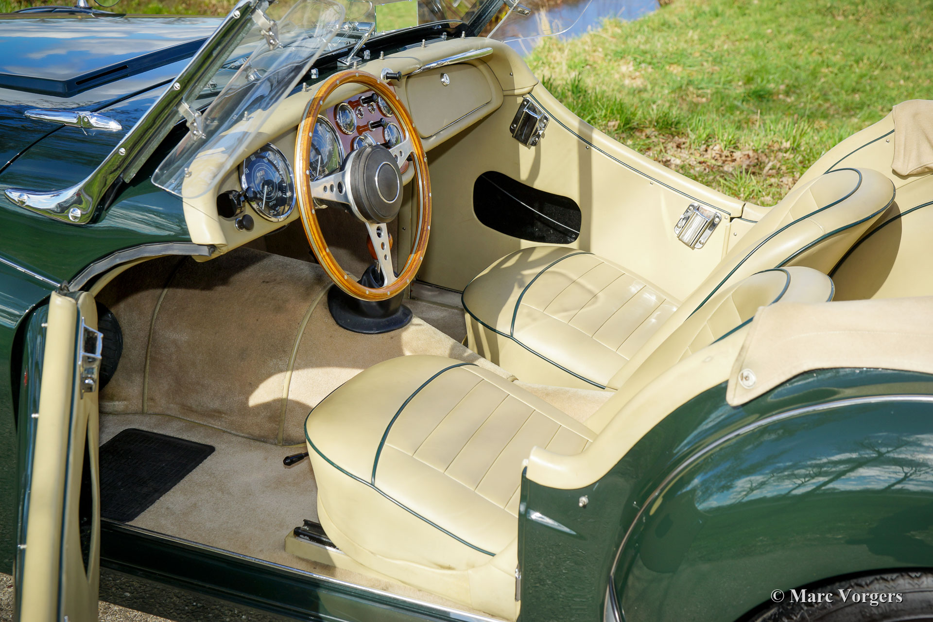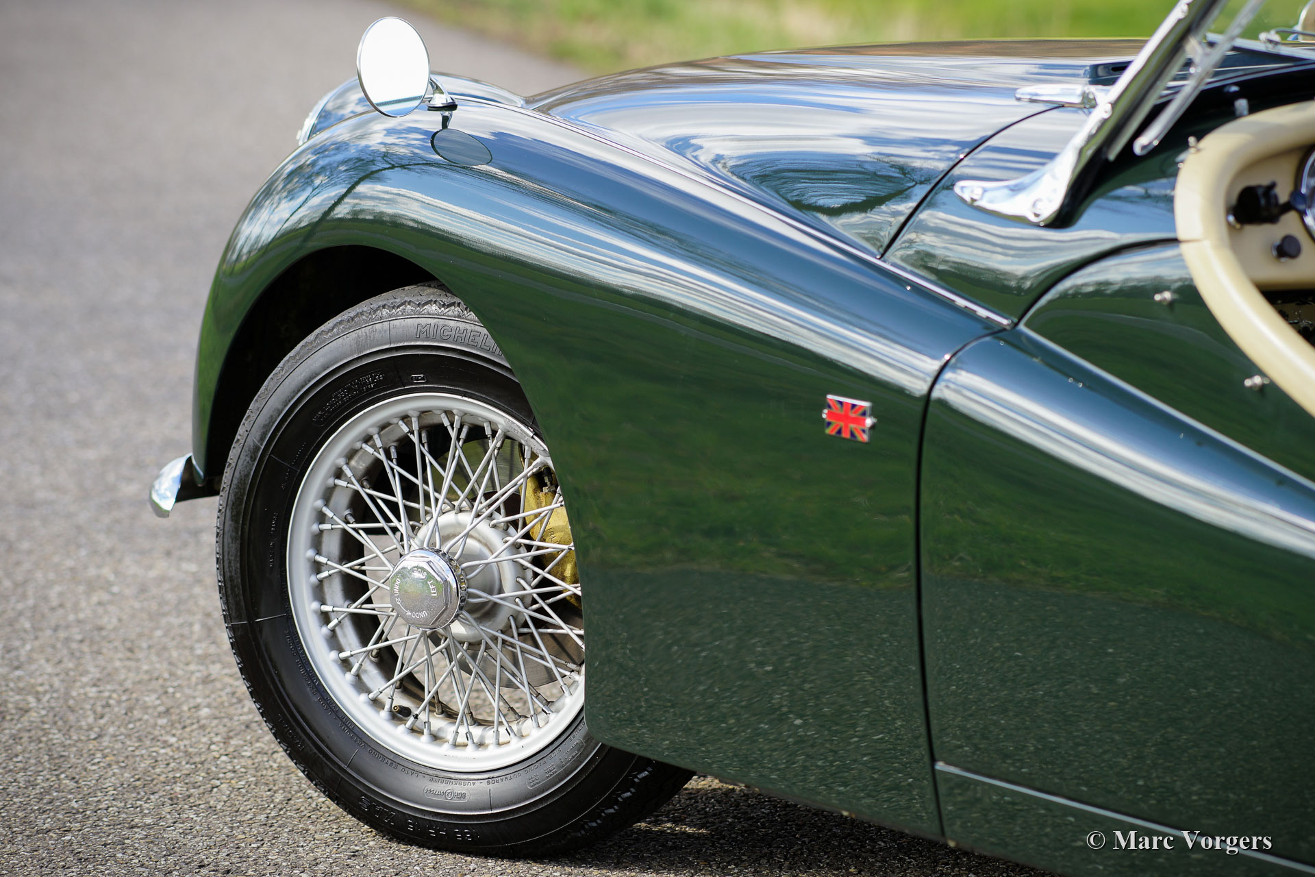 The Triumph TR 3 is a no nonsense sports car; very robust, simple and reliable, a true British sports car all over. The TR 3 was the first production car, off factory, equipped with disc brakes on the front-wheels. The engine was a Standard Vanguard based, cast-iron, long stroke, in-line four cylinder with a displacement of 1991cc. The TR 3 engine was equipped with two carburettors giving a power-output of almost 100 bhp.