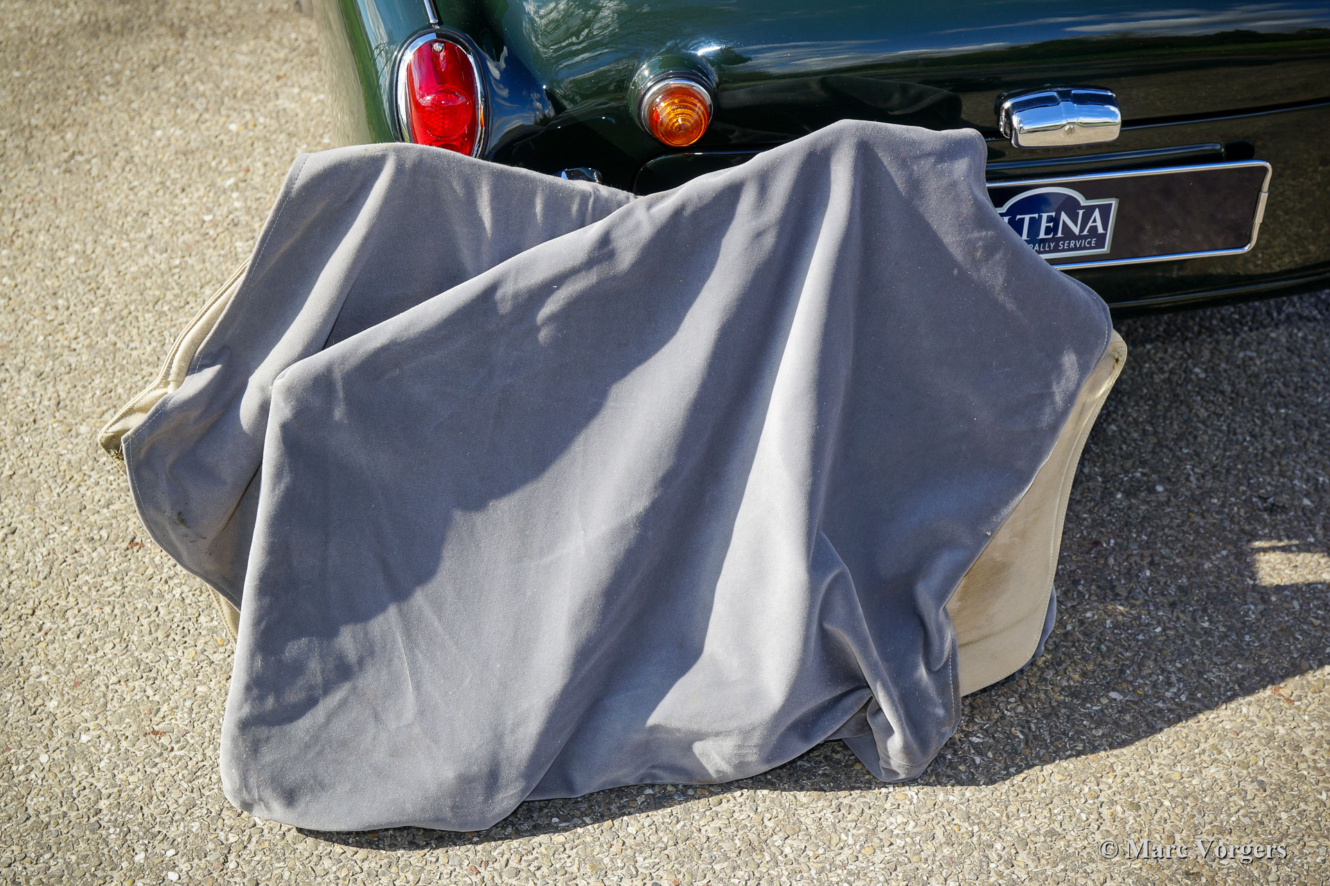 The Triumph TR 3 was uprated twice during the entire production period. In 1957 the car became a wider grille, door handles on the outside and slightly recessed headlamps and was named TR 3a then. In 1960-61 the cylinder capacity was enlarged to 2138 cc. giving a capacity of 104 bhp. and extra torque. Also the fully synchronized TR4 gearbox was incorporated. The car was then named TR 3b. The TR 3 is a pure two-person roadster, a classic generously giving you the fifties British sports car feeling, rough but honest. It comes with a simple soft-top for weather protection. Separate clip-on side screens can additionally be attached to the doors.