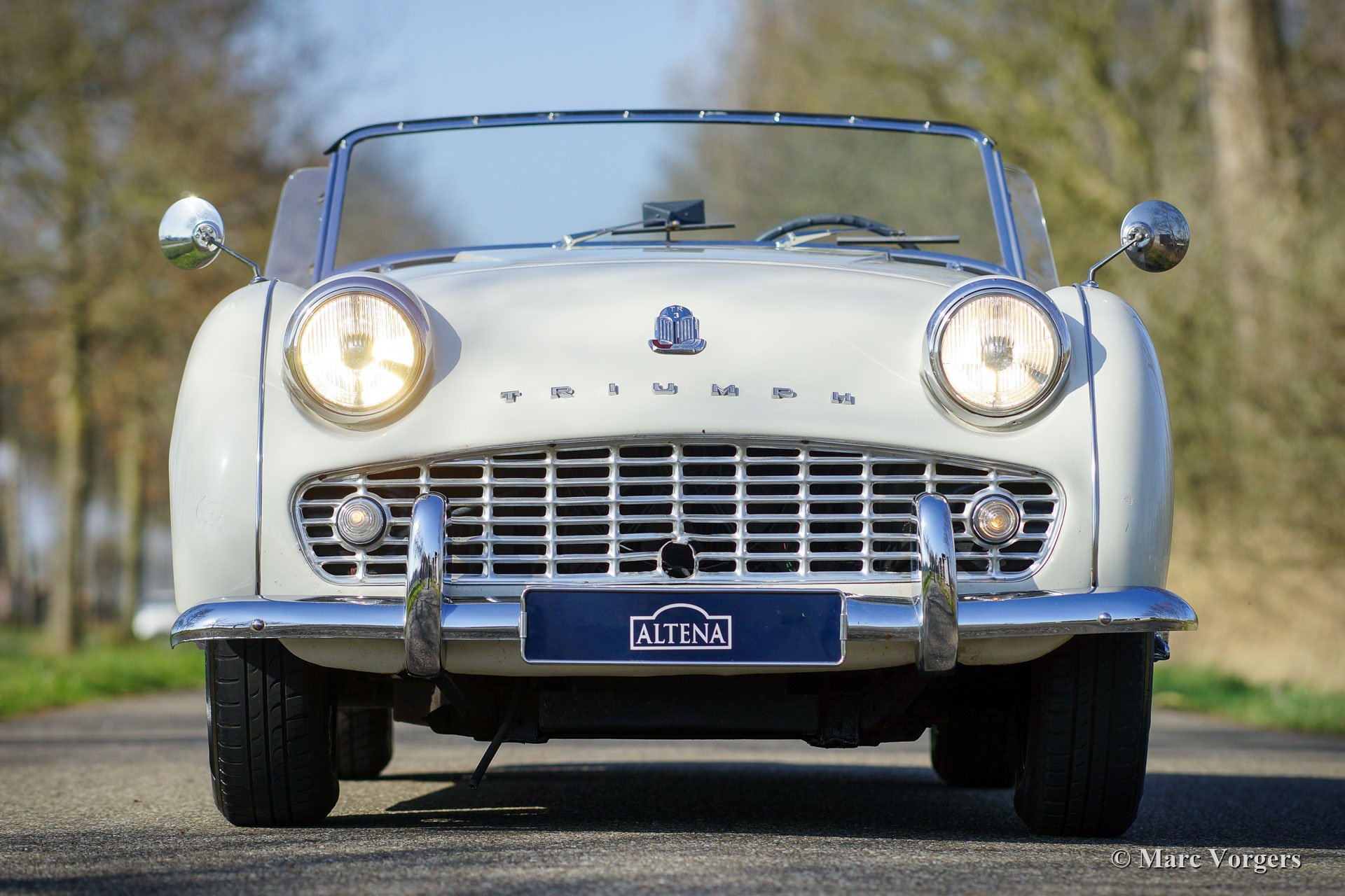 In the year 1957 the Triumph TR3a was presented. Again Triumph changed the grille (wider, covering the entire width of the car). Also the headlamps were placed a little backwards and door handles were fitted. Very short after the introduction of the TR 3a the Triumph TR 3b was introduced, the only change was the larger cylinder capacity of the engine.