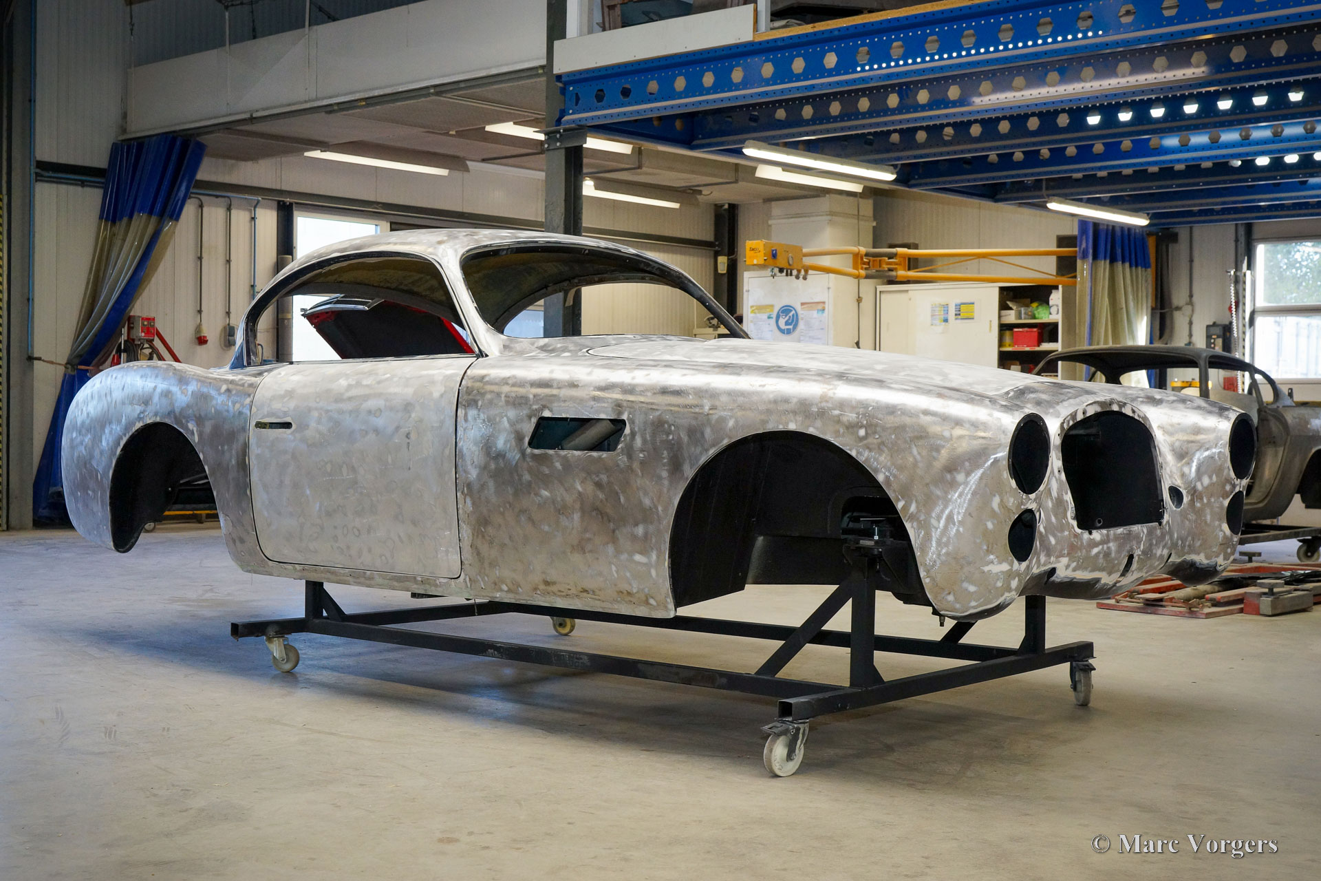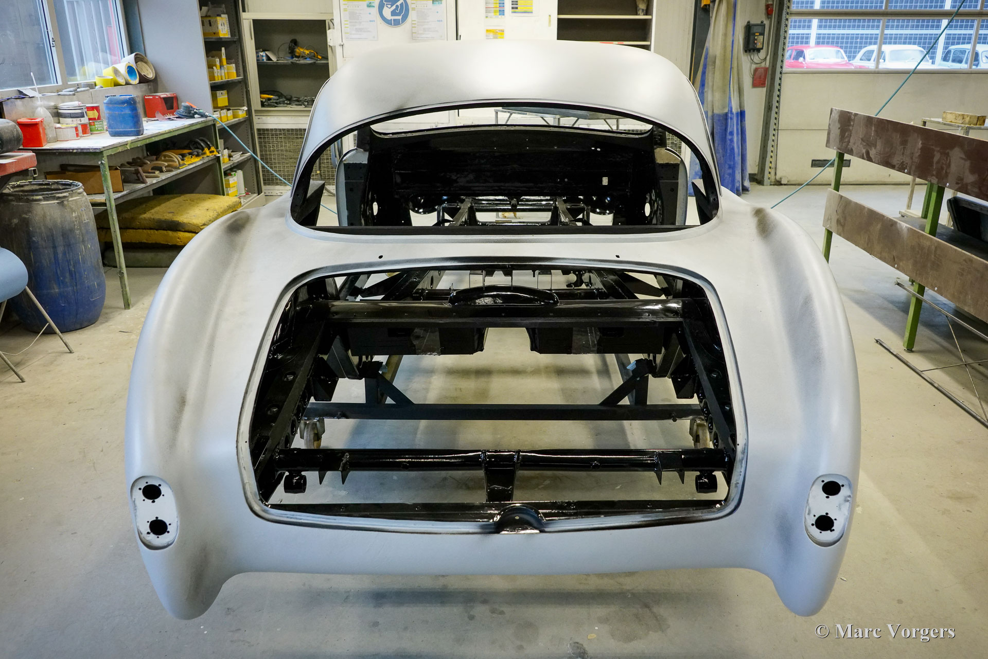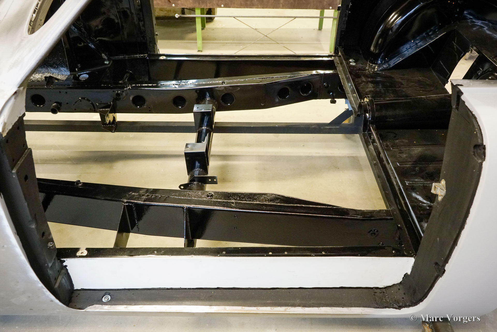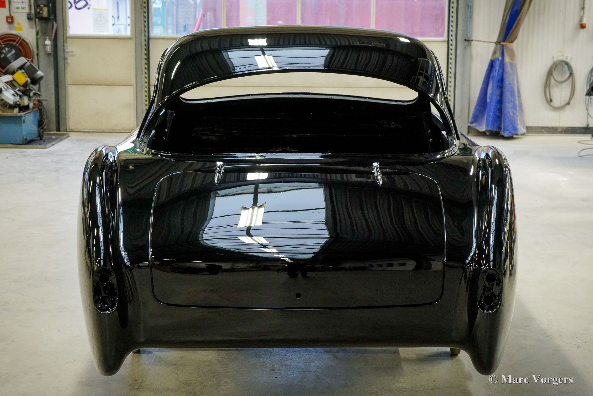 Au début des années 1950, la Talbot Lago Grand Sport était la meilleure et la plus rapide des voitures construites en France. L'automobile présentée quitte l'usine Talbot Lago le 30 décembre 1954 pour être livrée à un client français. La voiture était livrée en noir combiné avec un intérieur en cuir beige. Les extras étaient des roues chromées et des pneus Dunlop à flancs blancs. Classic Job a été mandaté par un client suisse pour restaurer la carrosserie et le châssis de cette magnifique automobile de première classe. La carrosserie est finie dans un magnifique noir profond. Ci-dessous vous voyez la carrosserie juste après la peinture. Les dernières étapes seront effectuées une fois la voiture terminée en Suisse (revêtement de peinture et revêtement en verre/céramique qui est incontournable sur la peinture noire).