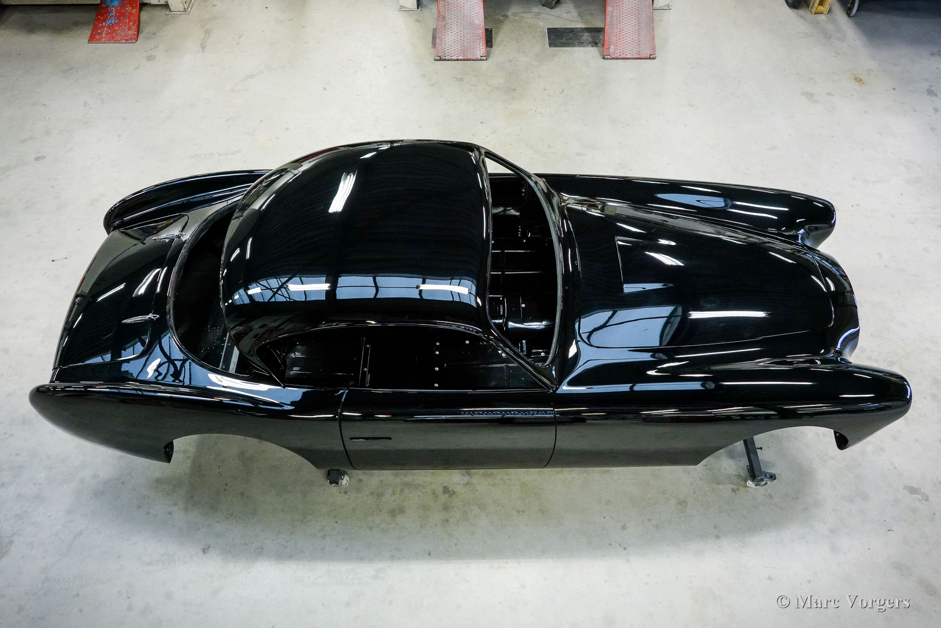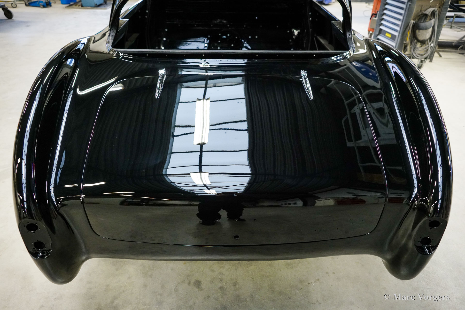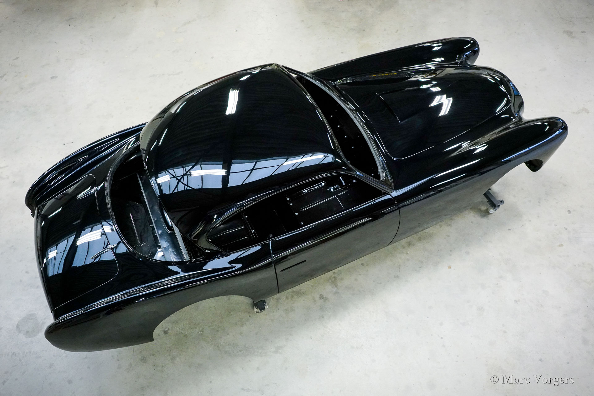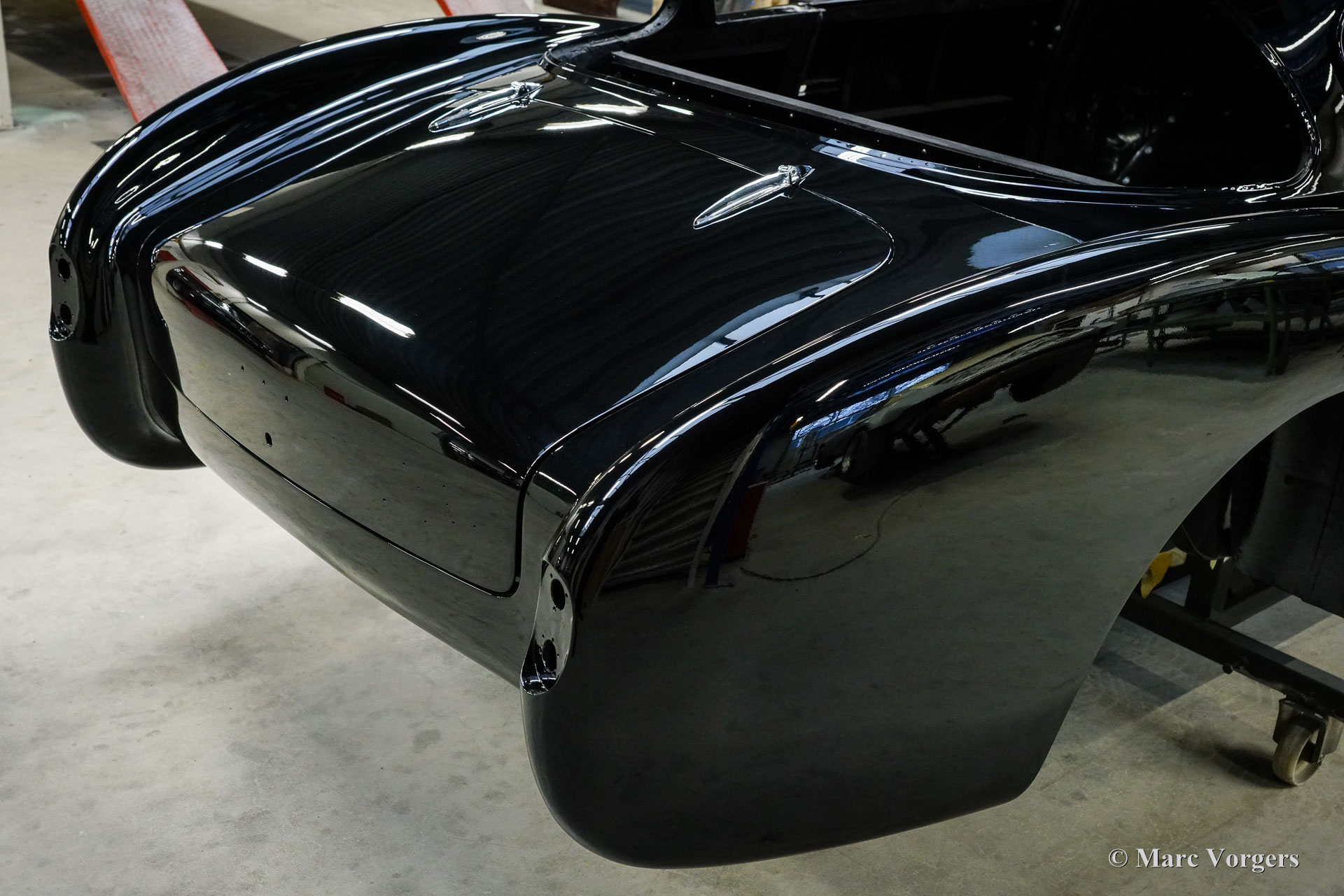 Au début des années 1950, la Talbot Lago Grand Sport était la meilleure et la plus rapide des voitures construites en France. L'automobile présentée quitte l'usine Talbot Lago le 30 décembre 1954 pour être livrée à un client français. La voiture était livrée en noir combiné avec un intérieur en cuir beige. Les extras étaient des roues chromées et des pneus Dunlop à flancs blancs. Classic Job a été mandaté par un client suisse pour restaurer la carrosserie et le châssis de cette magnifique automobile de première classe. La carrosserie est finie dans un magnifique noir profond. Ci-dessous vous voyez la carrosserie juste après la peinture. Les dernières étapes seront effectuées une fois la voiture terminée en Suisse (revêtement de peinture et revêtement en verre/céramique qui est incontournable sur la peinture noire).